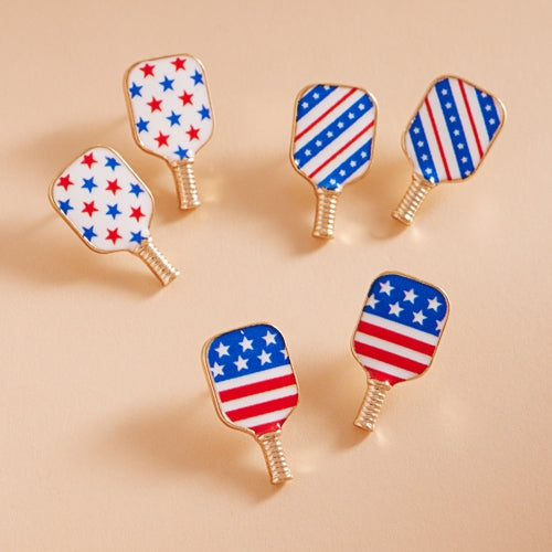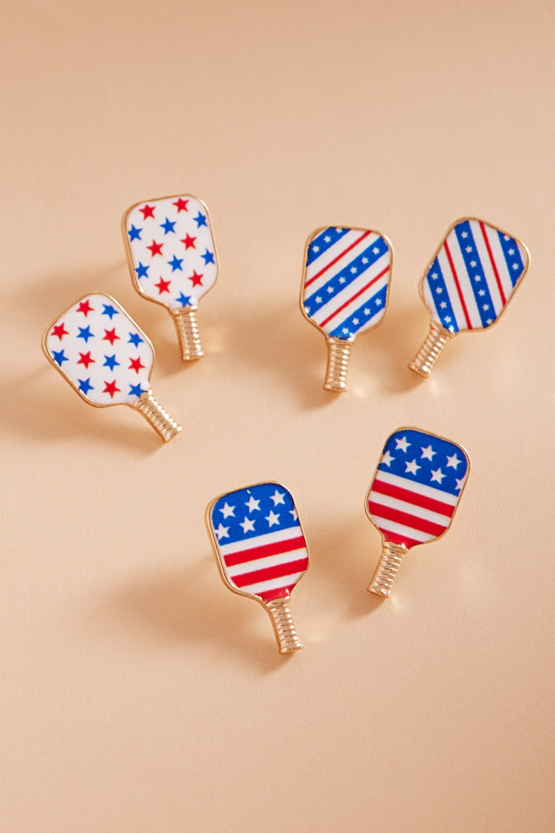 These 0.25 inch star-shaped post earrings come in a set of 3 and are designed with the American flag colors in enamel. The patriotic design is perfect for any occasion and adds a touch of patriotism to your outfit. Show your love for your country with these stylish earrings.