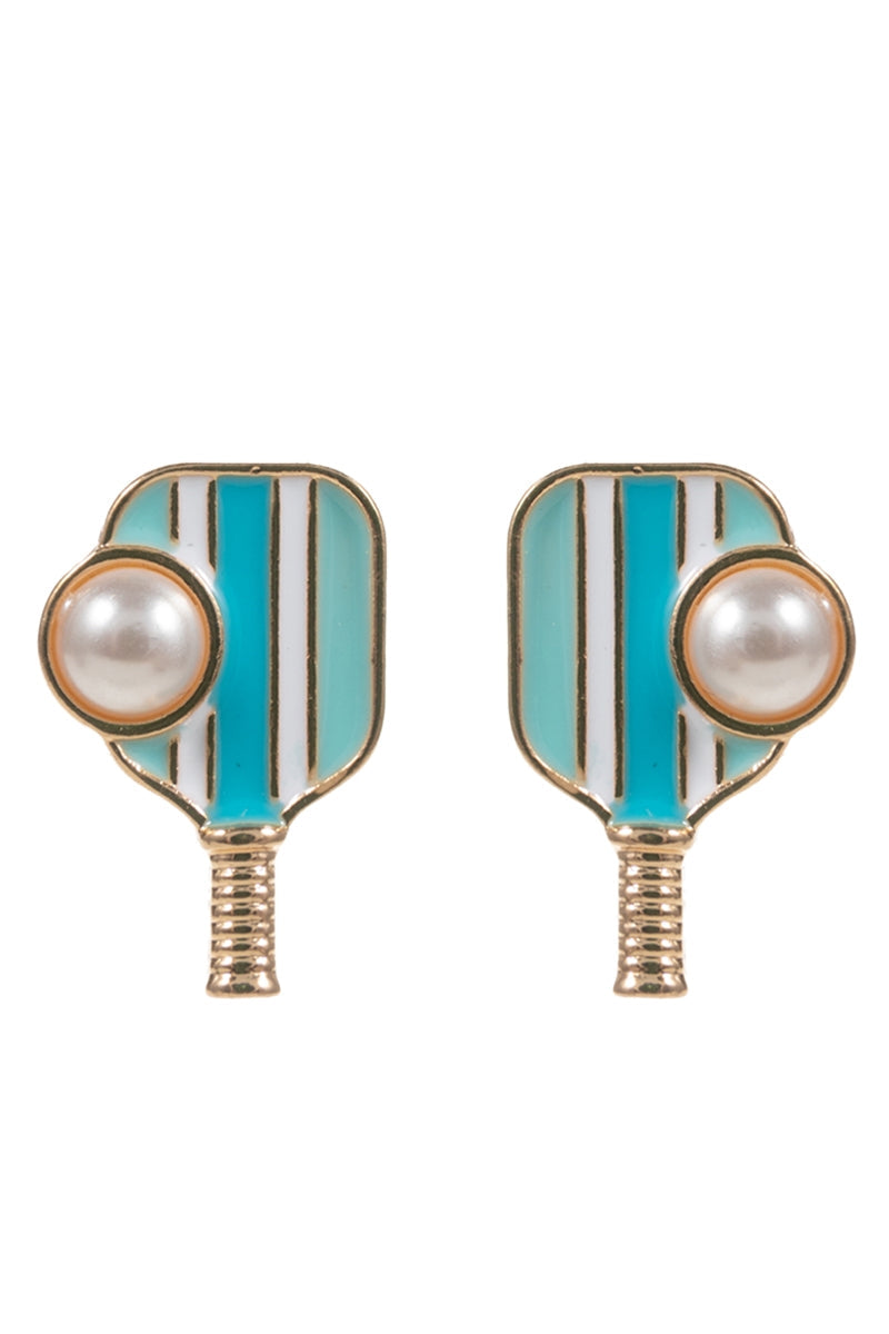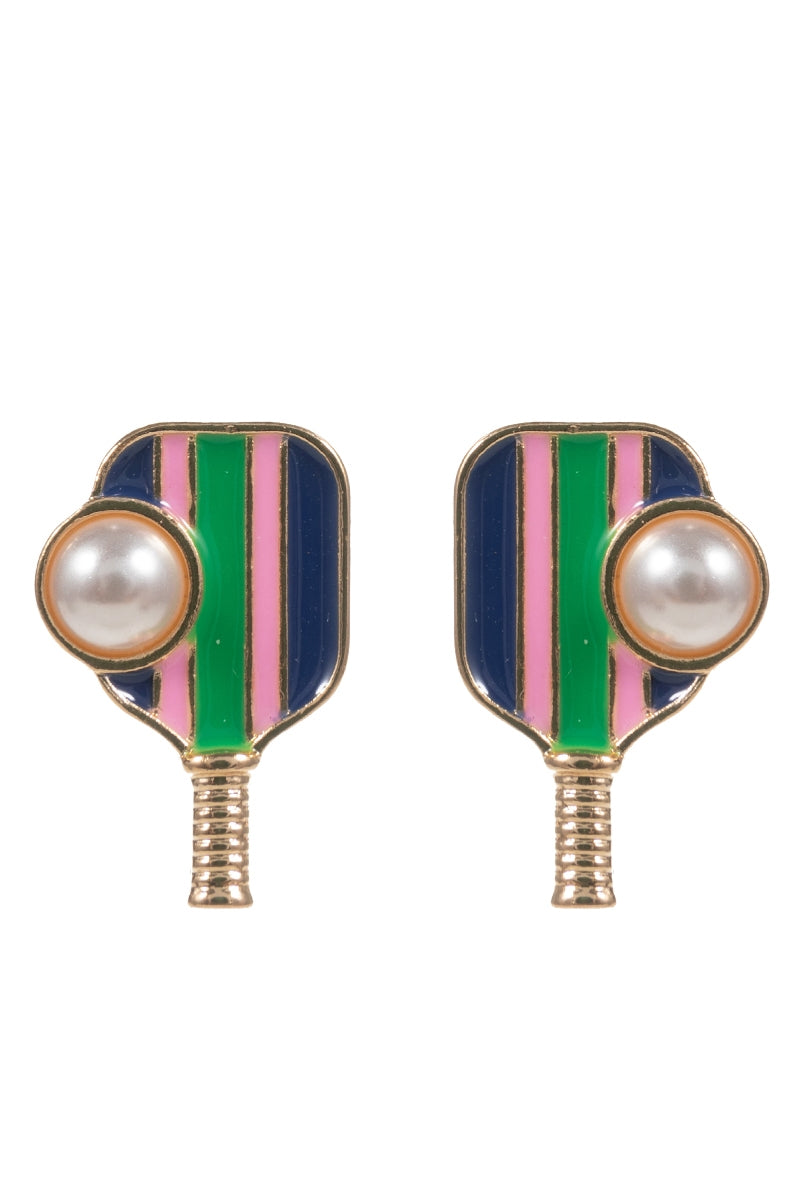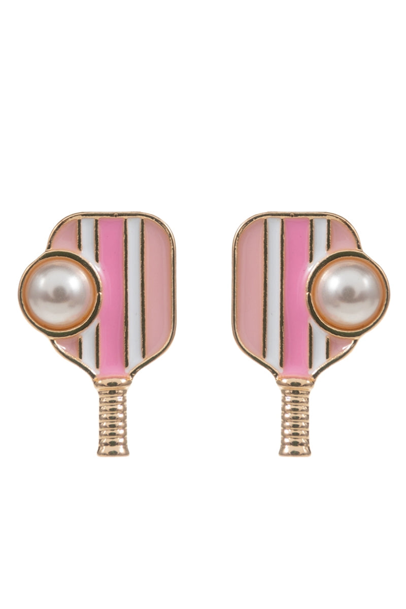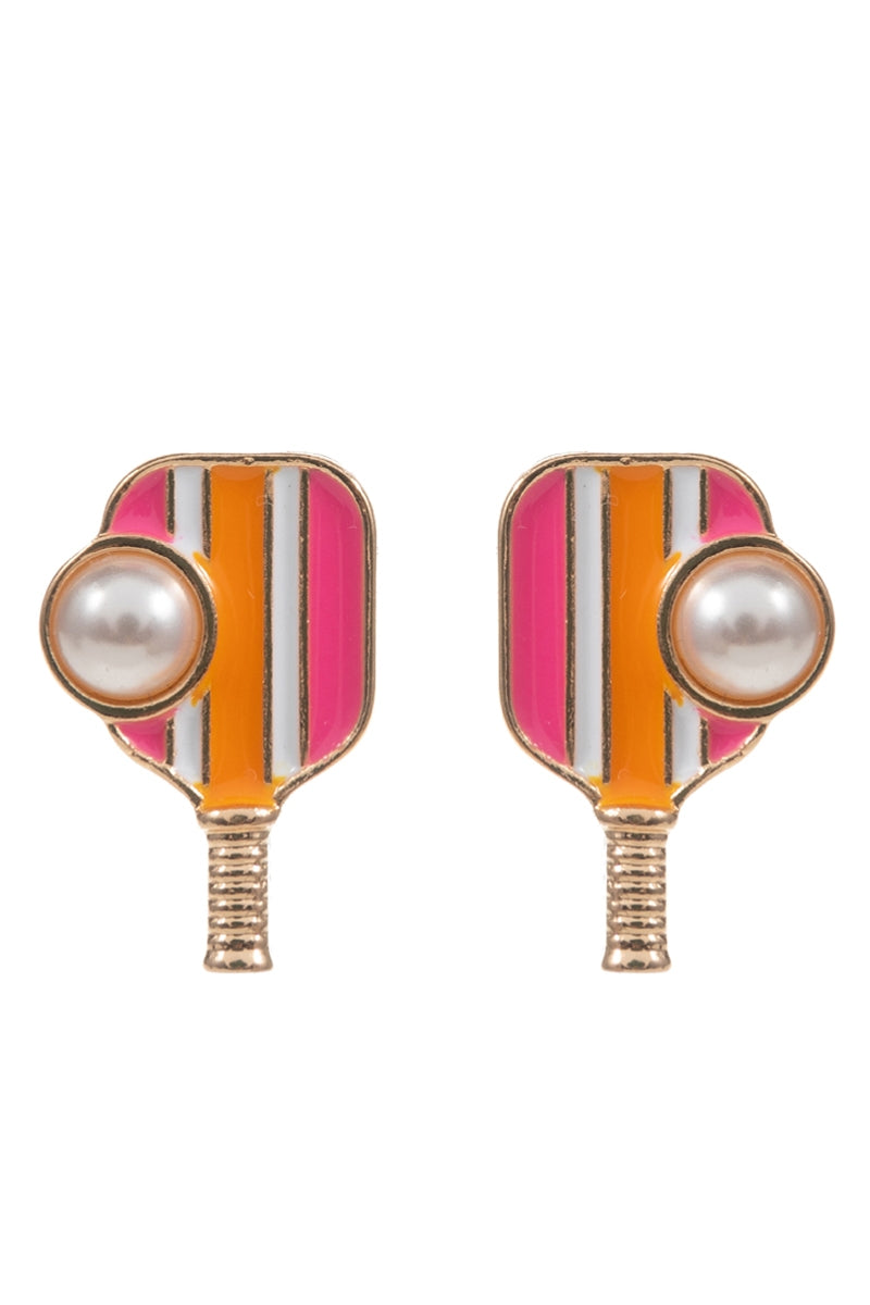 Pickleball Enamel With Pearl Post Earrings Gameday