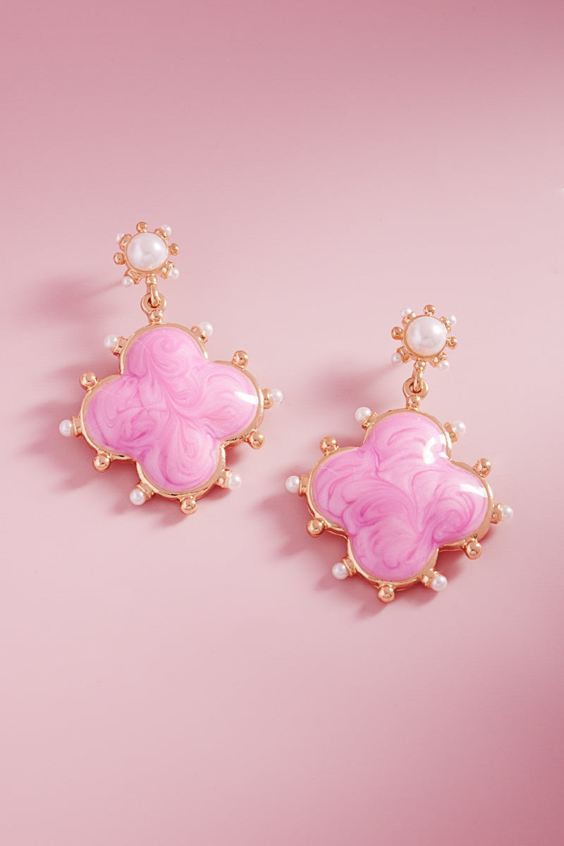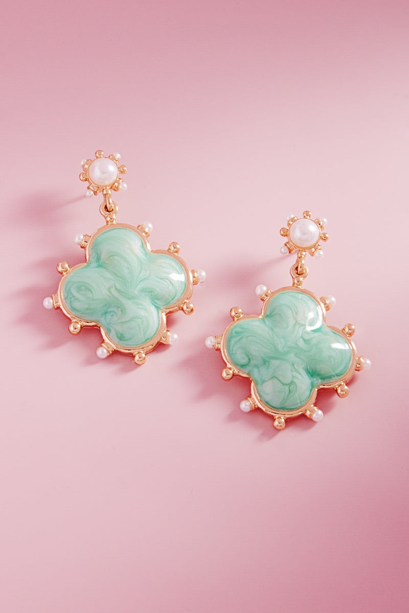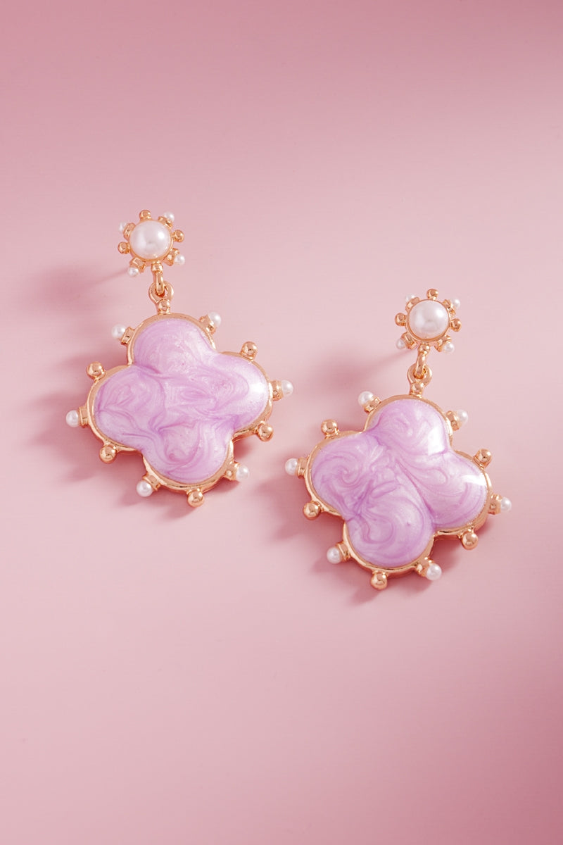 Quatrefoil Color Enamel Metal Dots Post Earrings