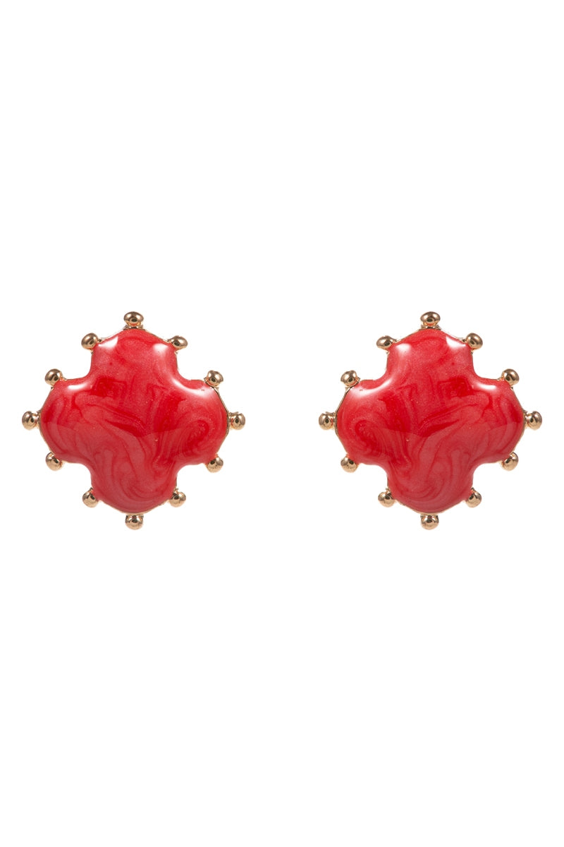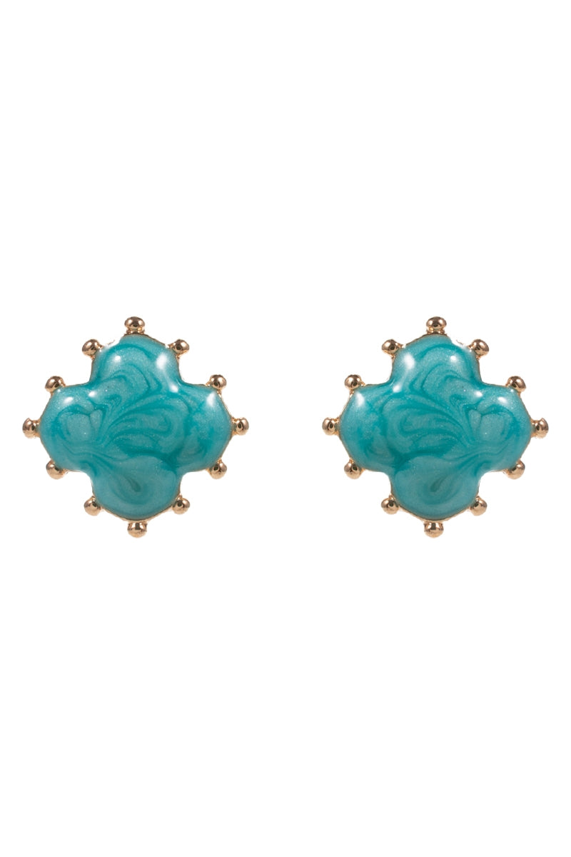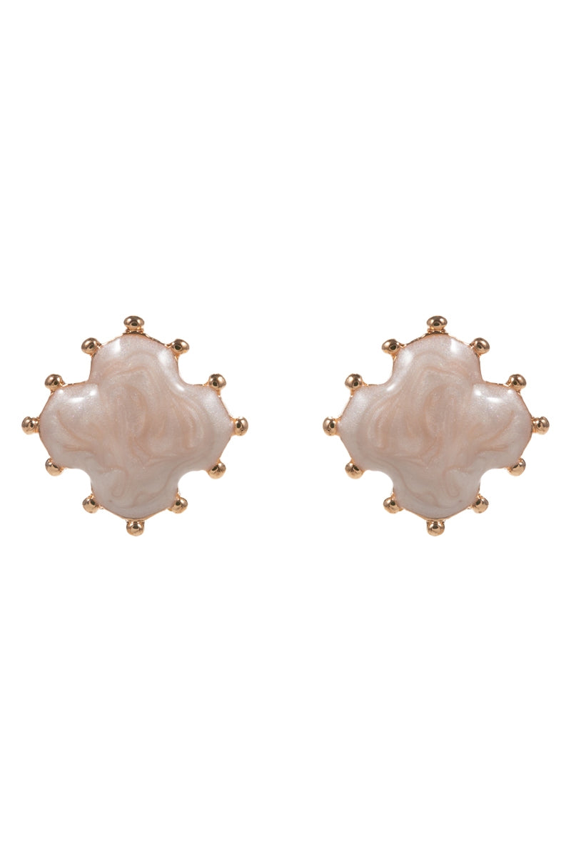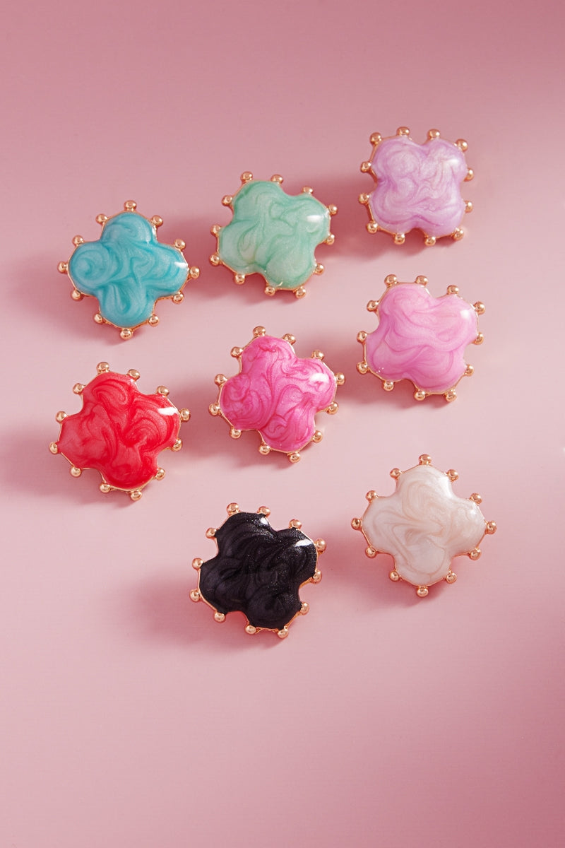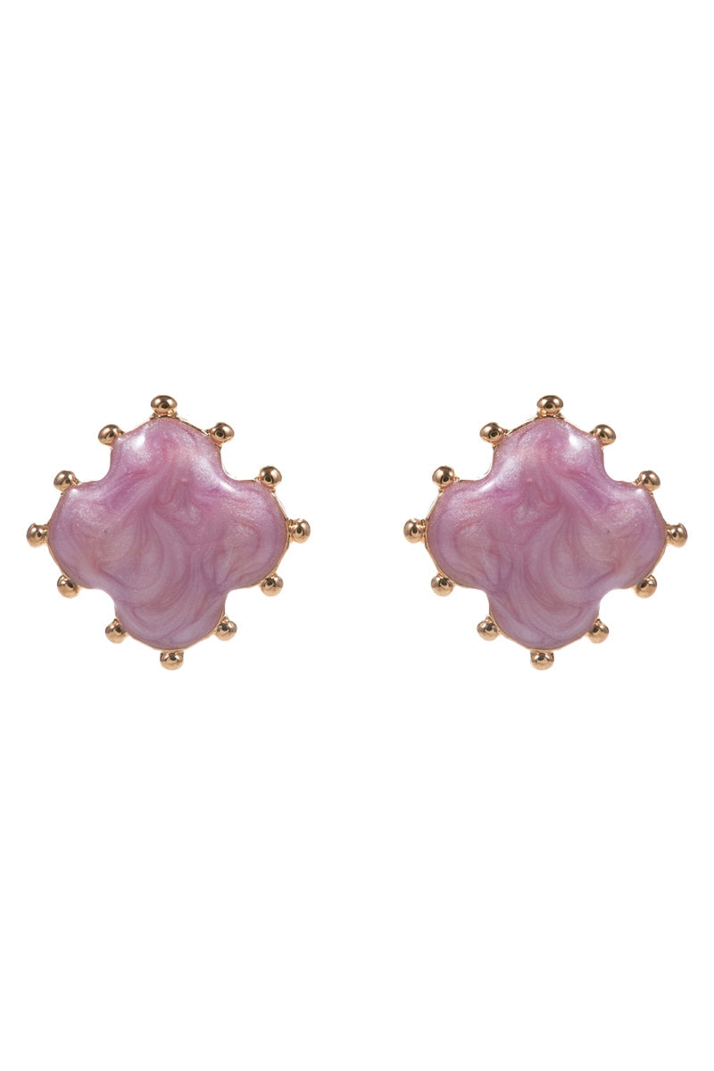Quatrefoil Pearlized Color Enamel Metal Post Earrings