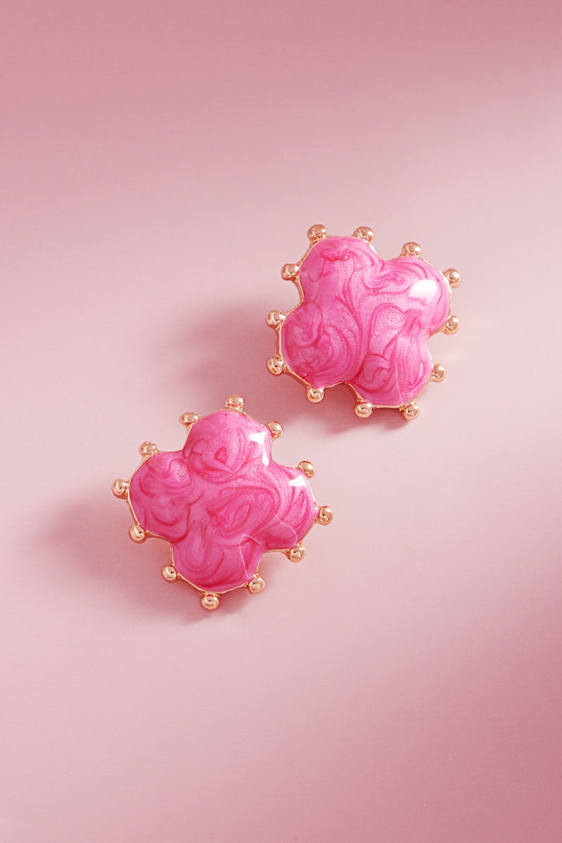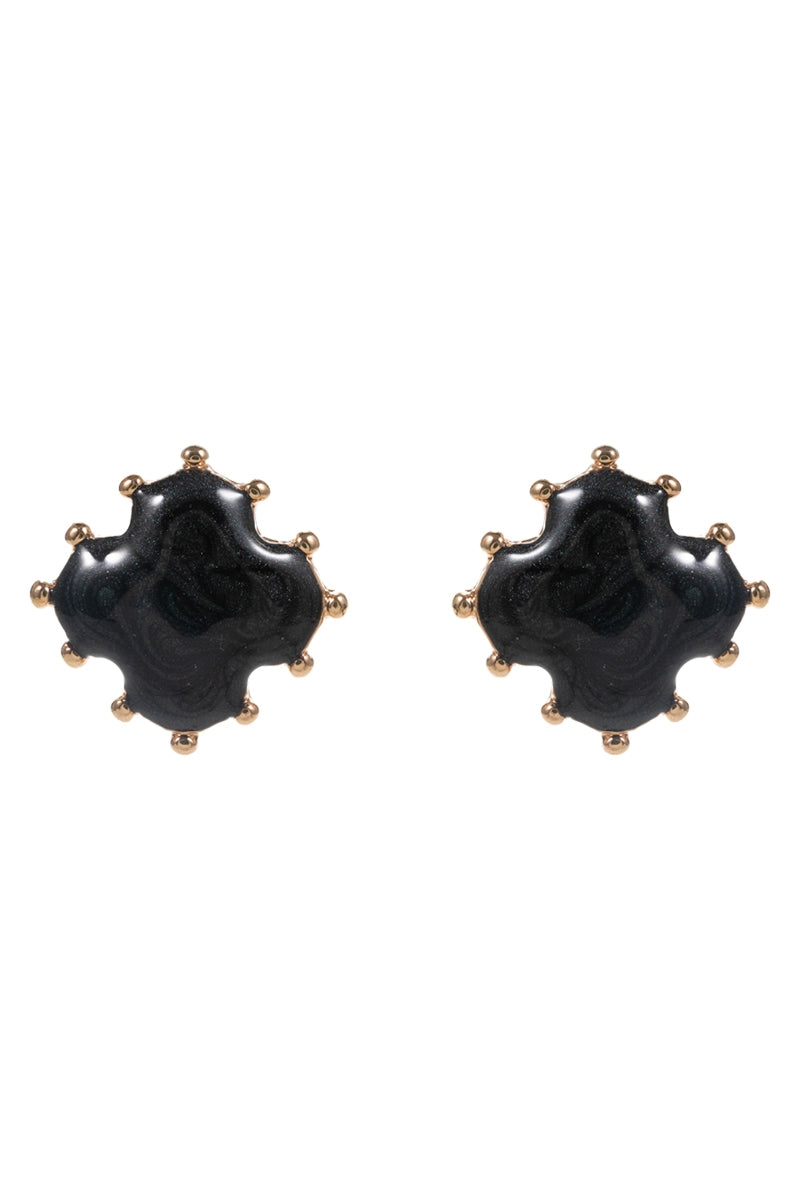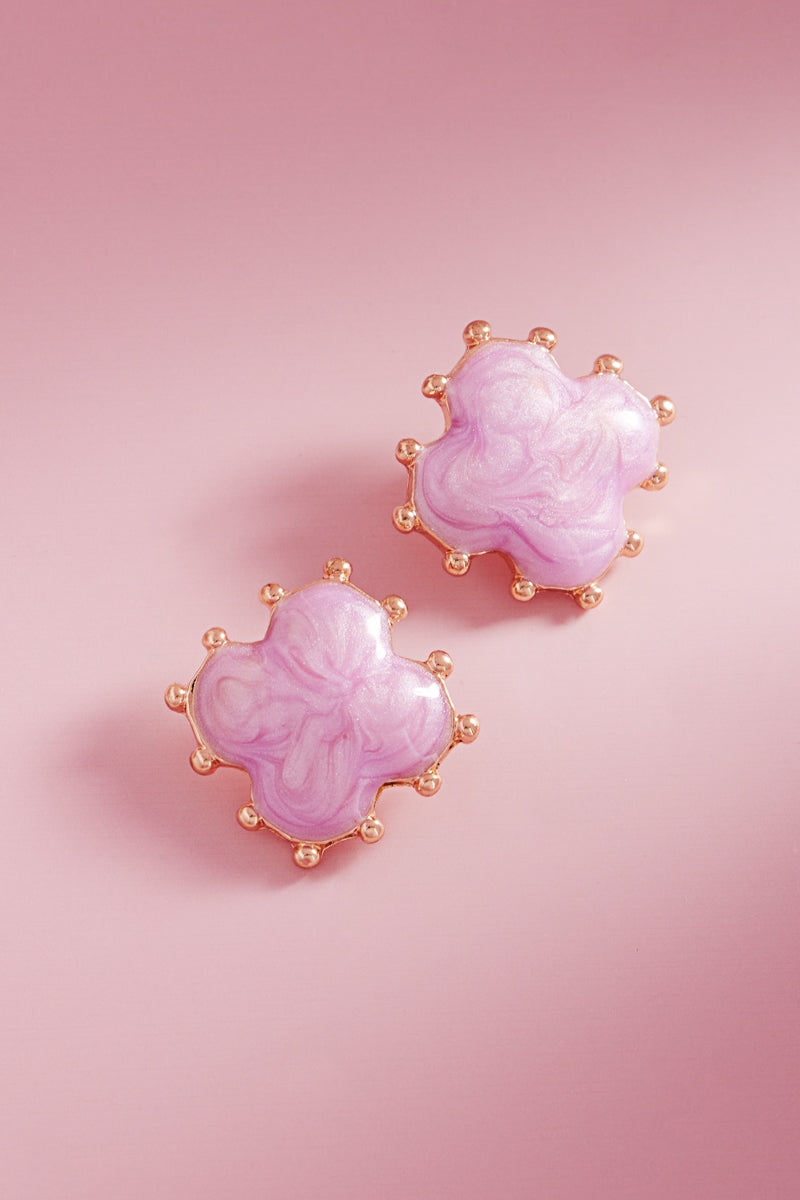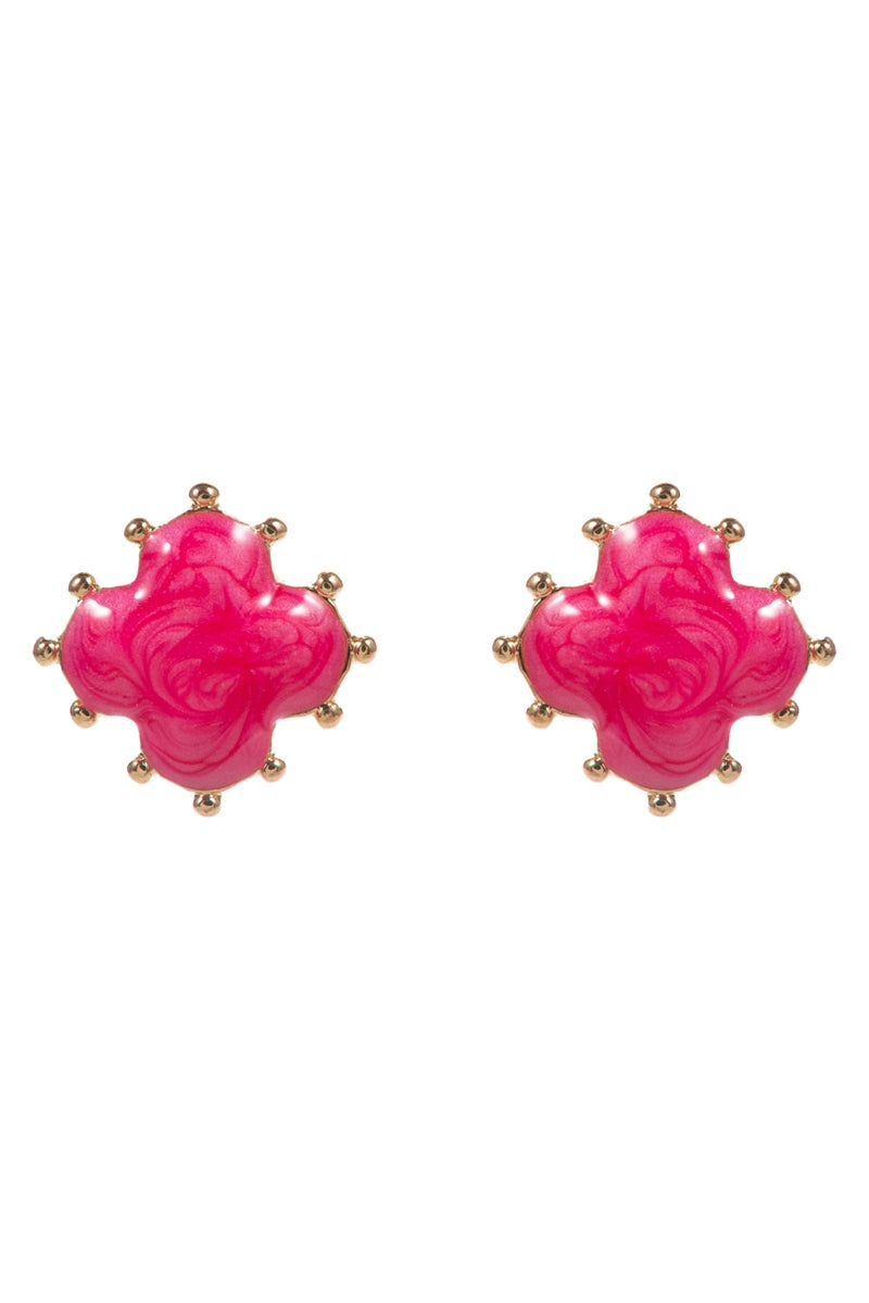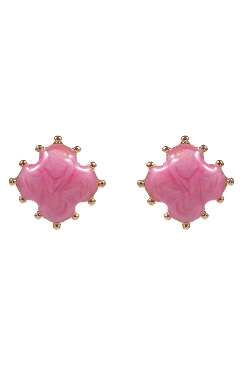 Quatrefoil Pearlized Color Enamel Metal Post Earrings