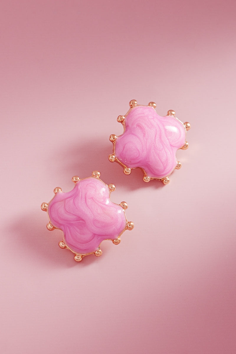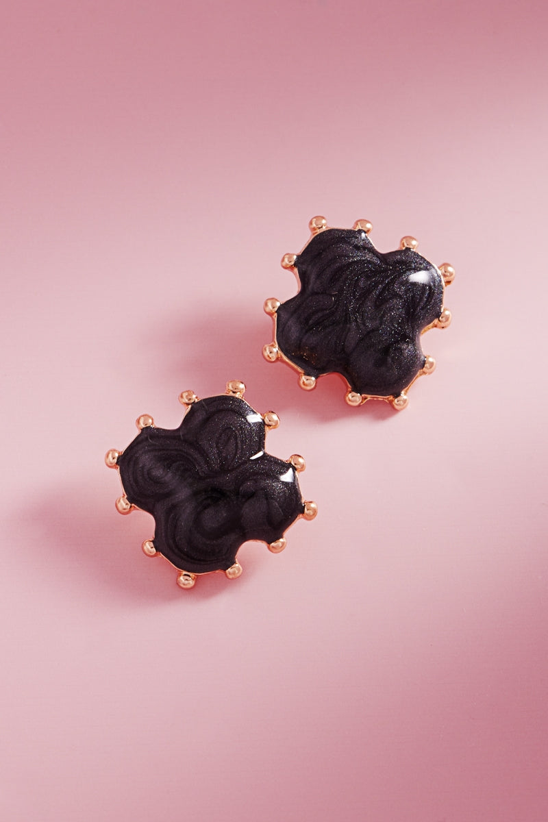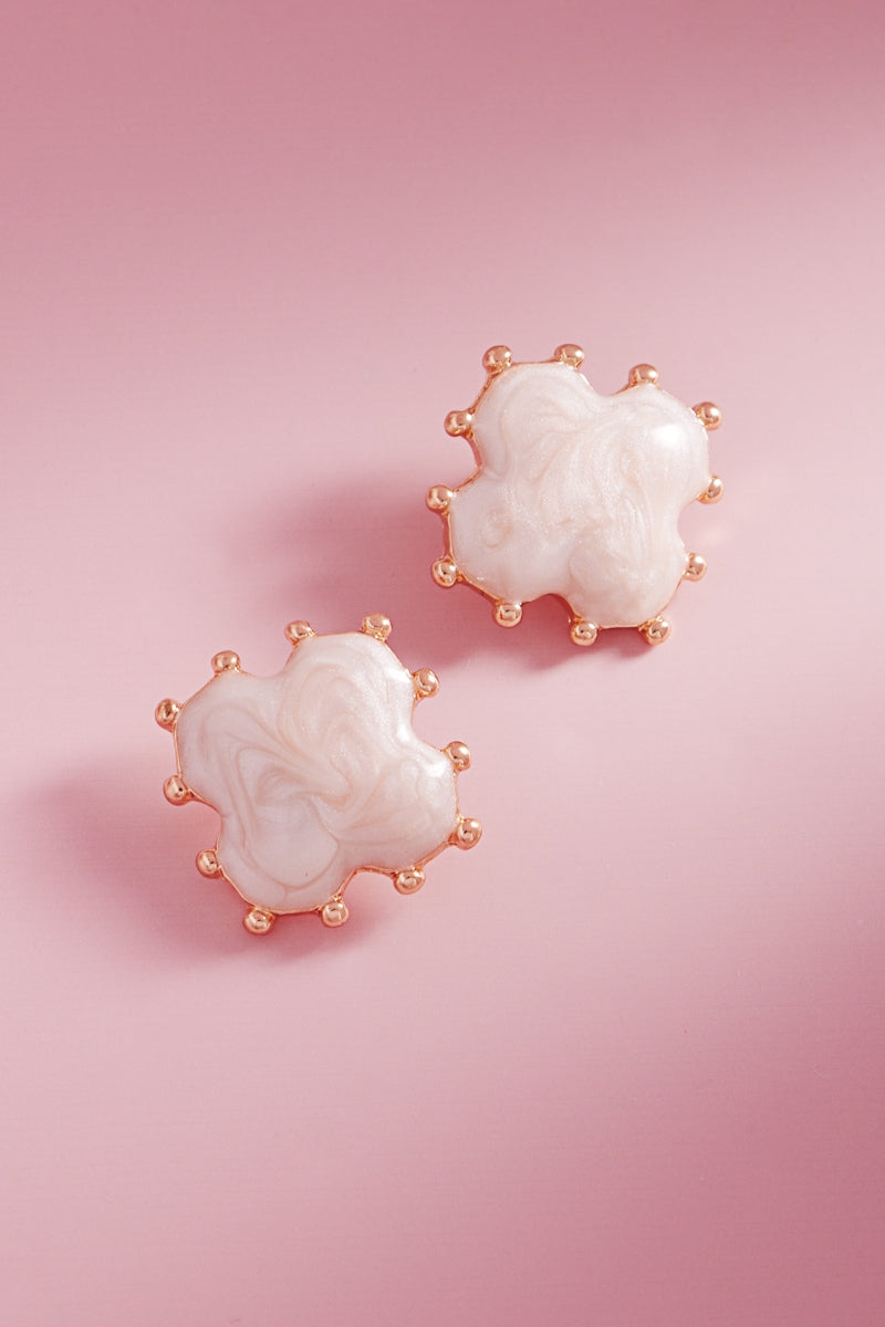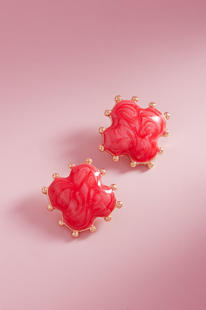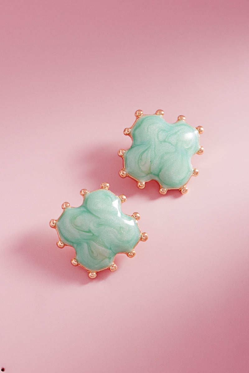 Quatrefoil Pearlized Color Enamel Metal Post Earrings