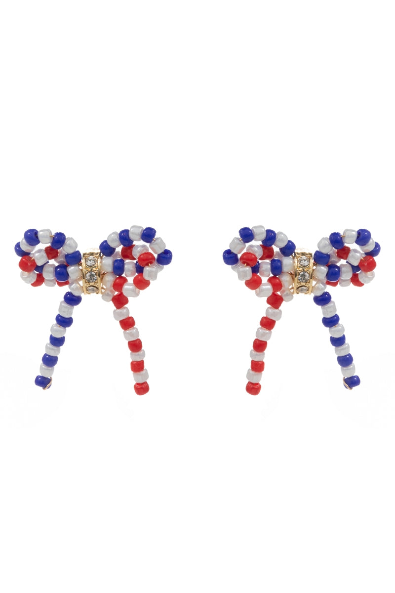 Enhance your patriotic style with our 1-inch ribbon shaped American flag color beaded post earrings. These earrings showcase your love for the country while adding a touch of sparkle to your look. The beads are carefully crafted to ensure a secure hold and comfortable wear. Perfect for any occasion.