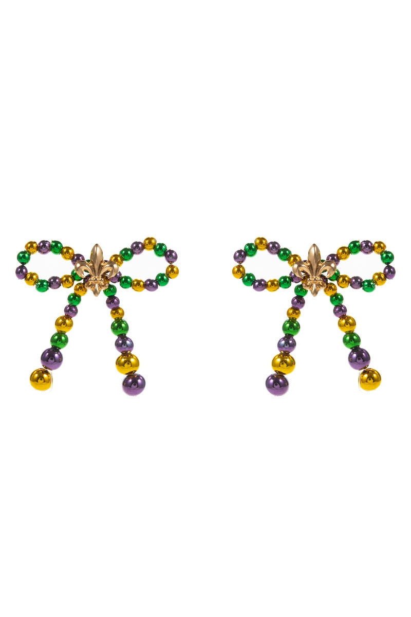 Ribbon Mardi Gras Metalic Beads Post Earrings