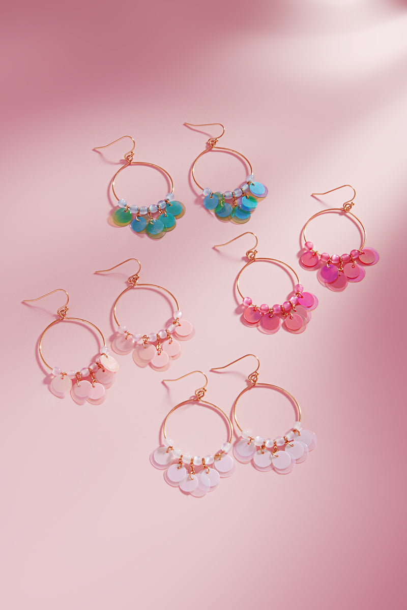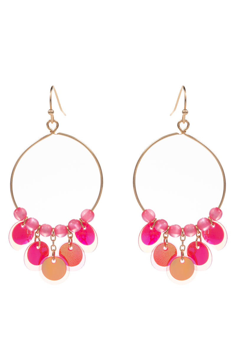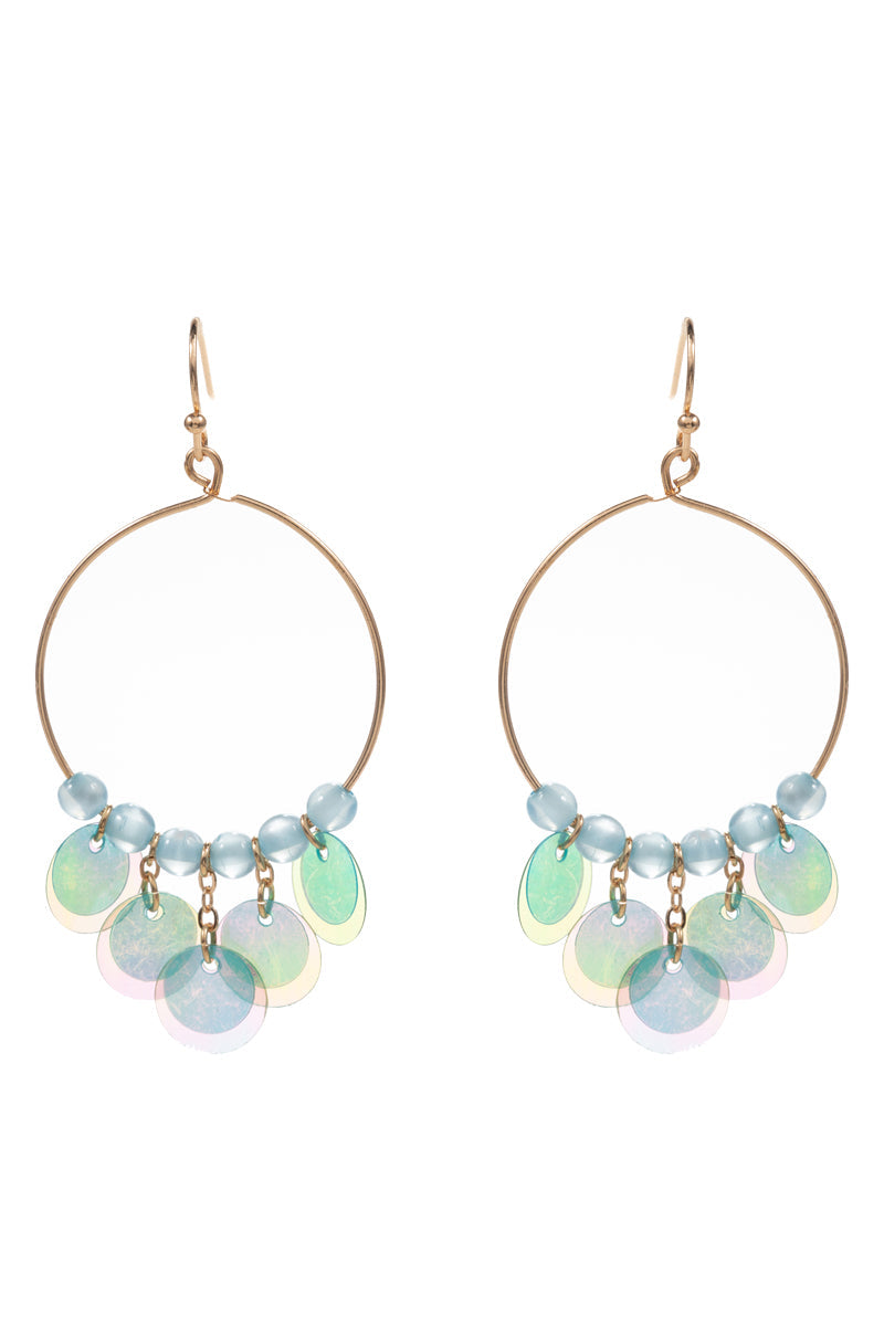 Round Color Ab Sequin Faux Cats Eye Hook Earrings