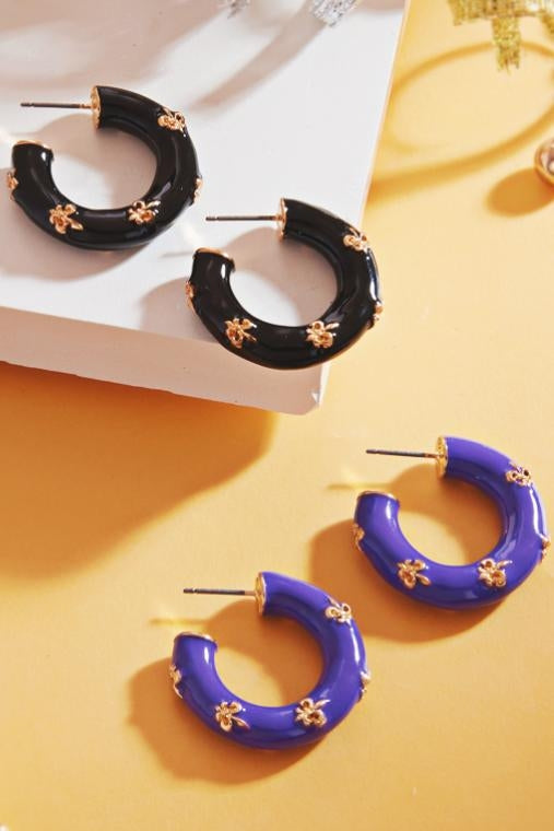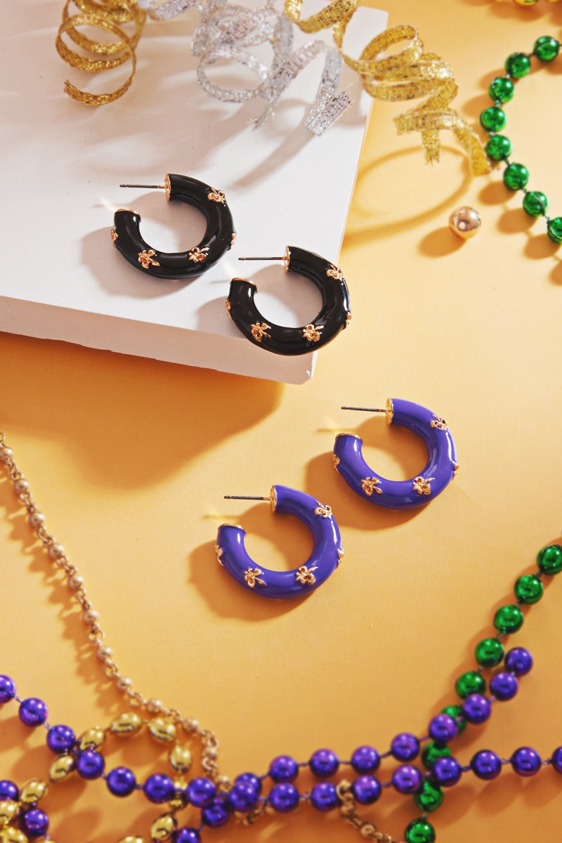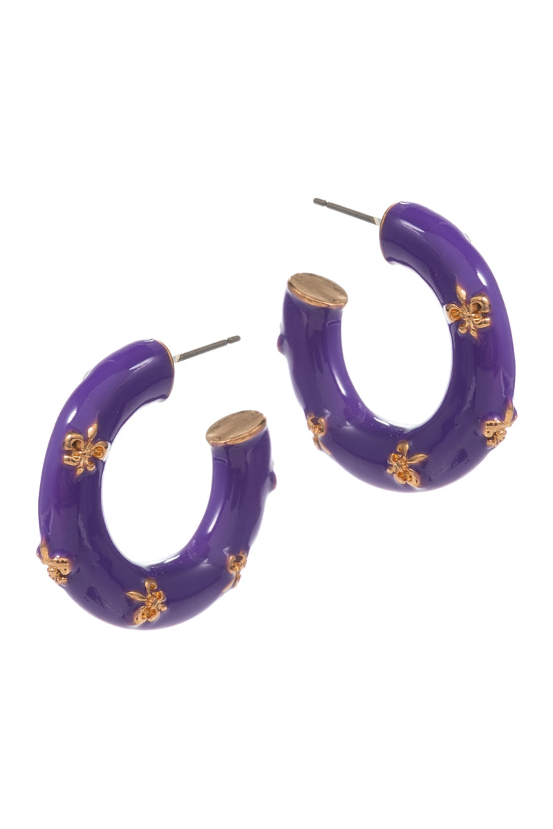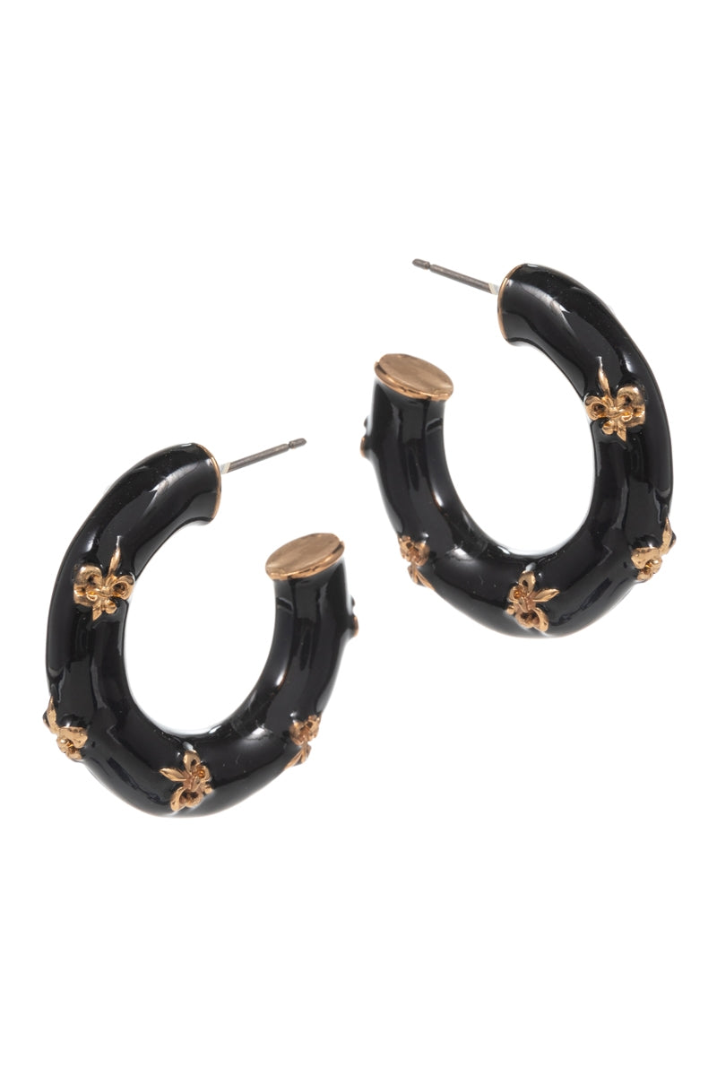 Round Fleur De Lis Pattern On Enamel Hoop Earrings