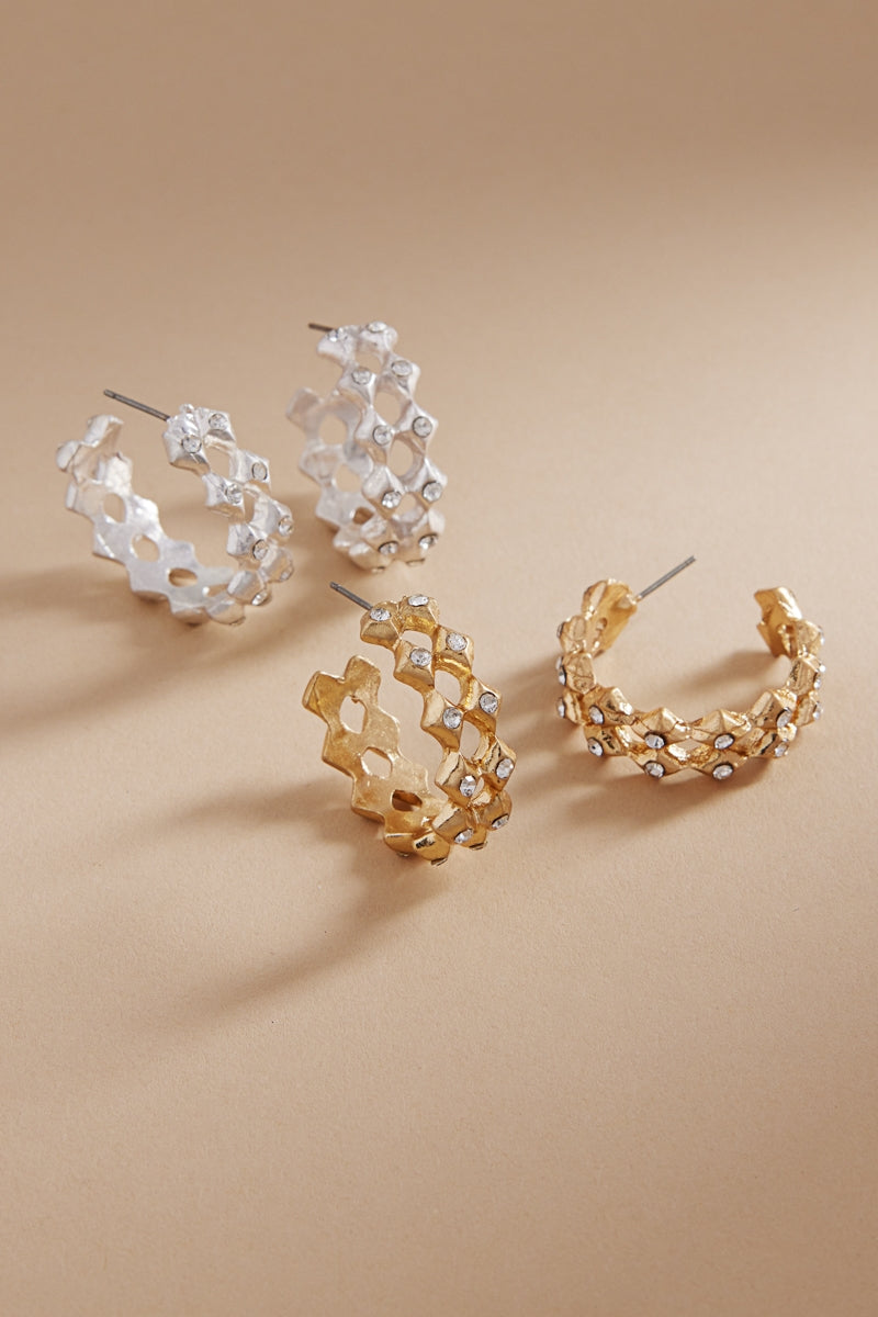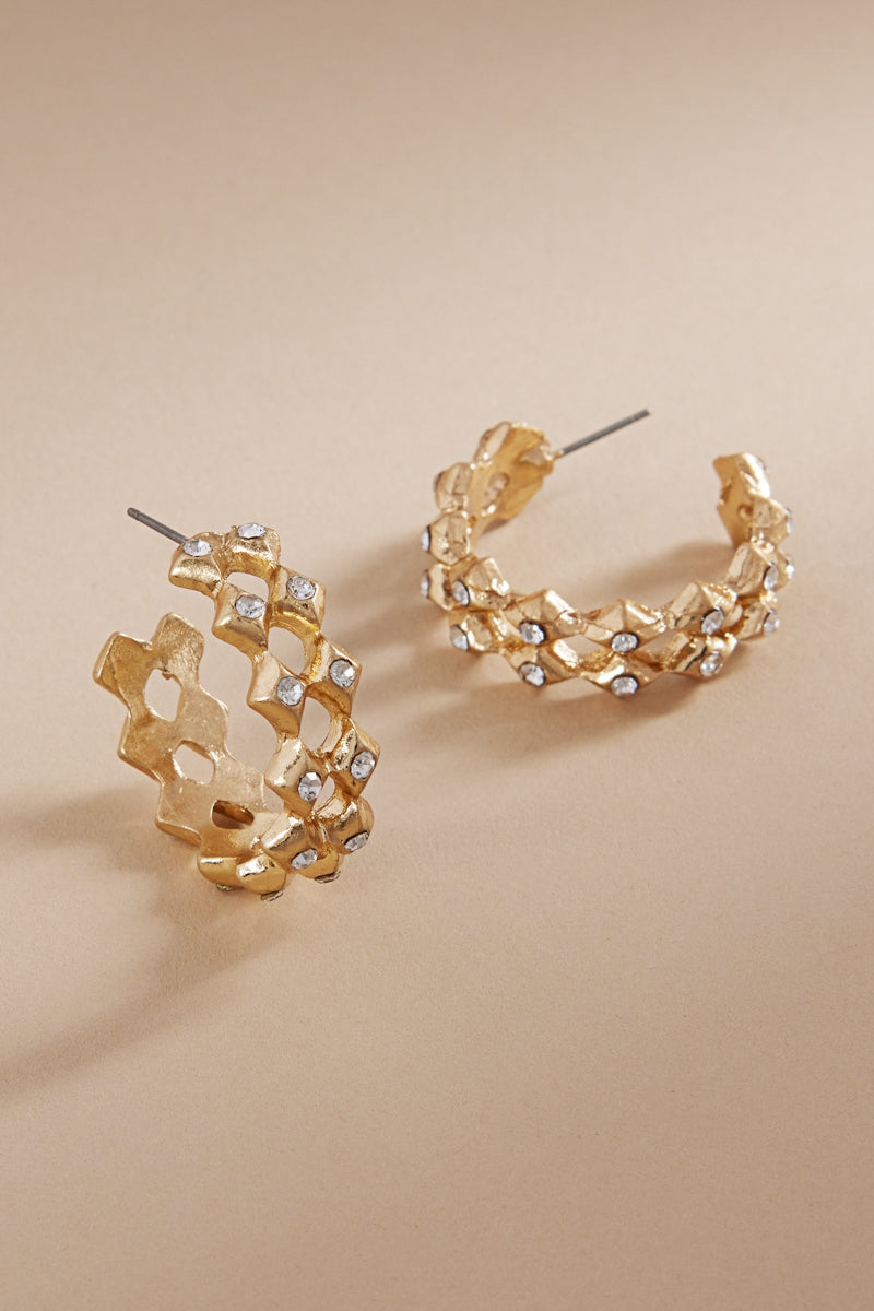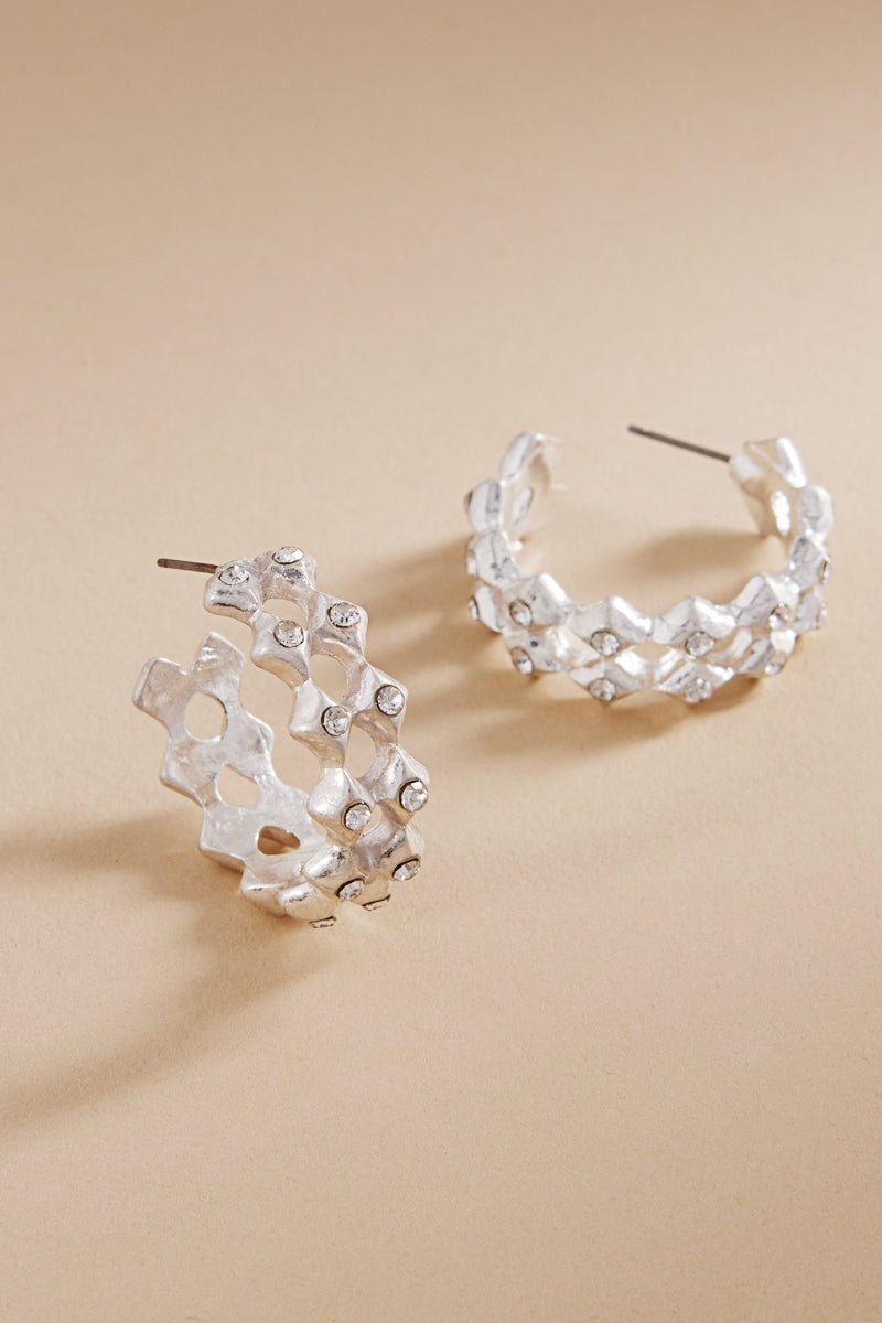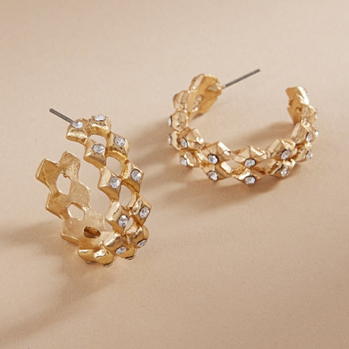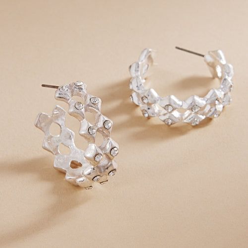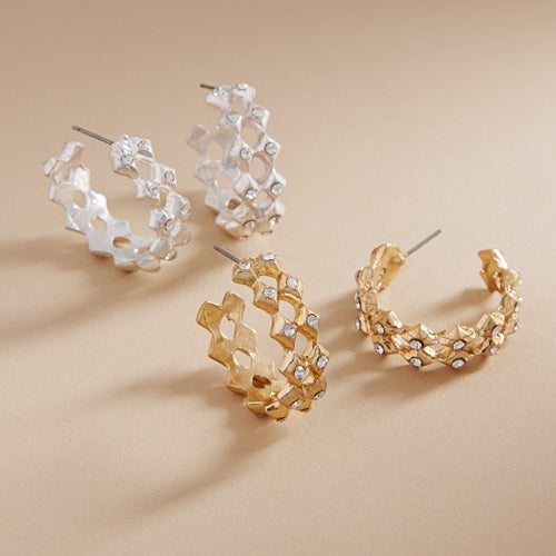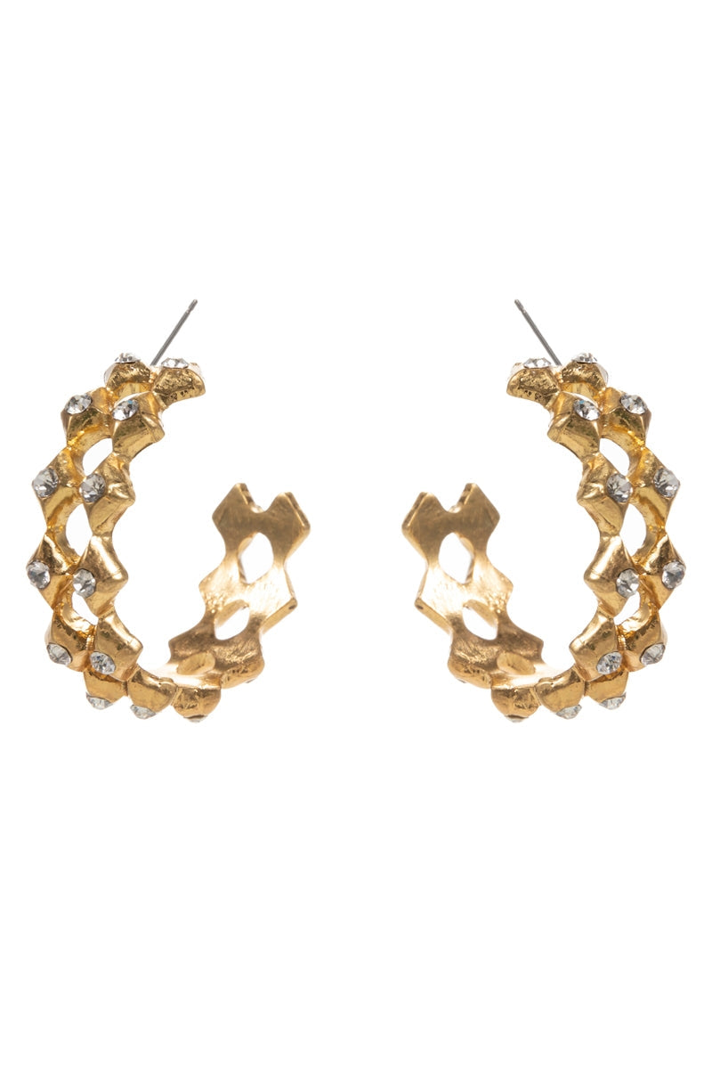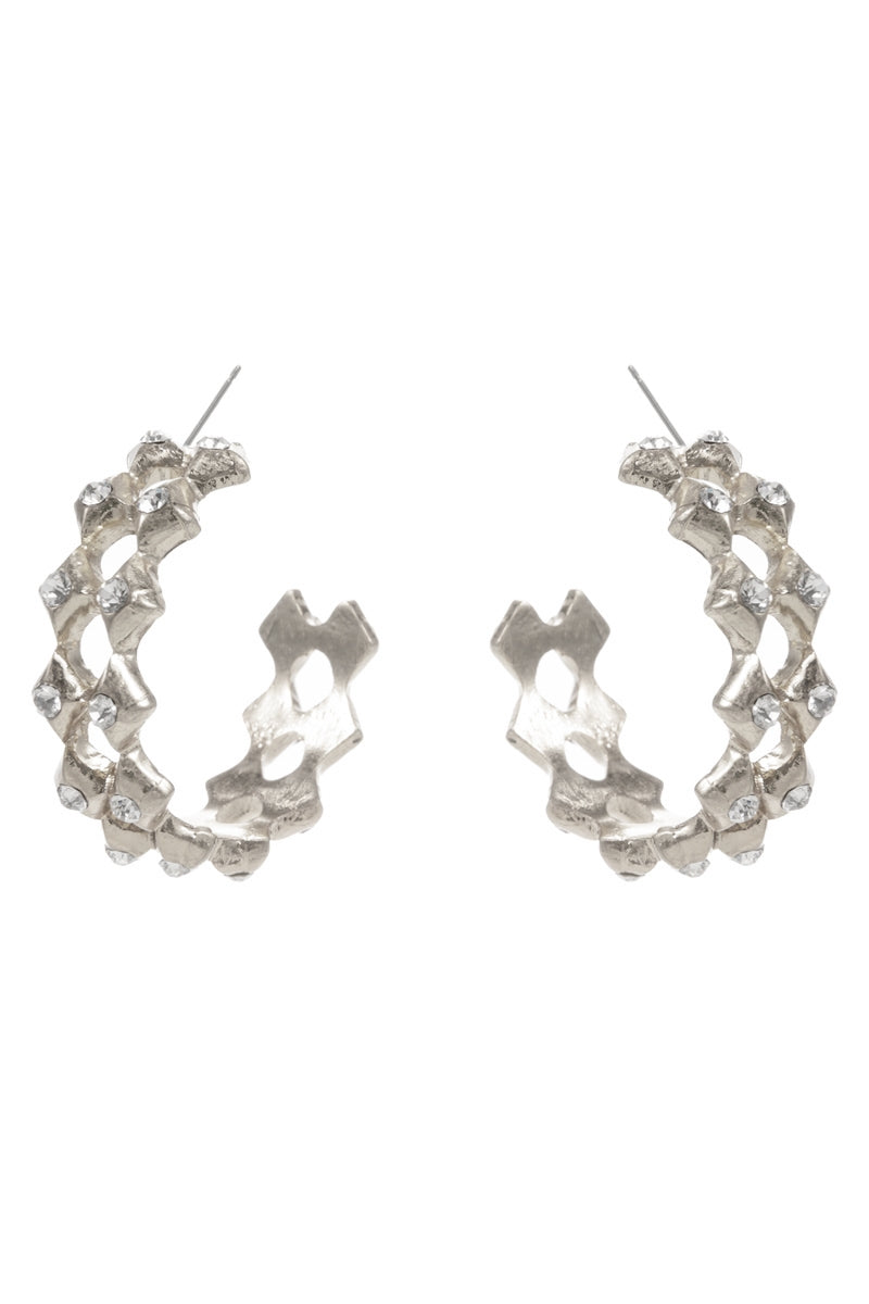 Round Groove Texture Metal Paved Pin Hoop Earrings