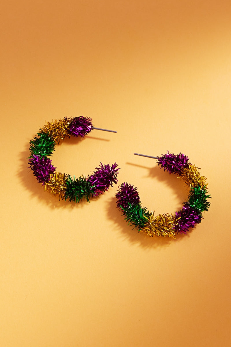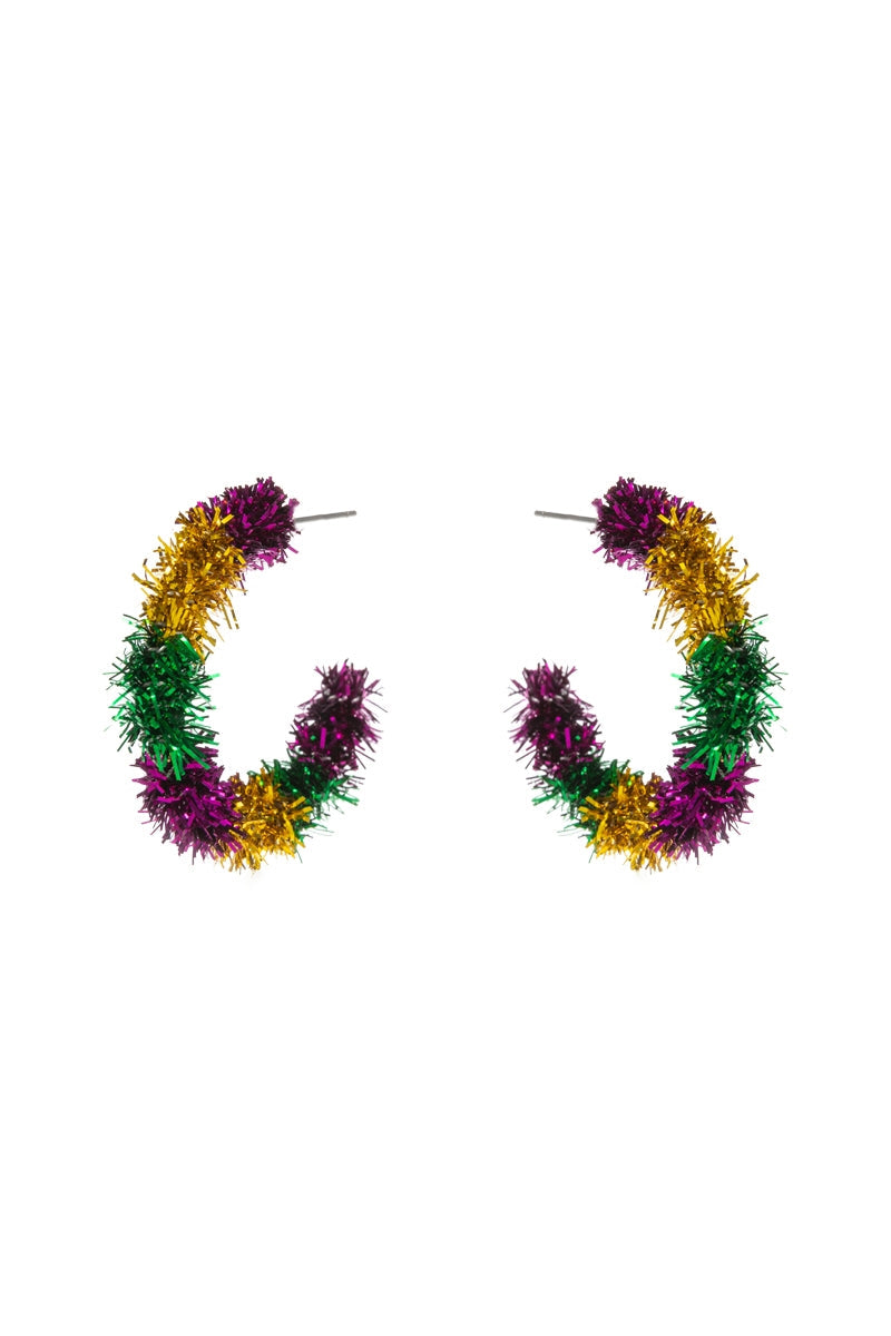 Round Mardi Gras Color Metal Thread Hoop Earrings