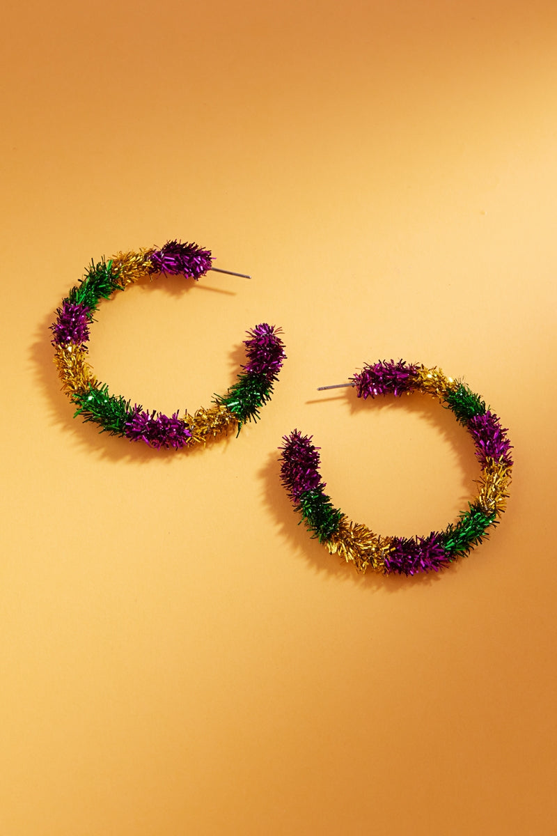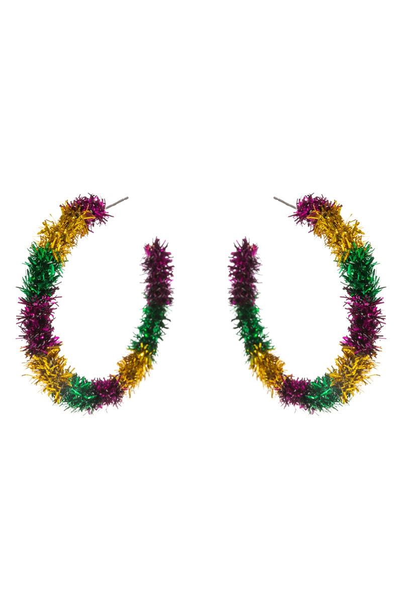 Round Mardi Gras Color Metal Thread Hoop Earrings