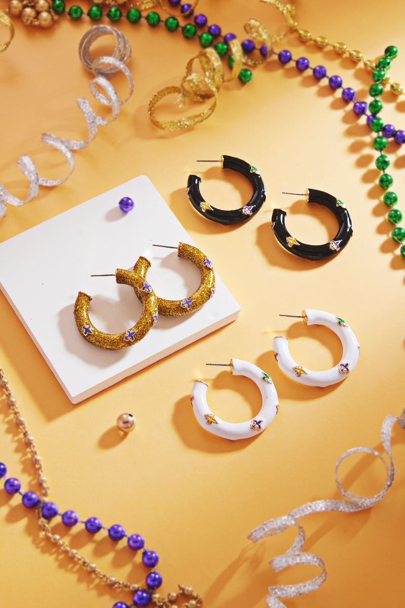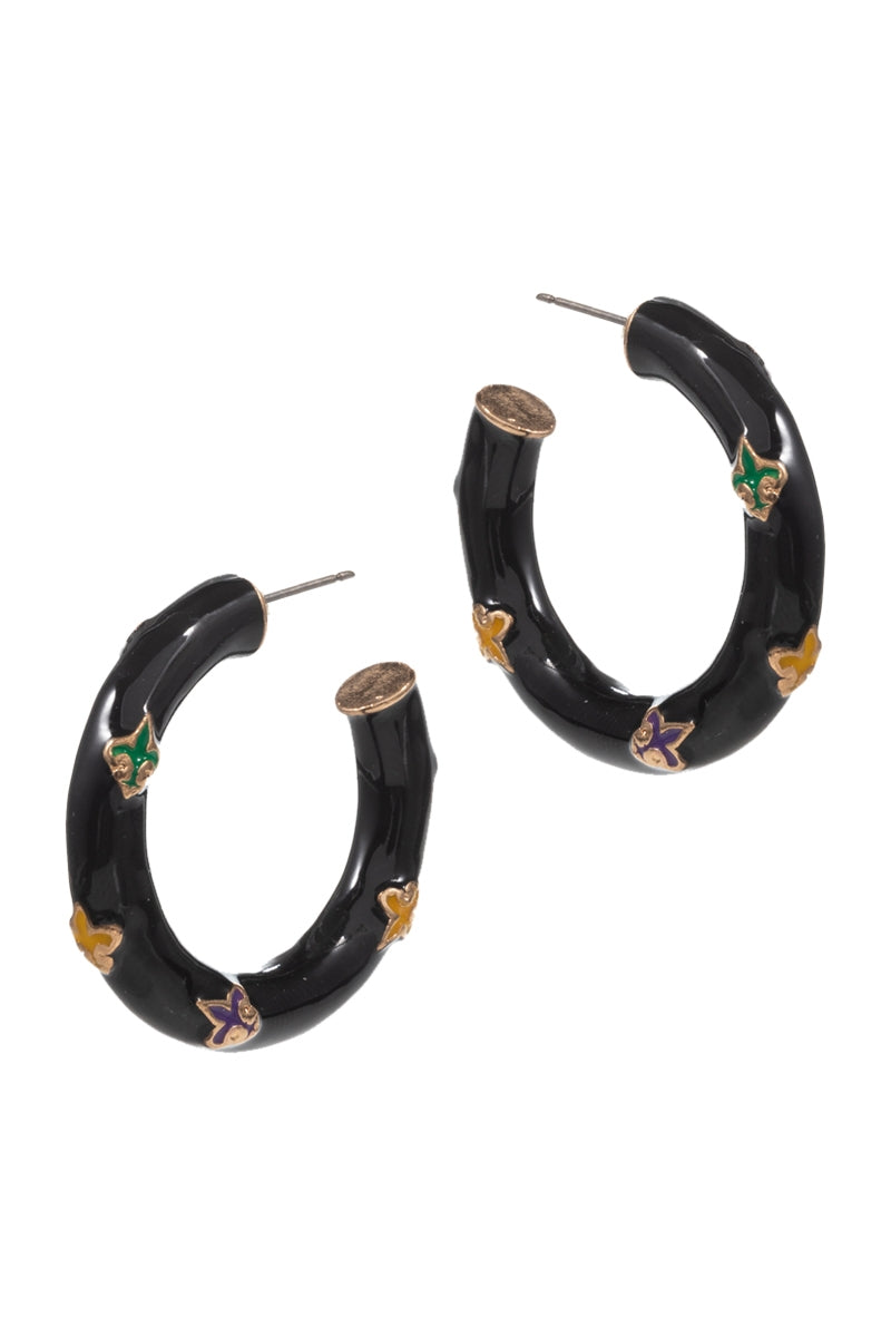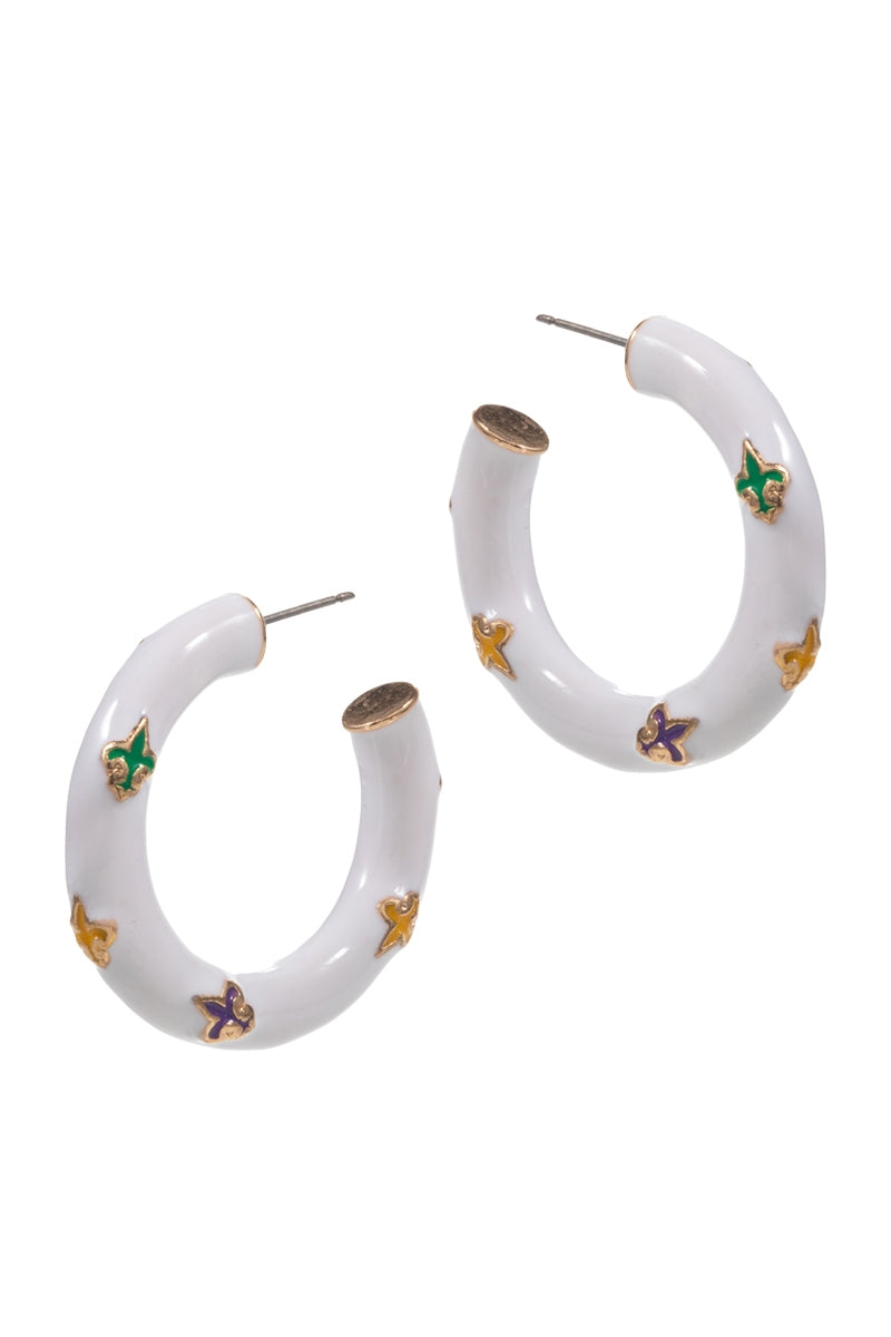 Round Mardi Gras Fleur De Lis Enamel Hoop Earrings