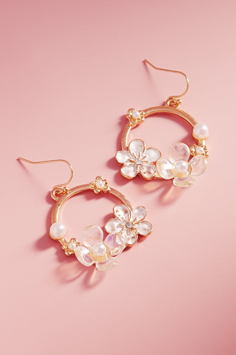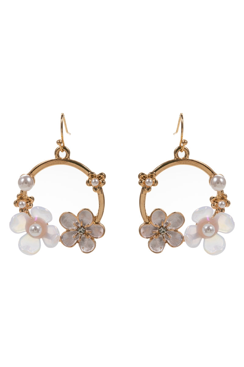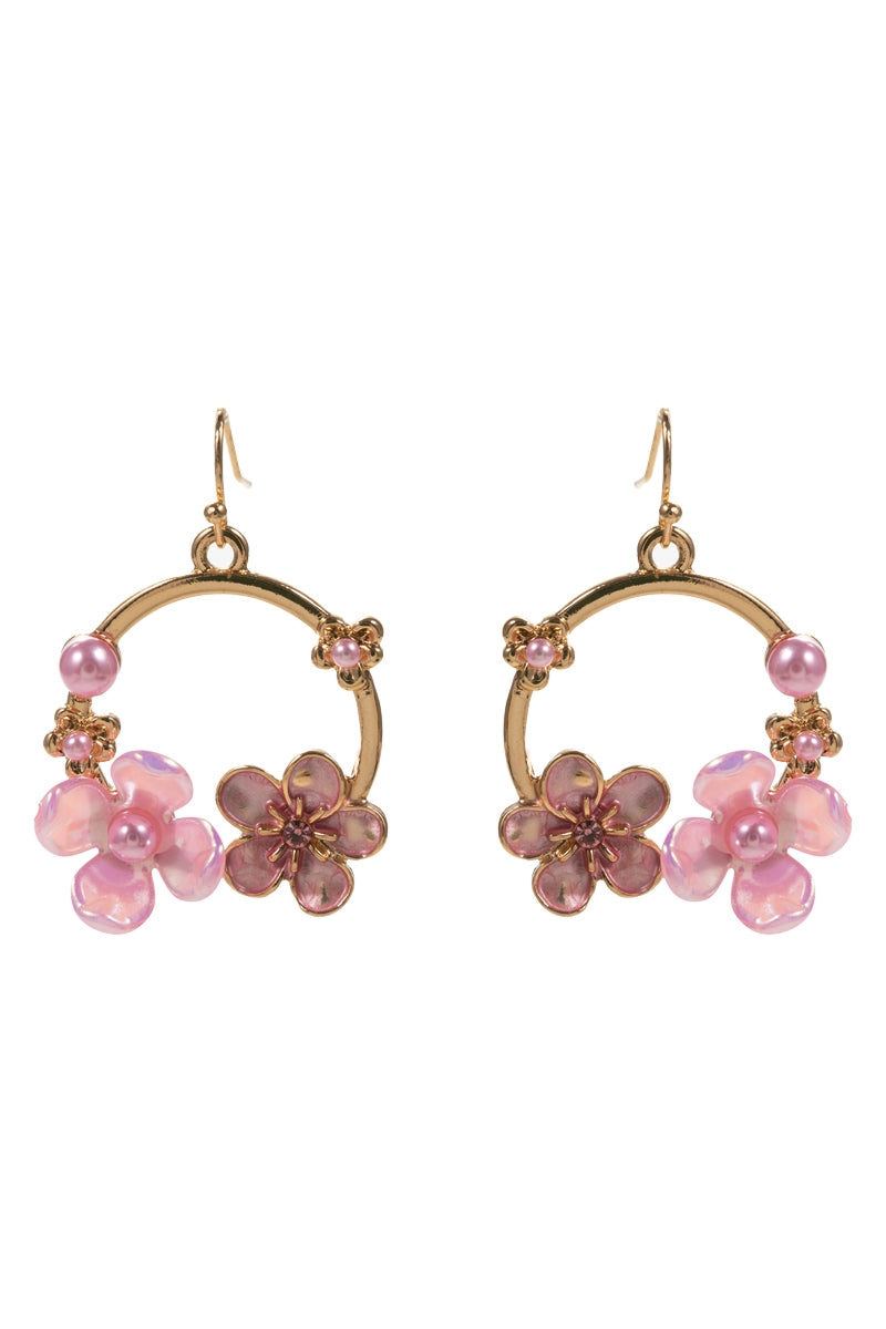 Round Metal Acrylic Flower Colored Hook Earrings