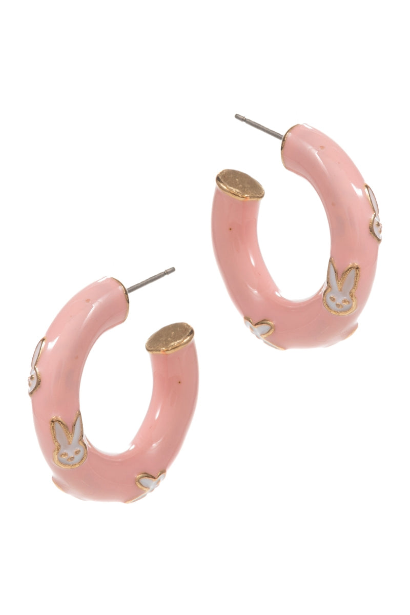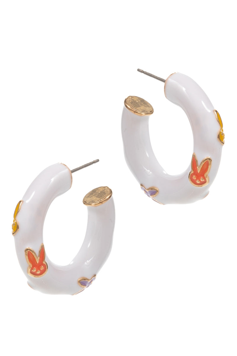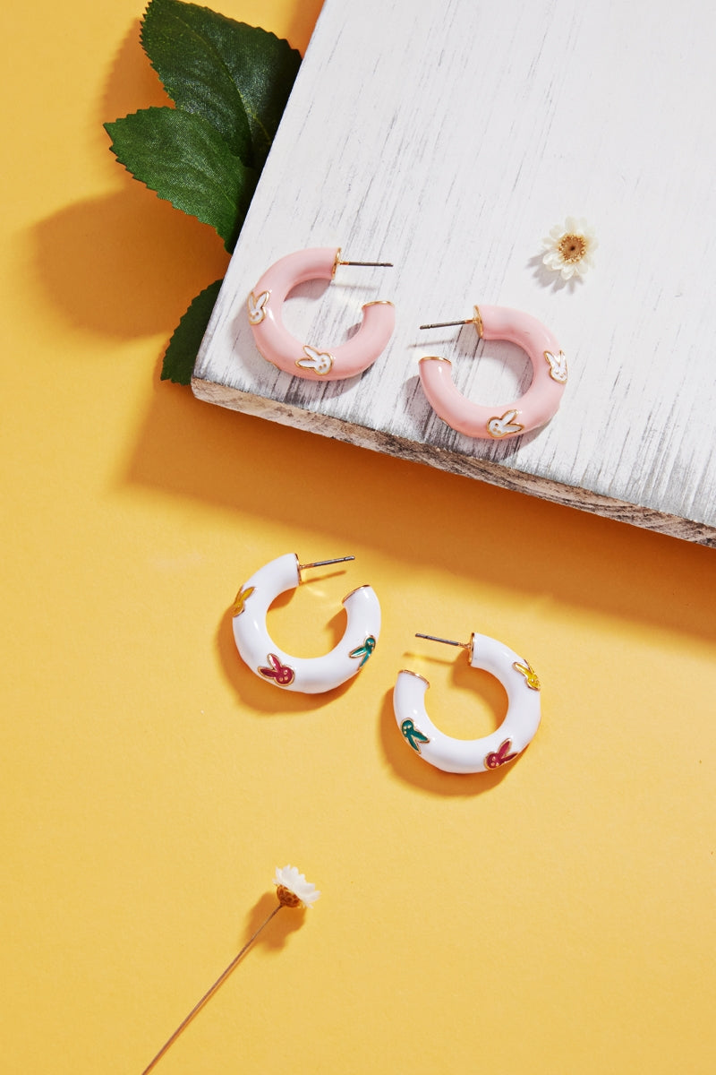 Round Metal Easter Bunny Pattern Hoop Earrings