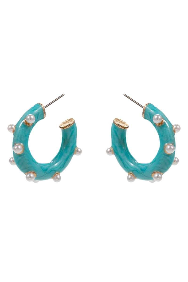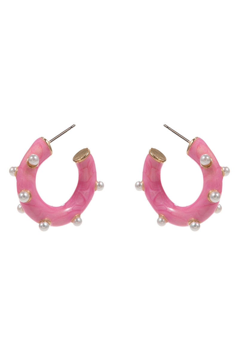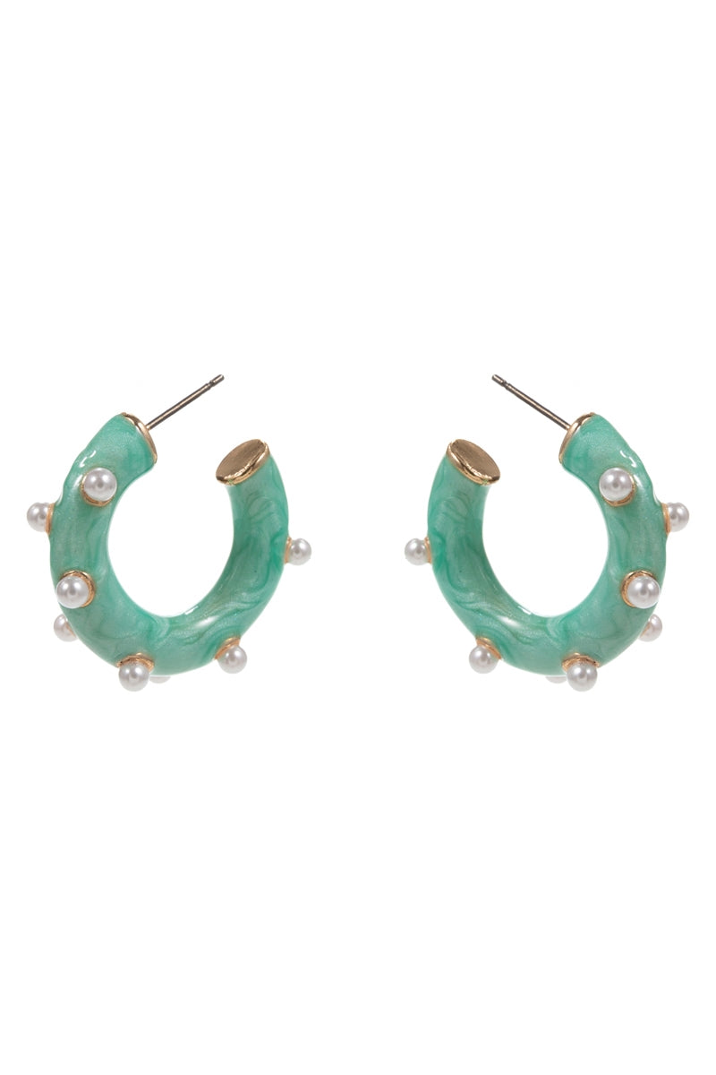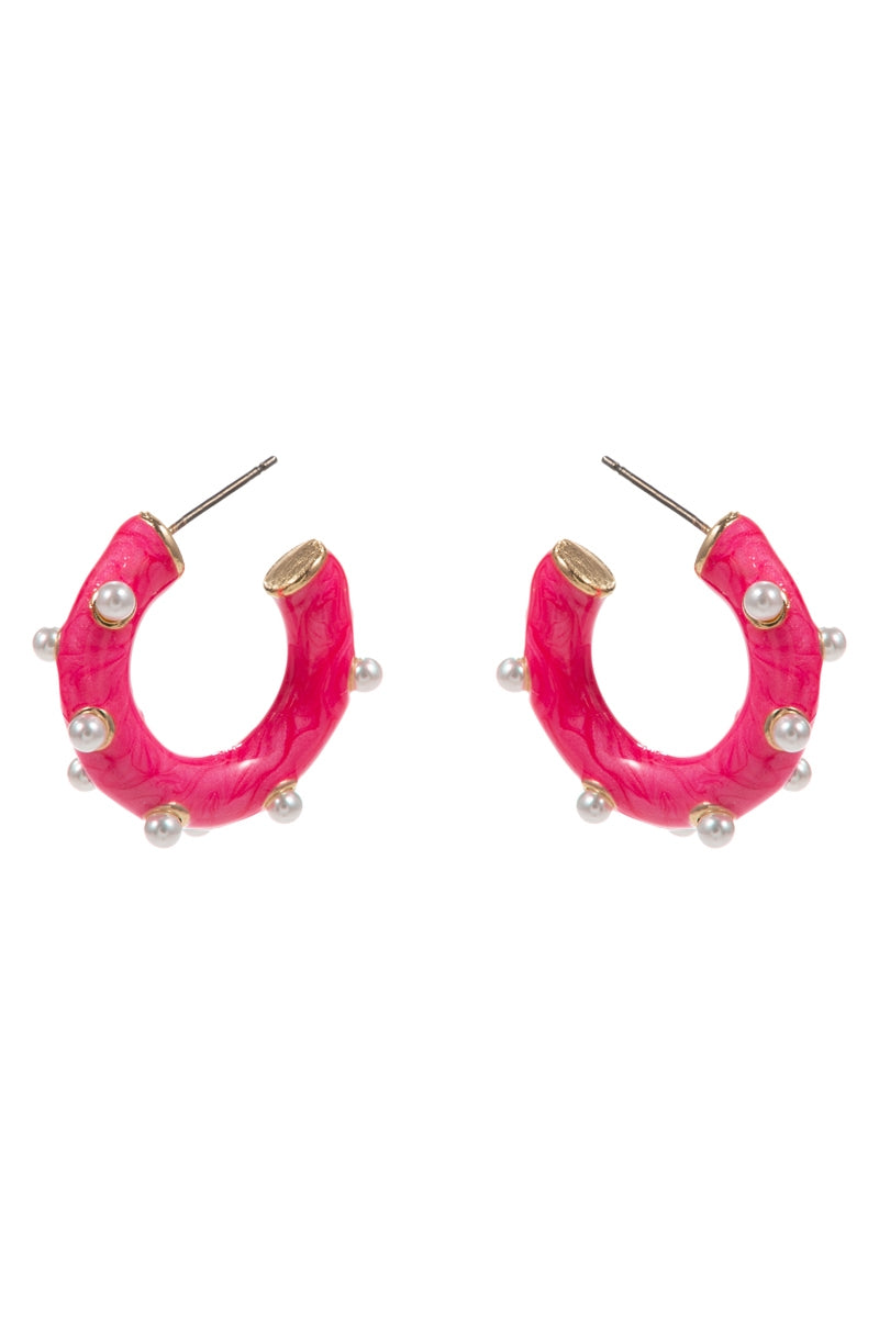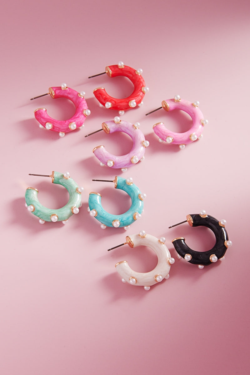 Round Pearlized Color Enamel Pearls Hoop Earrings