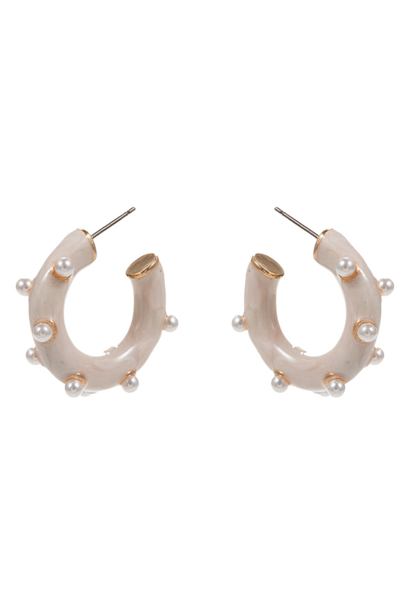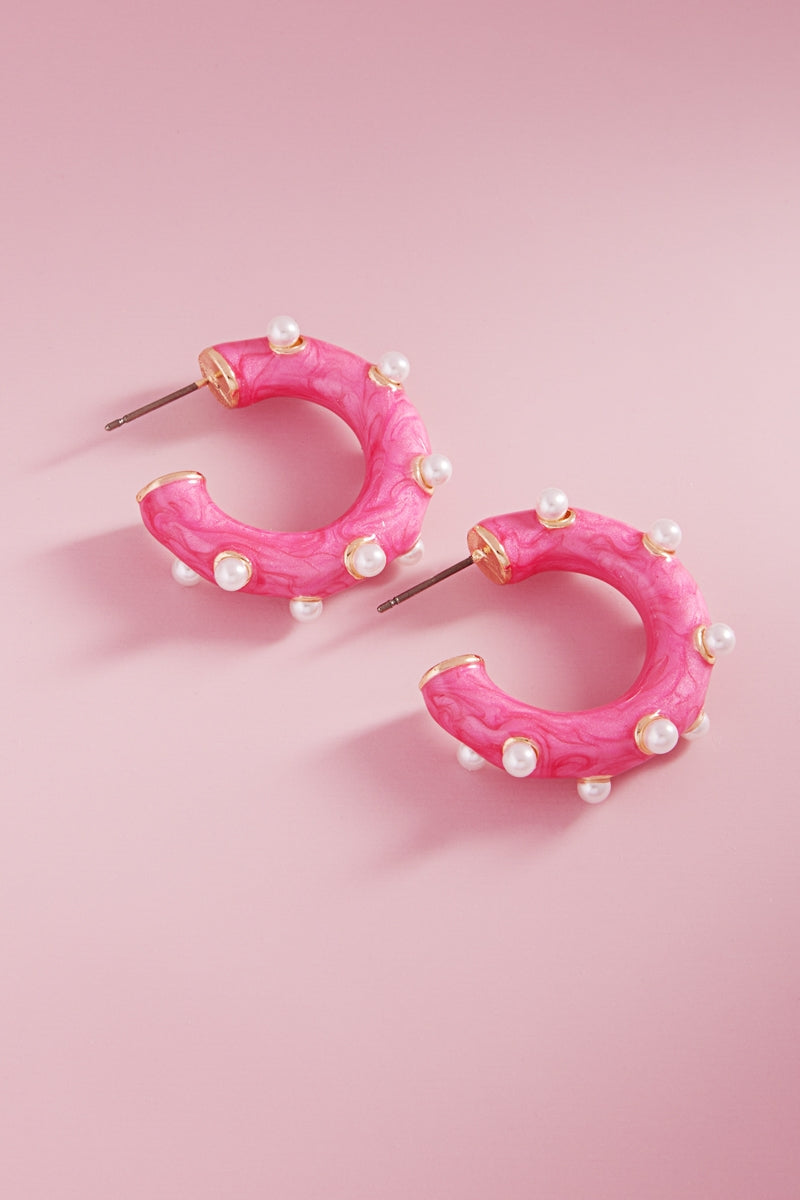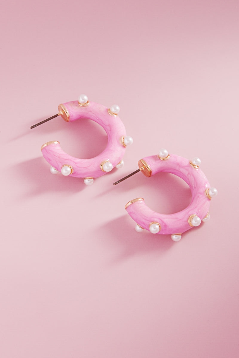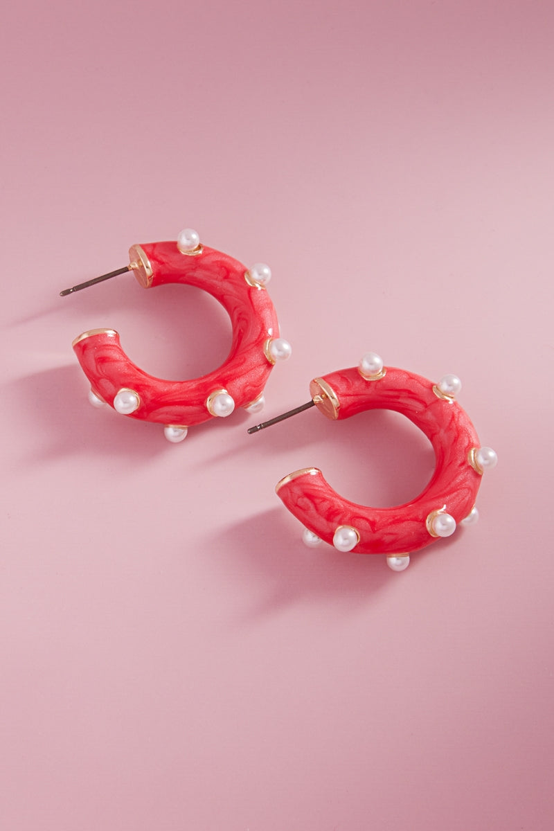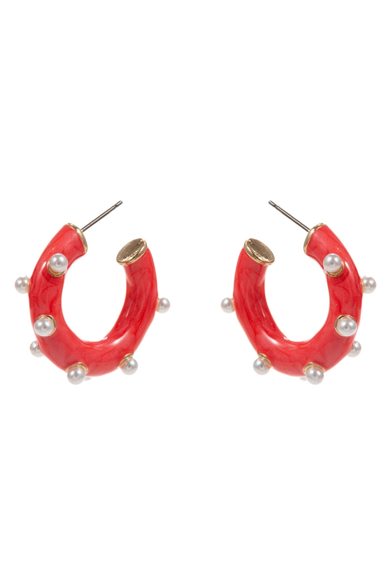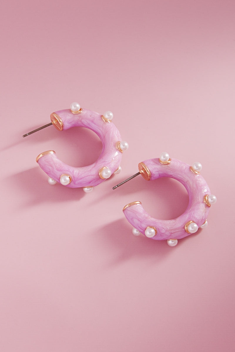 Round Pearlized Color Enamel Pearls Hoop Earrings