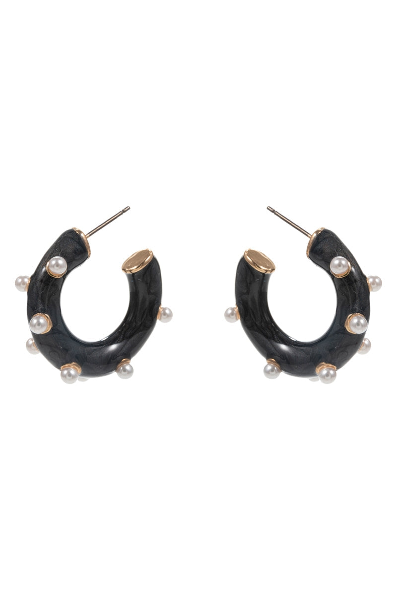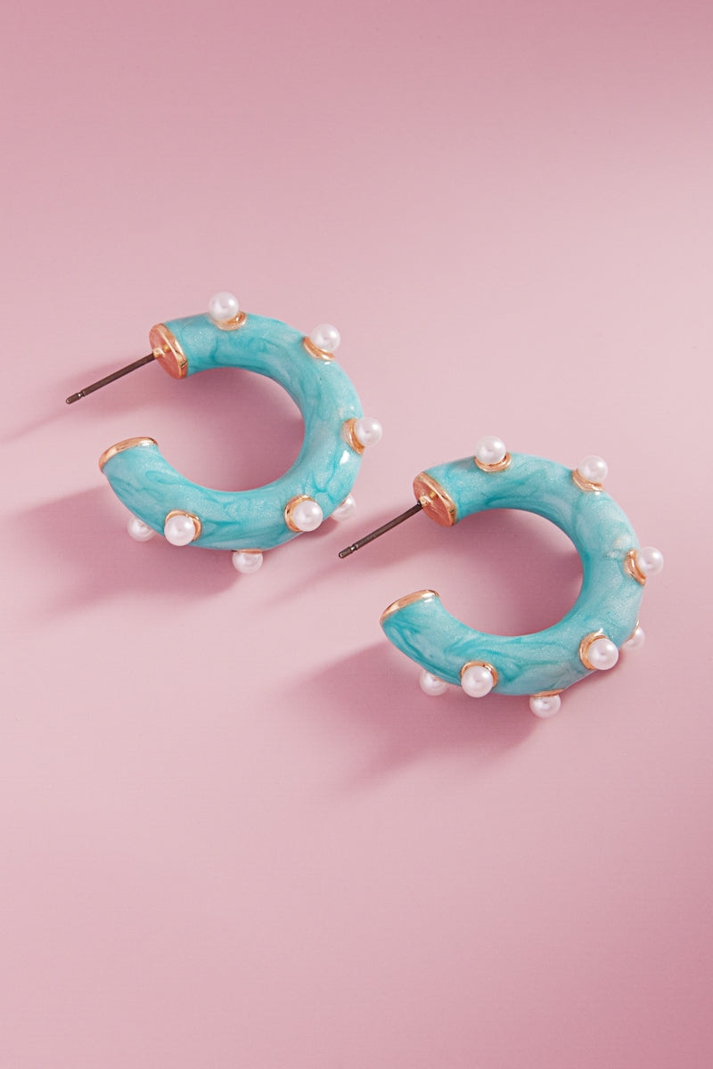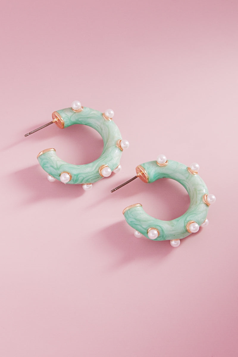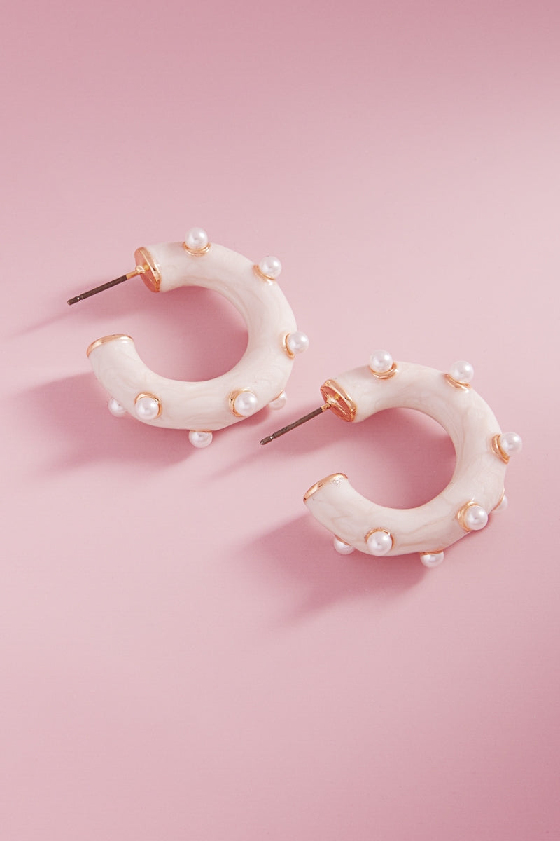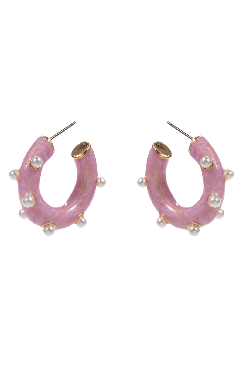 Round Pearlized Color Enamel Pearls Hoop Earrings