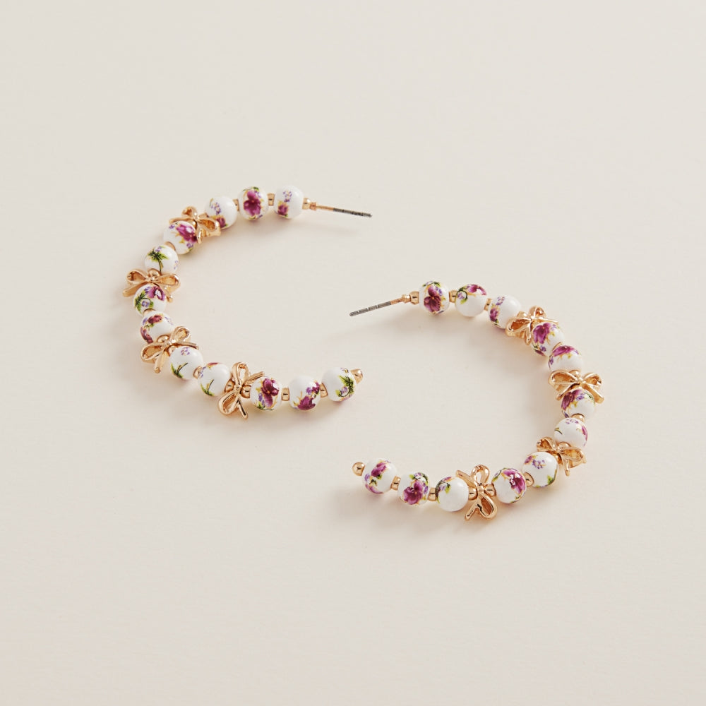 Round Shaped Ceramic Bead Hoop Earrings