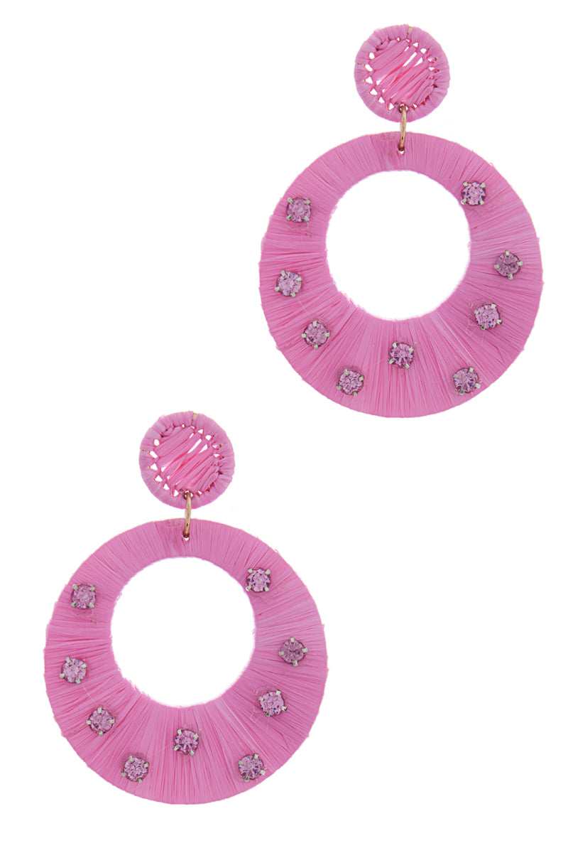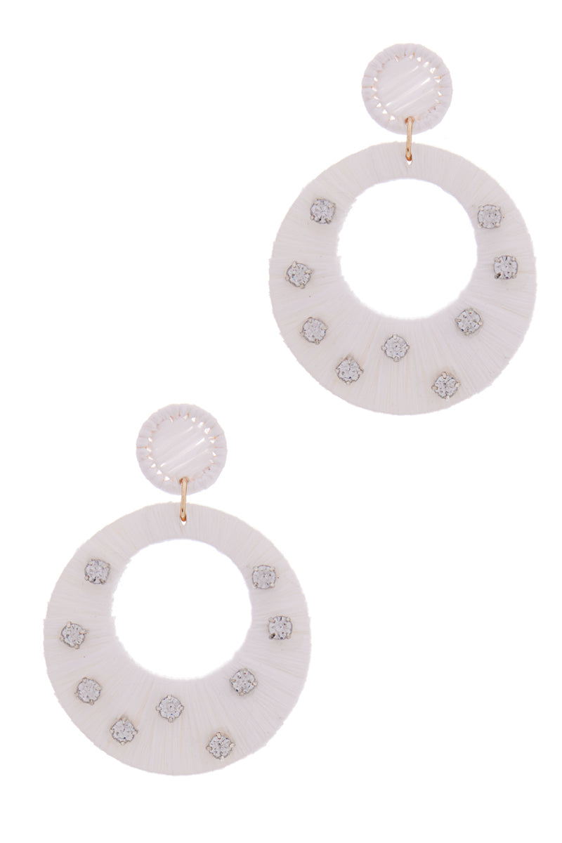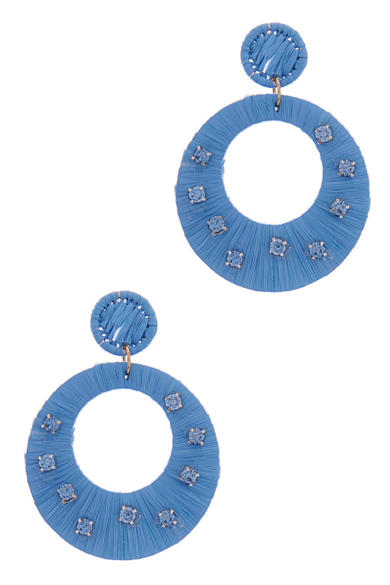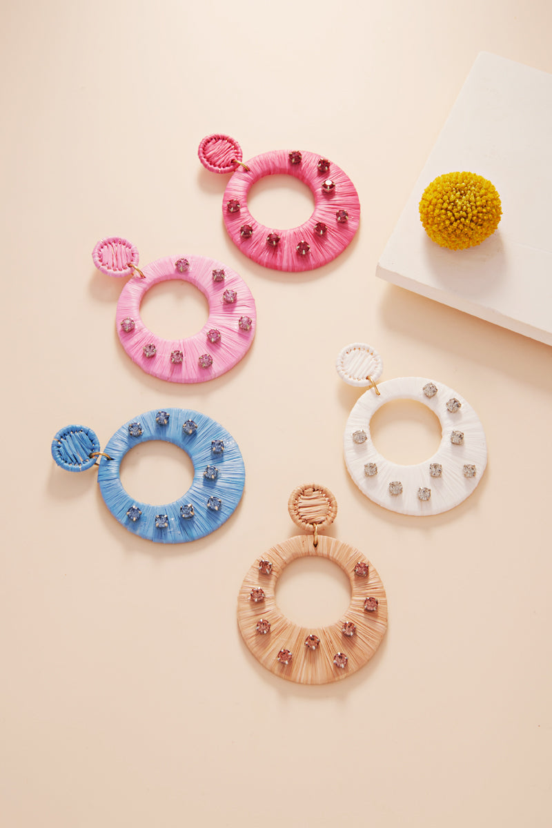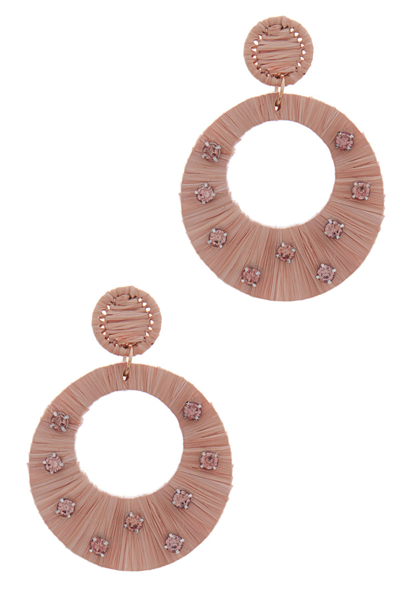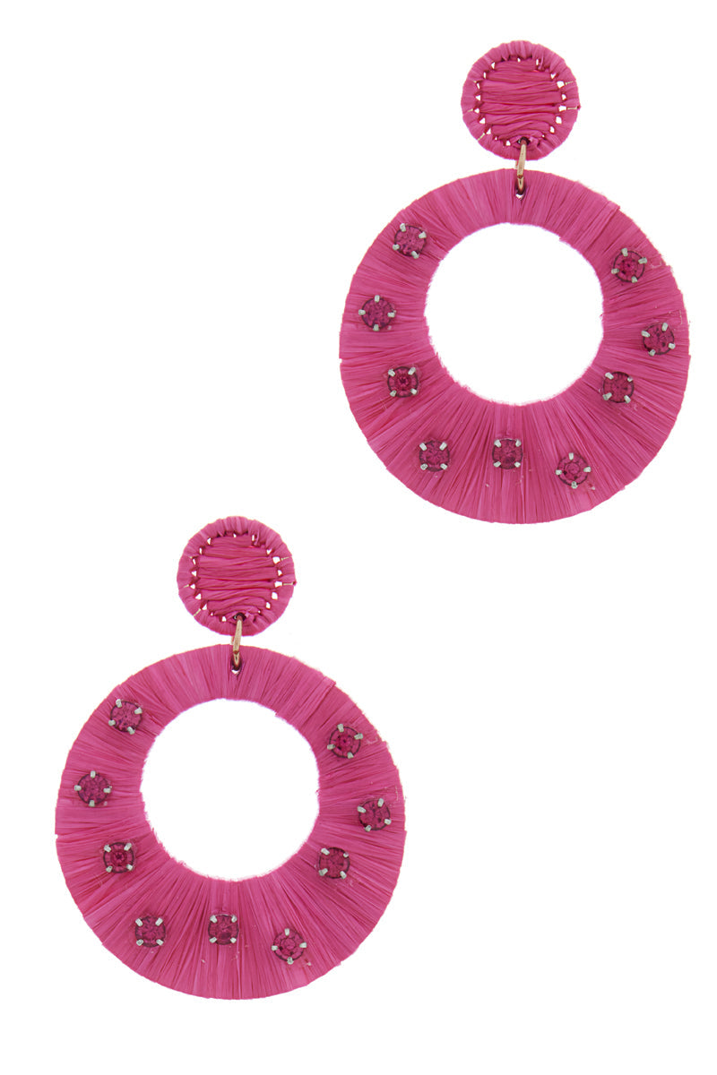 These 2.55 inch round shaped raffia post earrings add a touch of natural elegance to any outfit. Handcrafted with high-quality raffia, these earrings are lightweight and comfortable to wear.