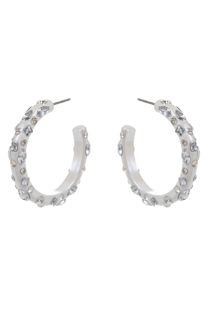 Round Shiny Color Coating W Stones Hoop Earrings