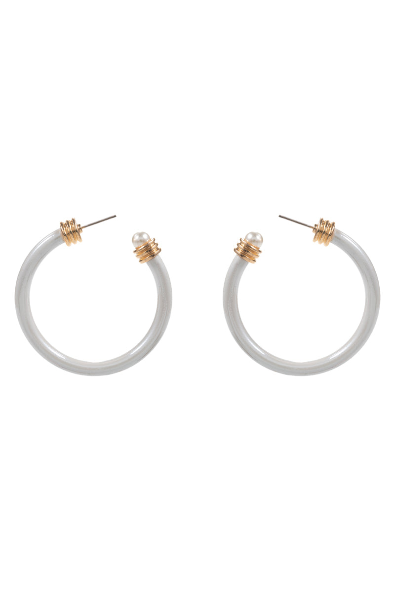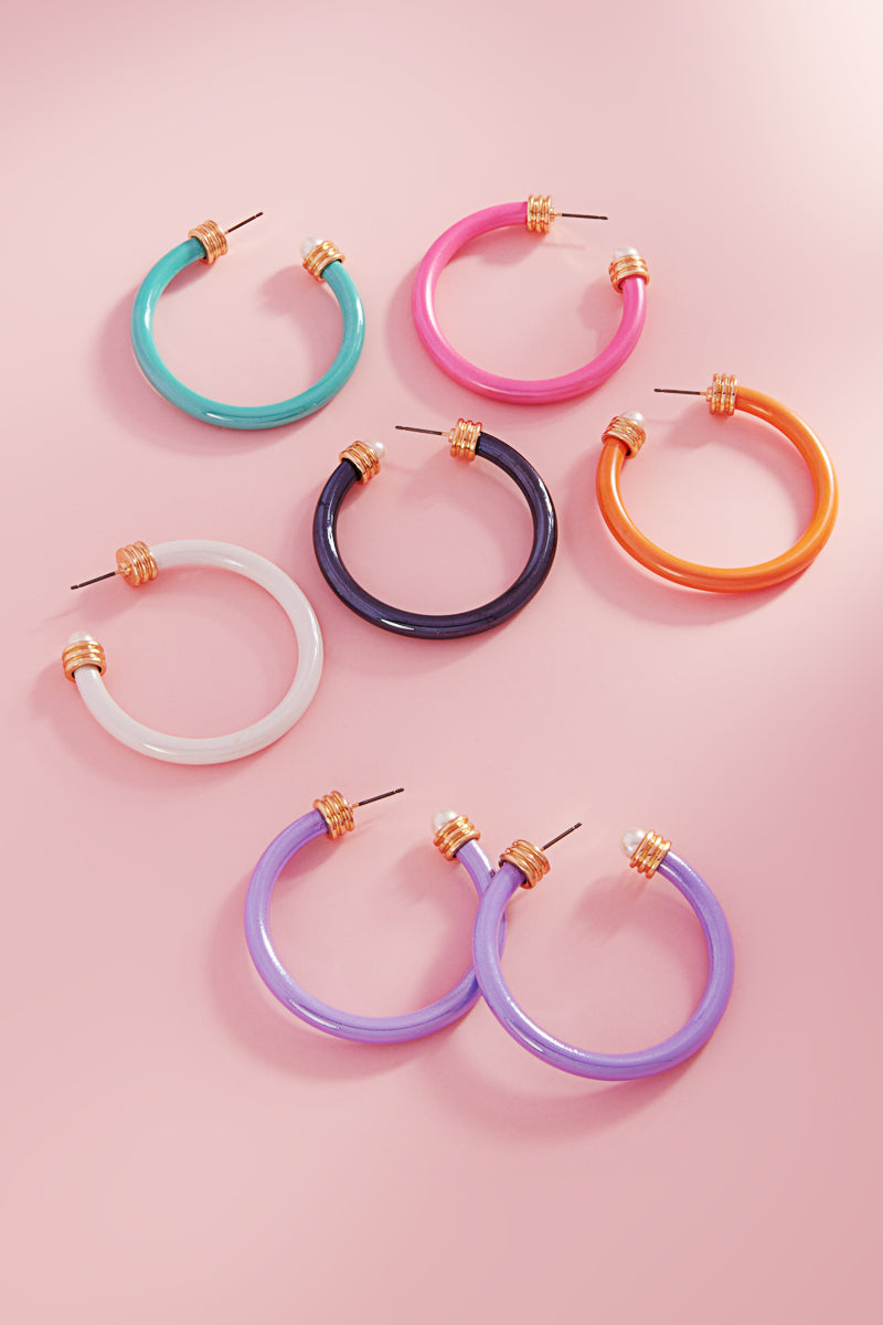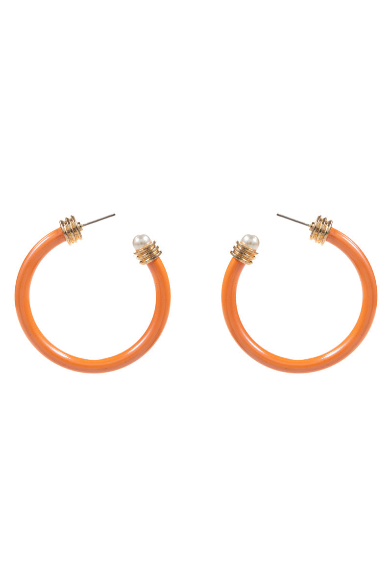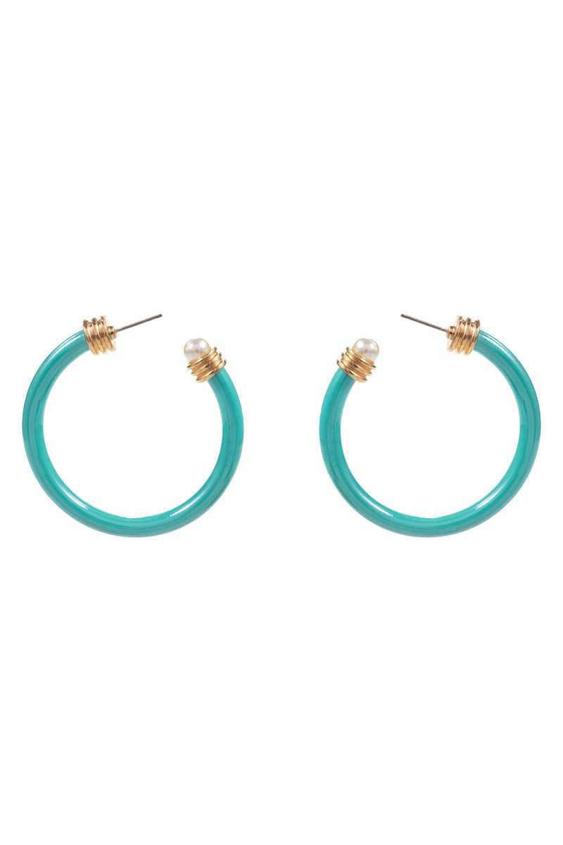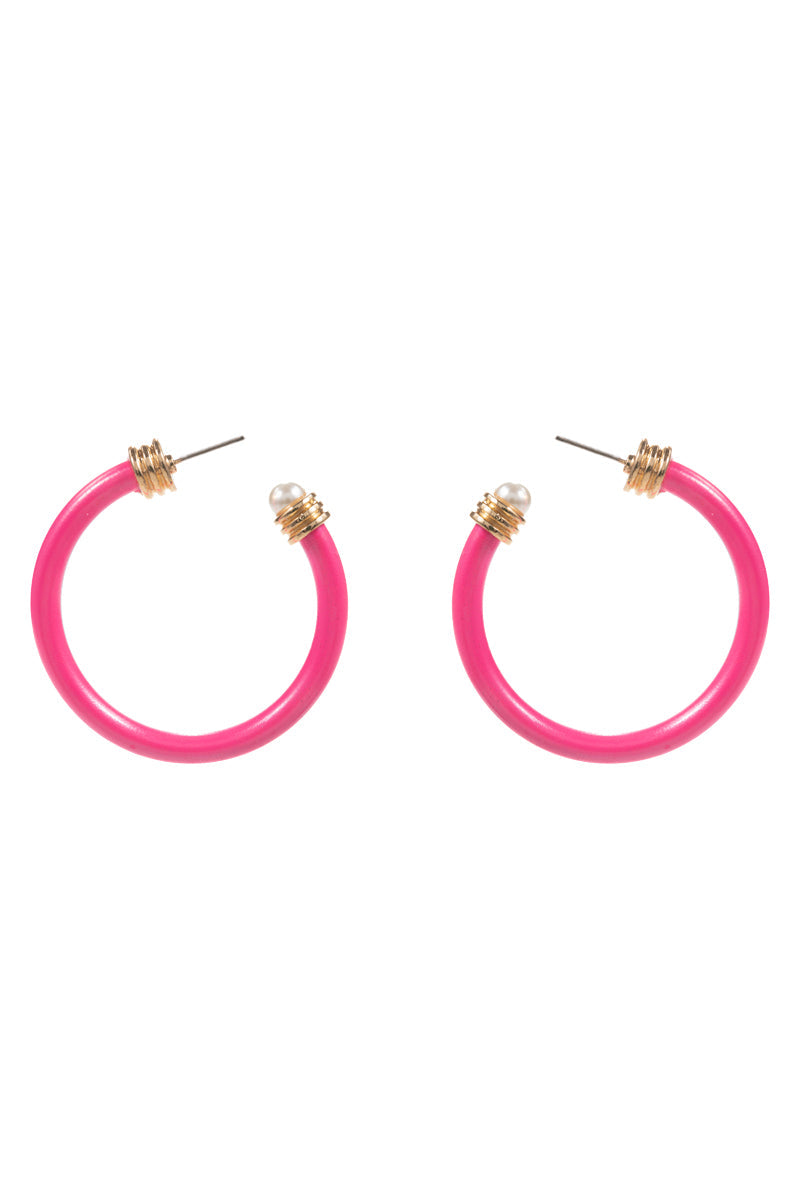 Round Shiny Color Coating Pearl Cap Hoop Earrings