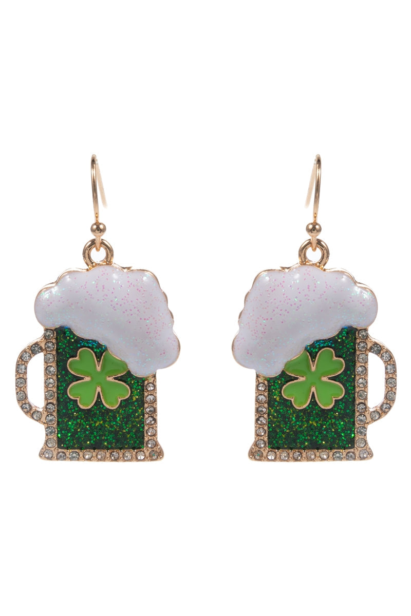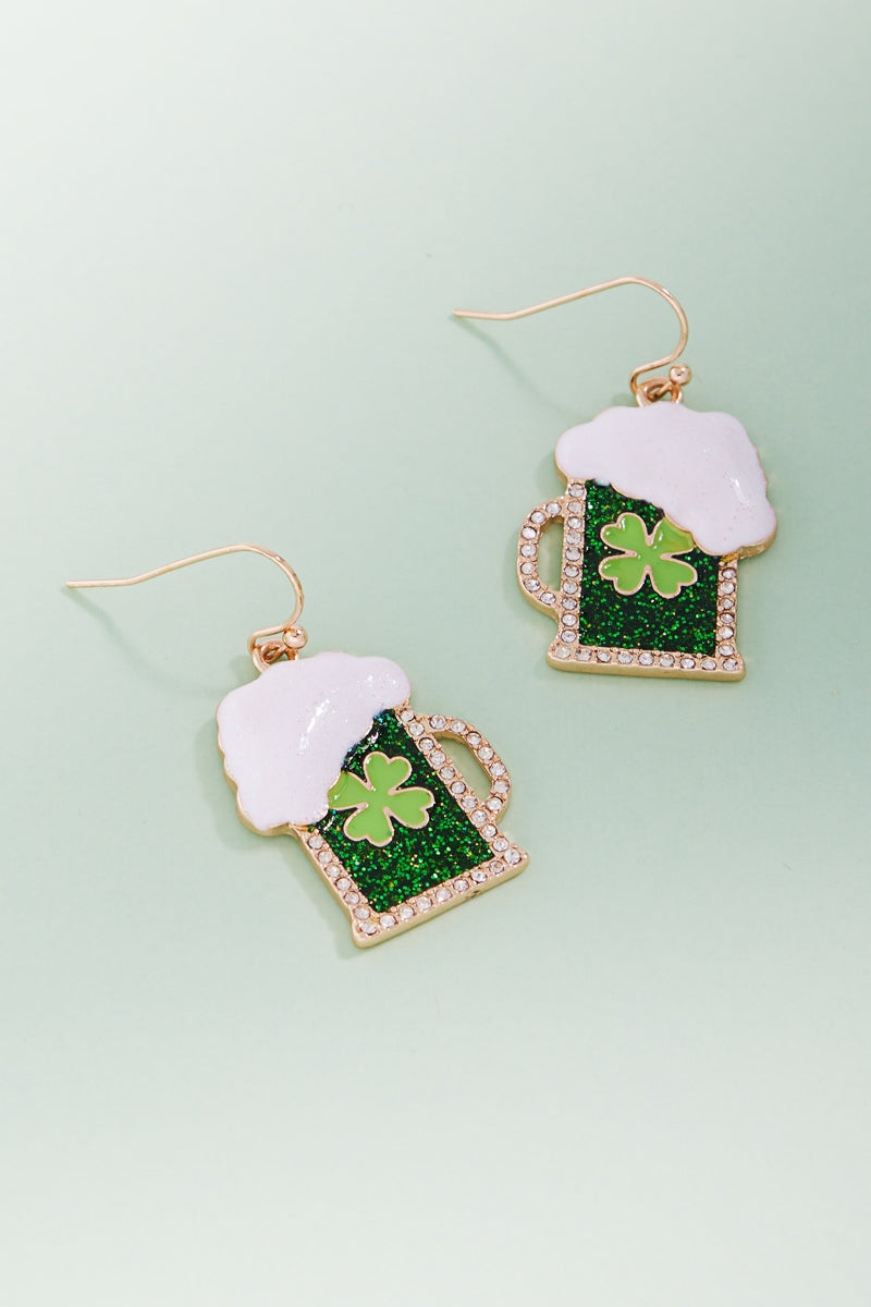 Saint Patricks Day Beer Enamel Brass Hook Earrings