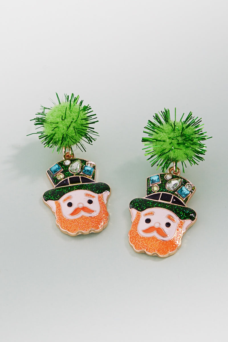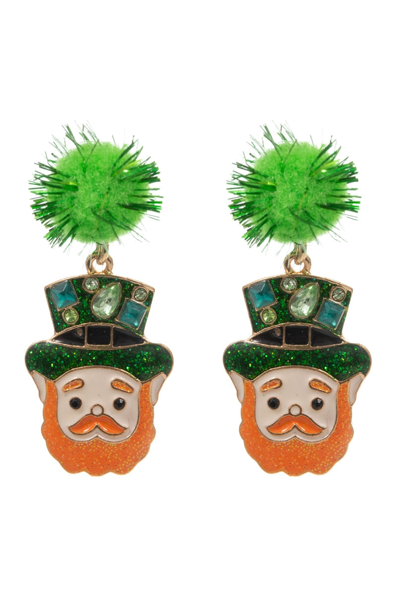 Saint Patricks Day Enamel W Pompom Post Earrings