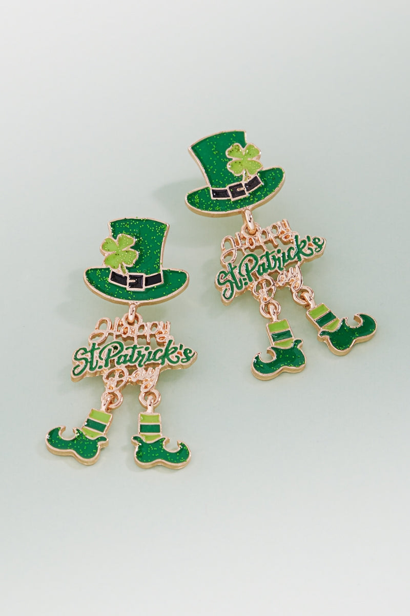 Saint Patricks Enamel 3Drop Titanium Post Earrings