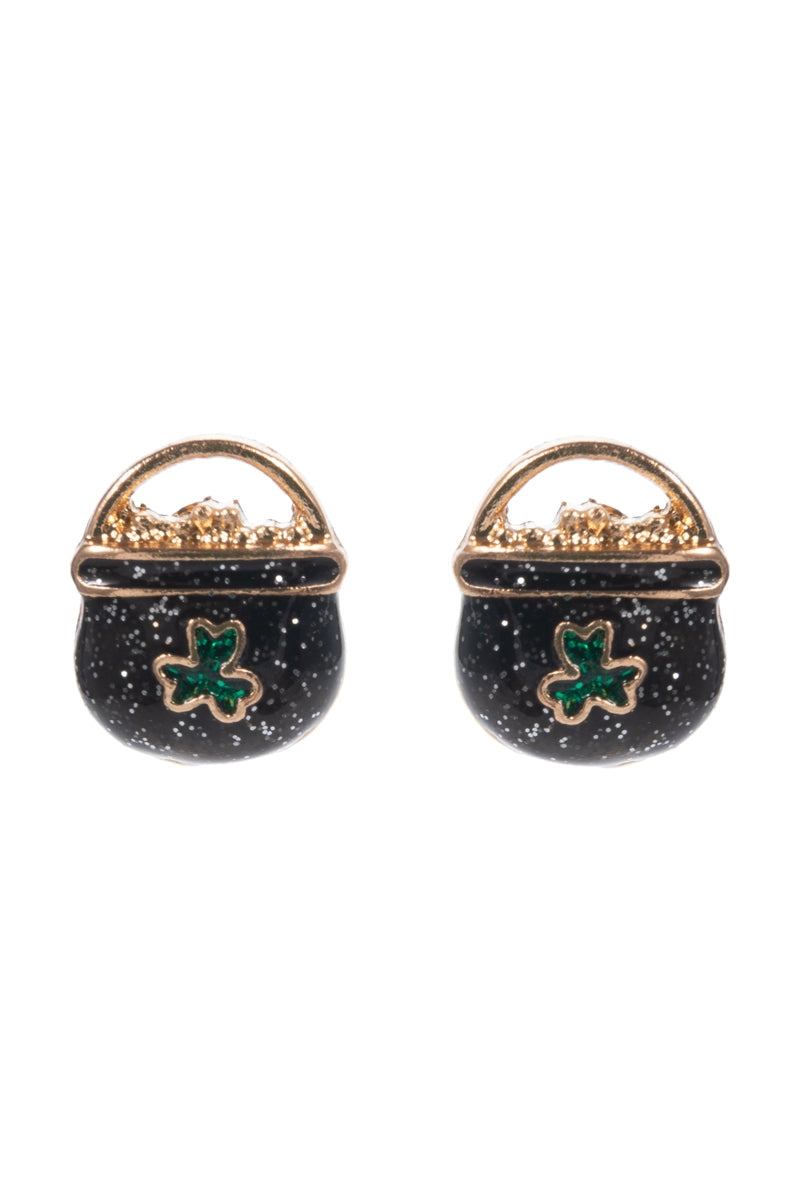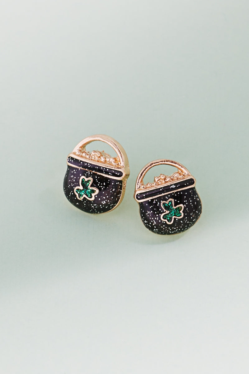 Saint Patricks Pot Of Gold Enamel Post Earrings