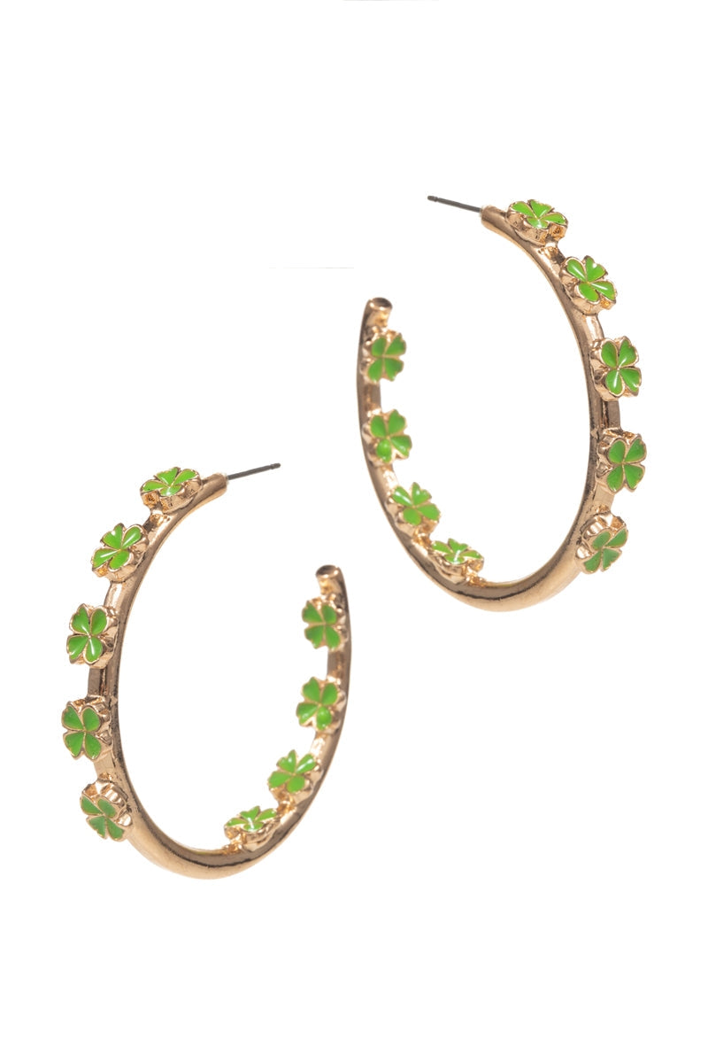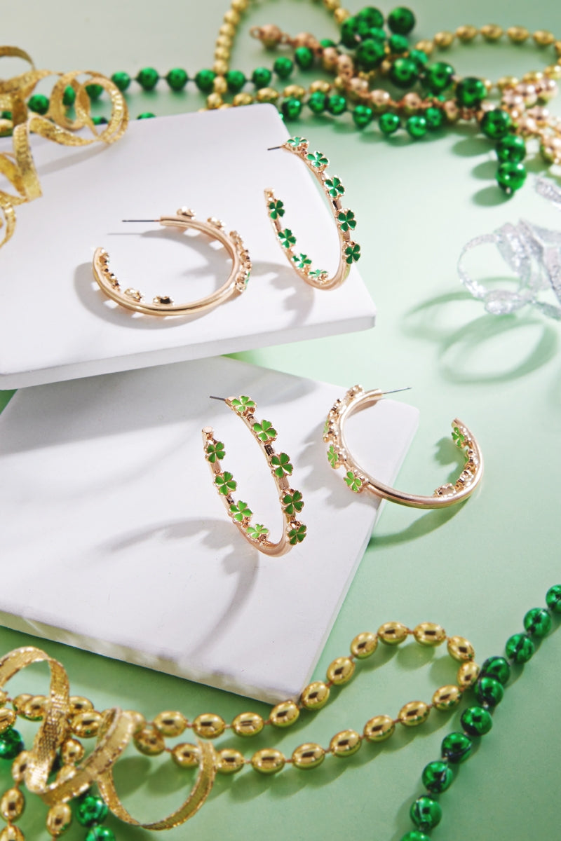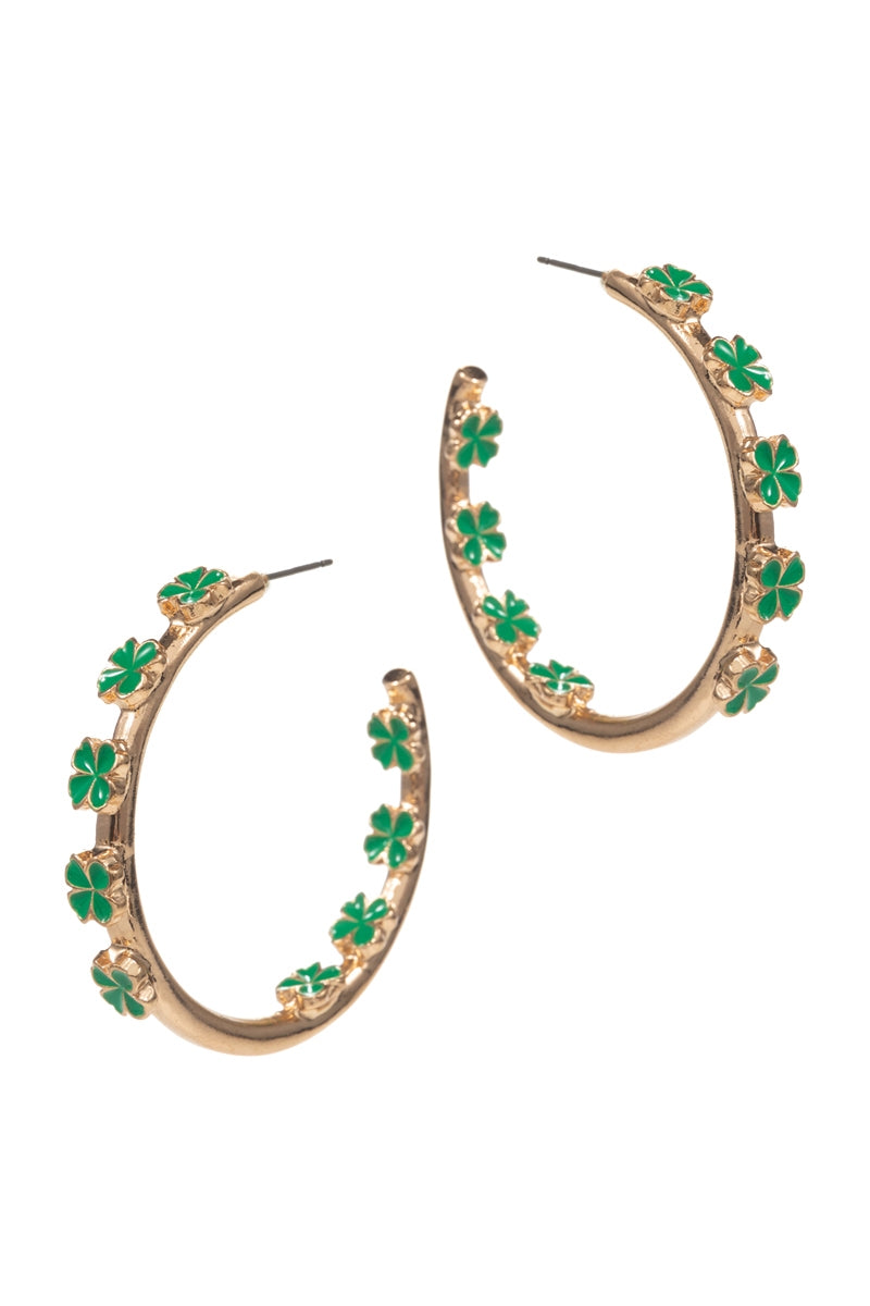 Saint Patricks Round Enamel Clover Hoop Earrings