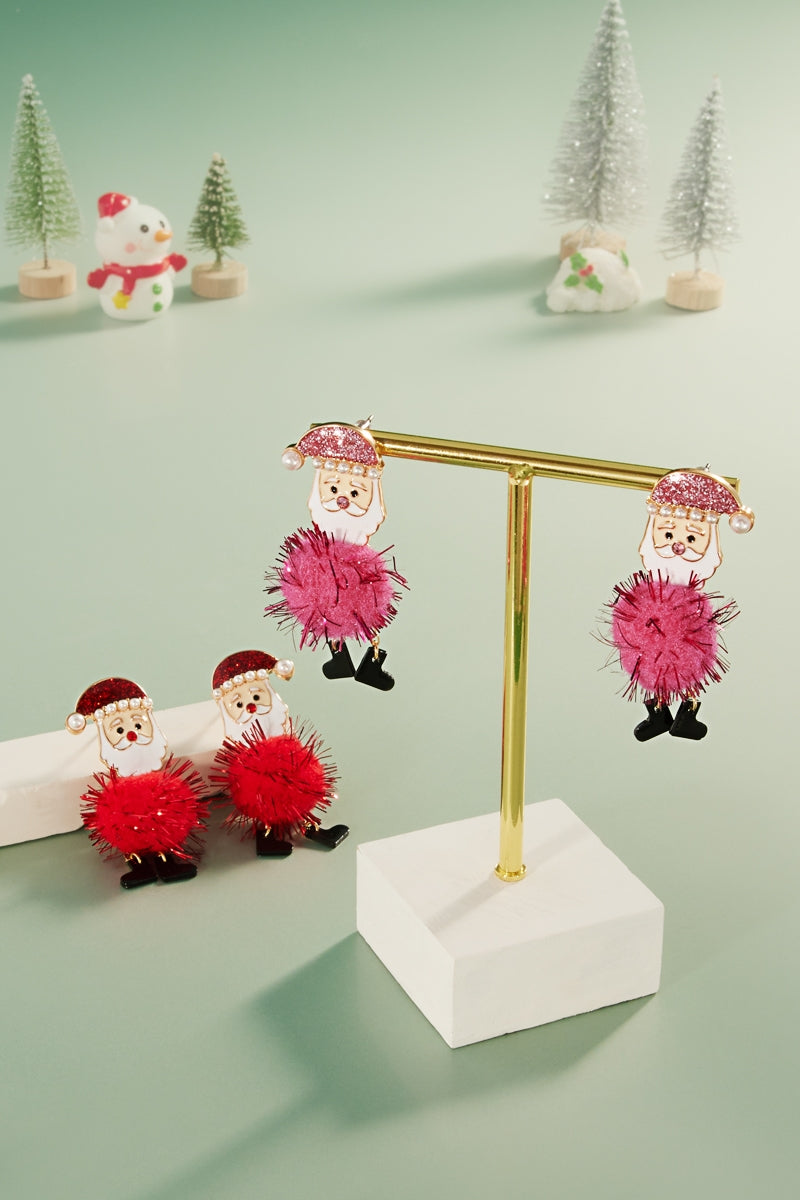 Jolly and bright, these Santa post earrings offer a cheerful touch with enamel shine and pom pom flair.