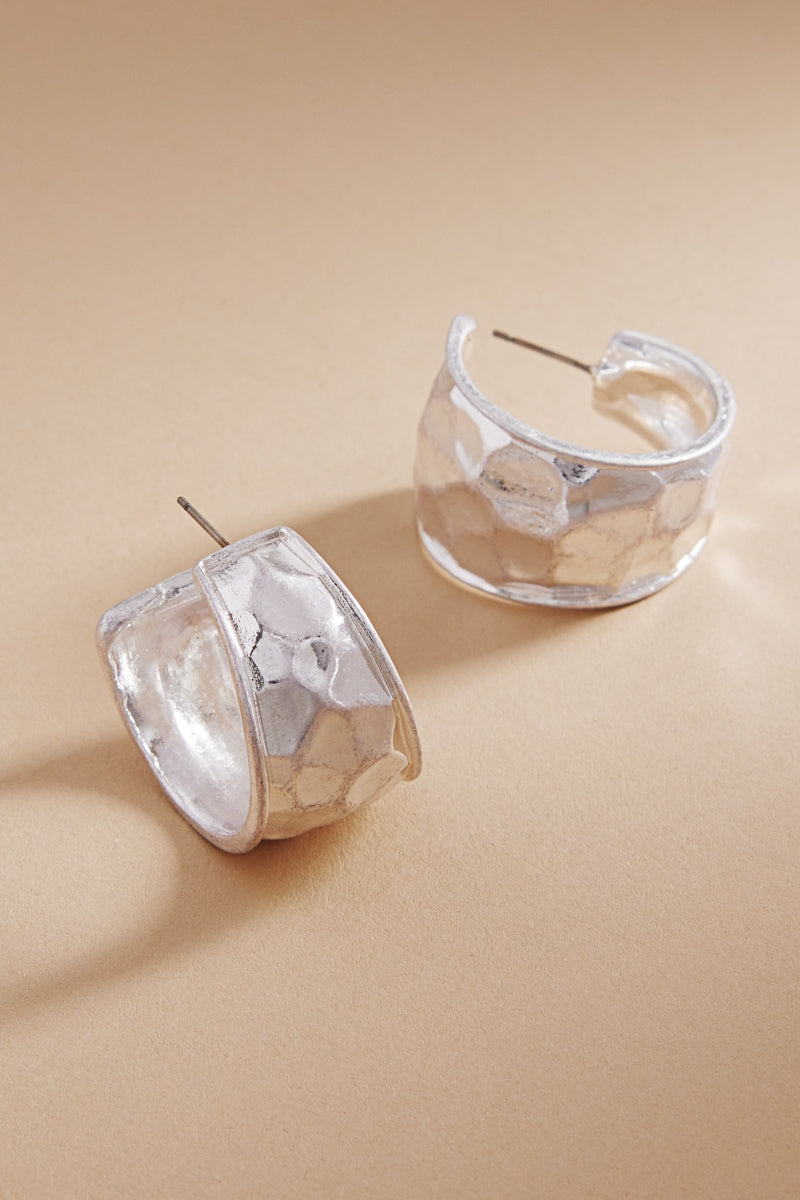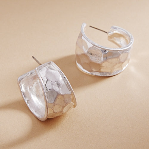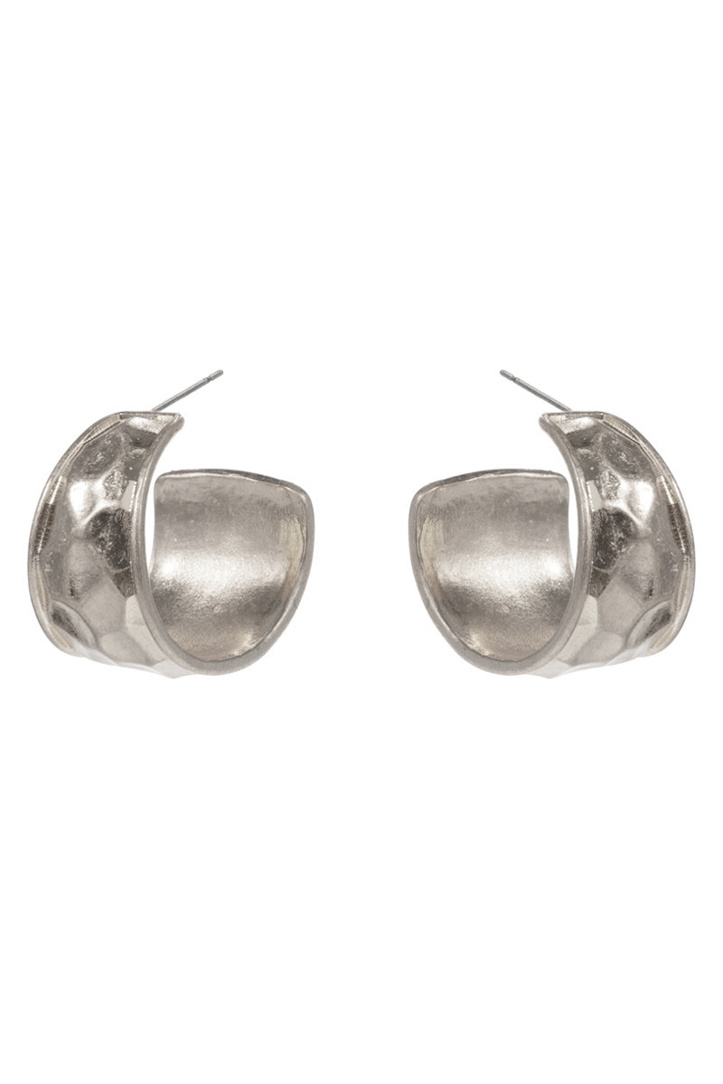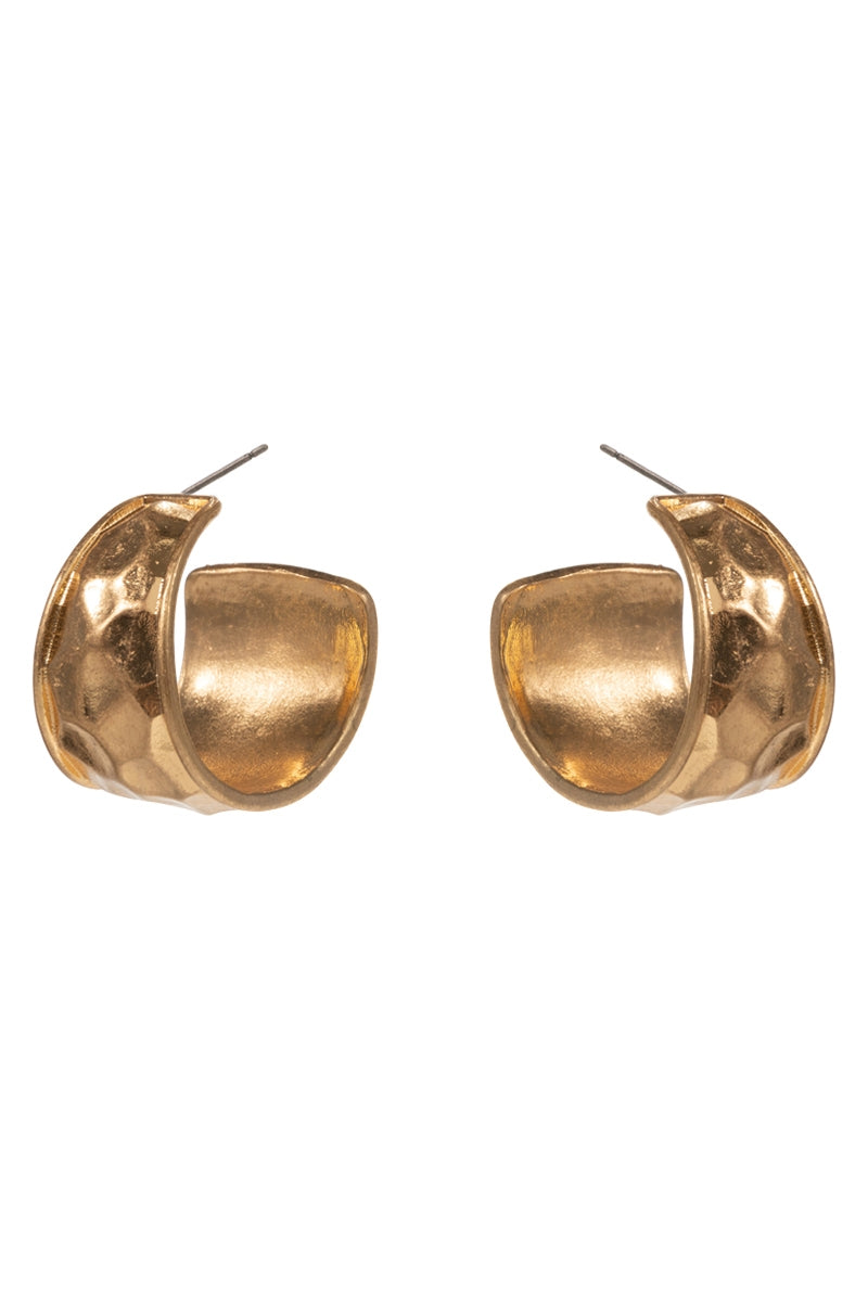Soft Hammered Vintage Metal Post Pin Hoop Earrings