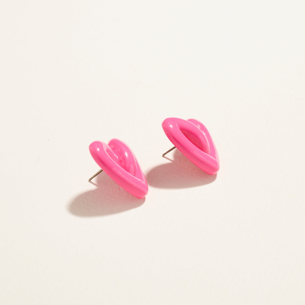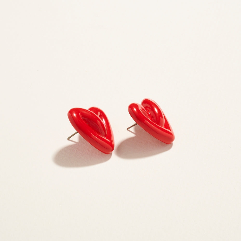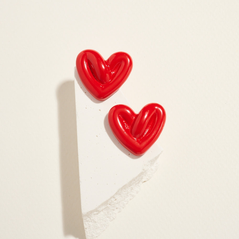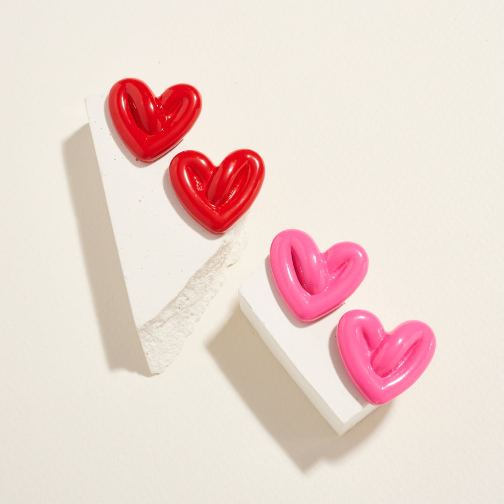 Brighten your look with these bold, heart-shaped studs in a smooth solid finish. Their playful puffed design makes them perfect for adding a pop of color to any outfit.