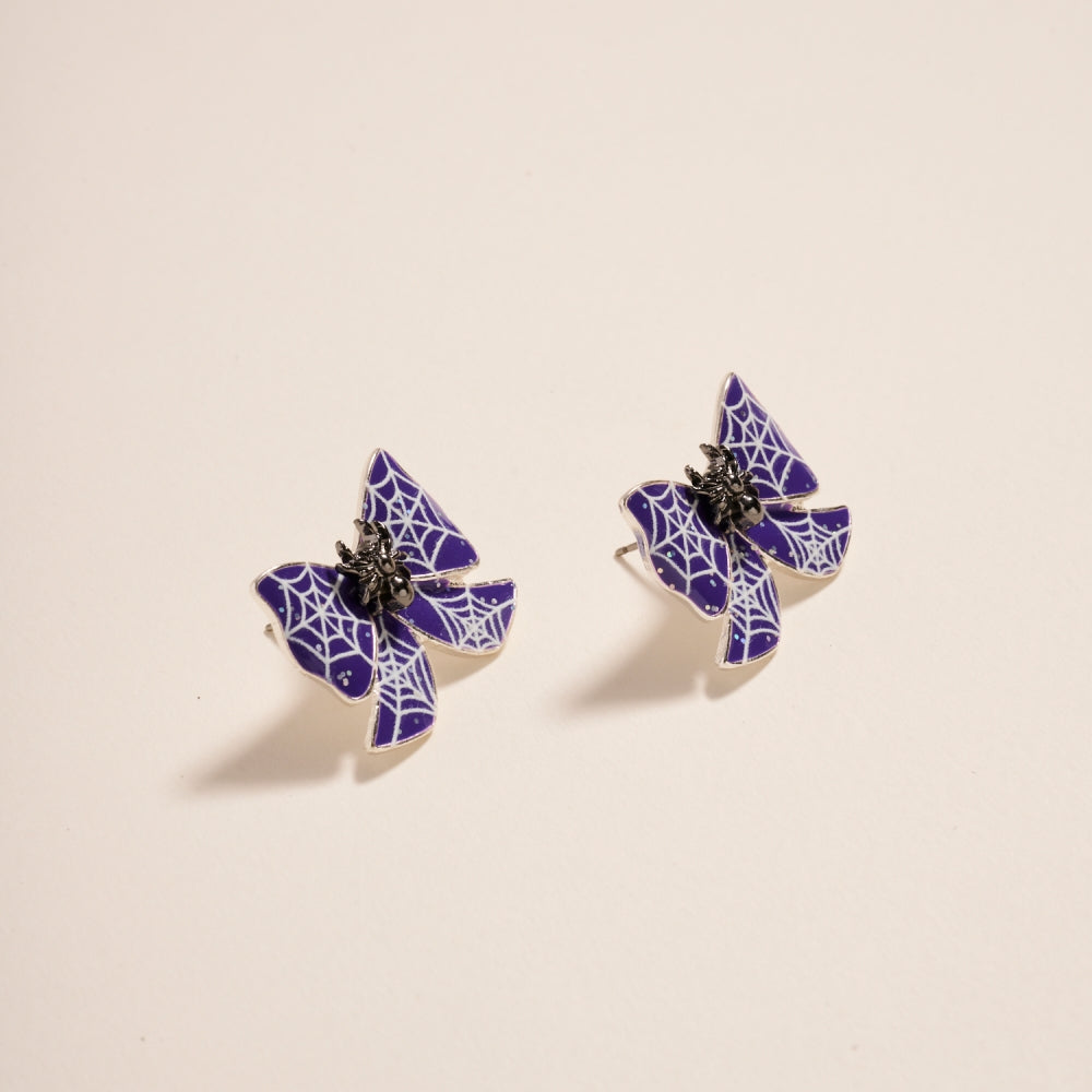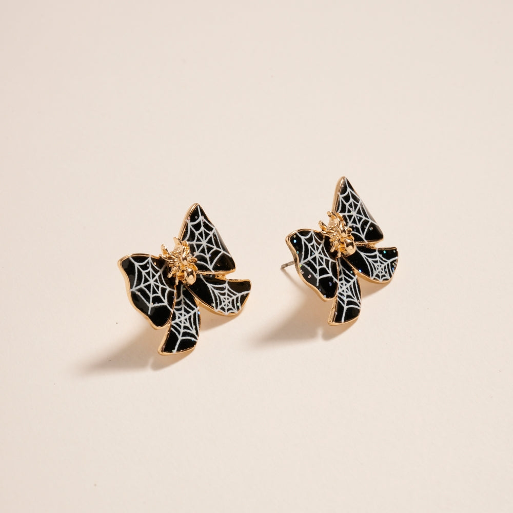 Add a spooky-chic touch to your accessories with these spider post earrings. Designed with webbing and a bow, they offer a fun twist on Halloween style.