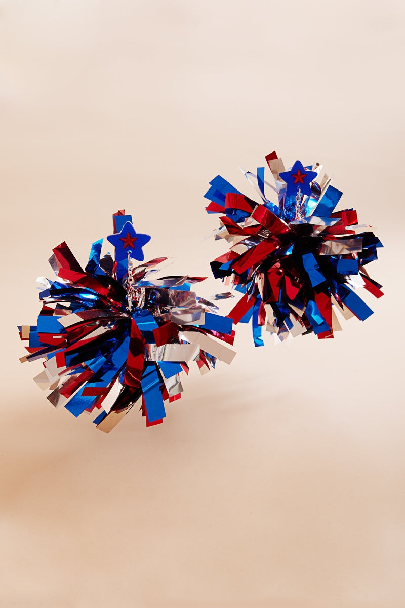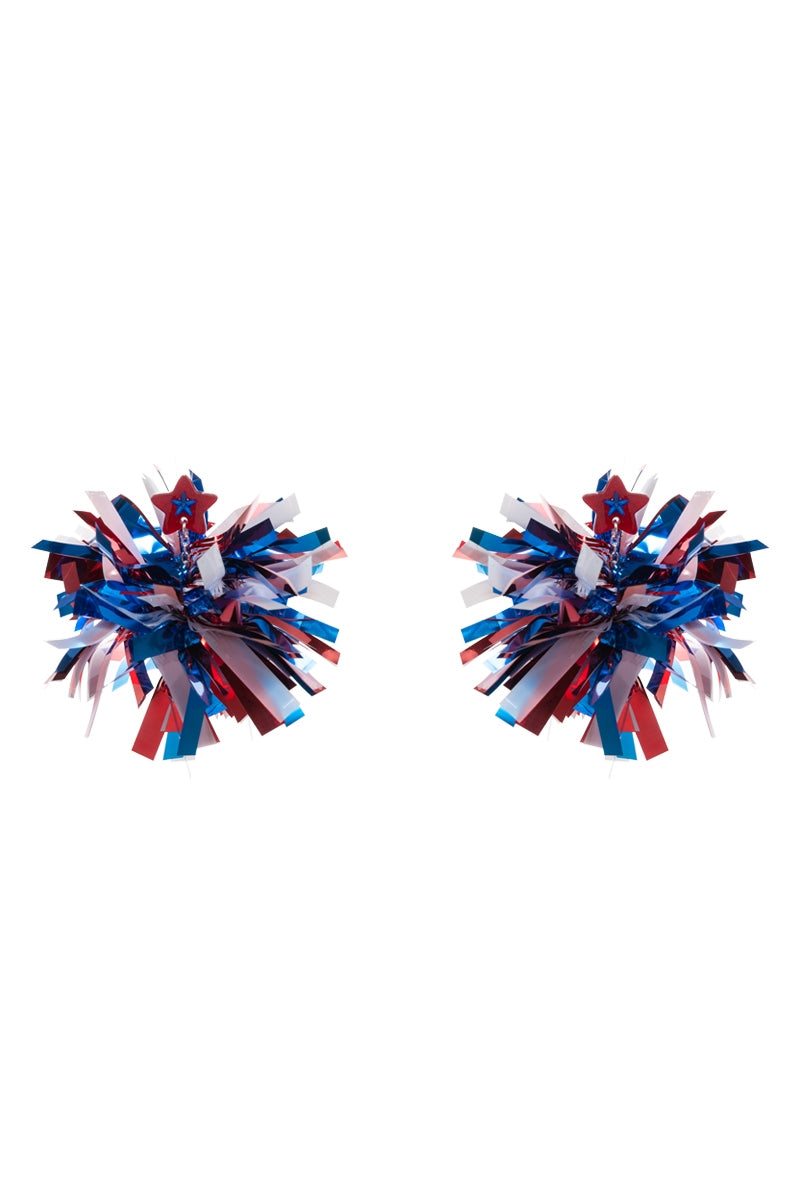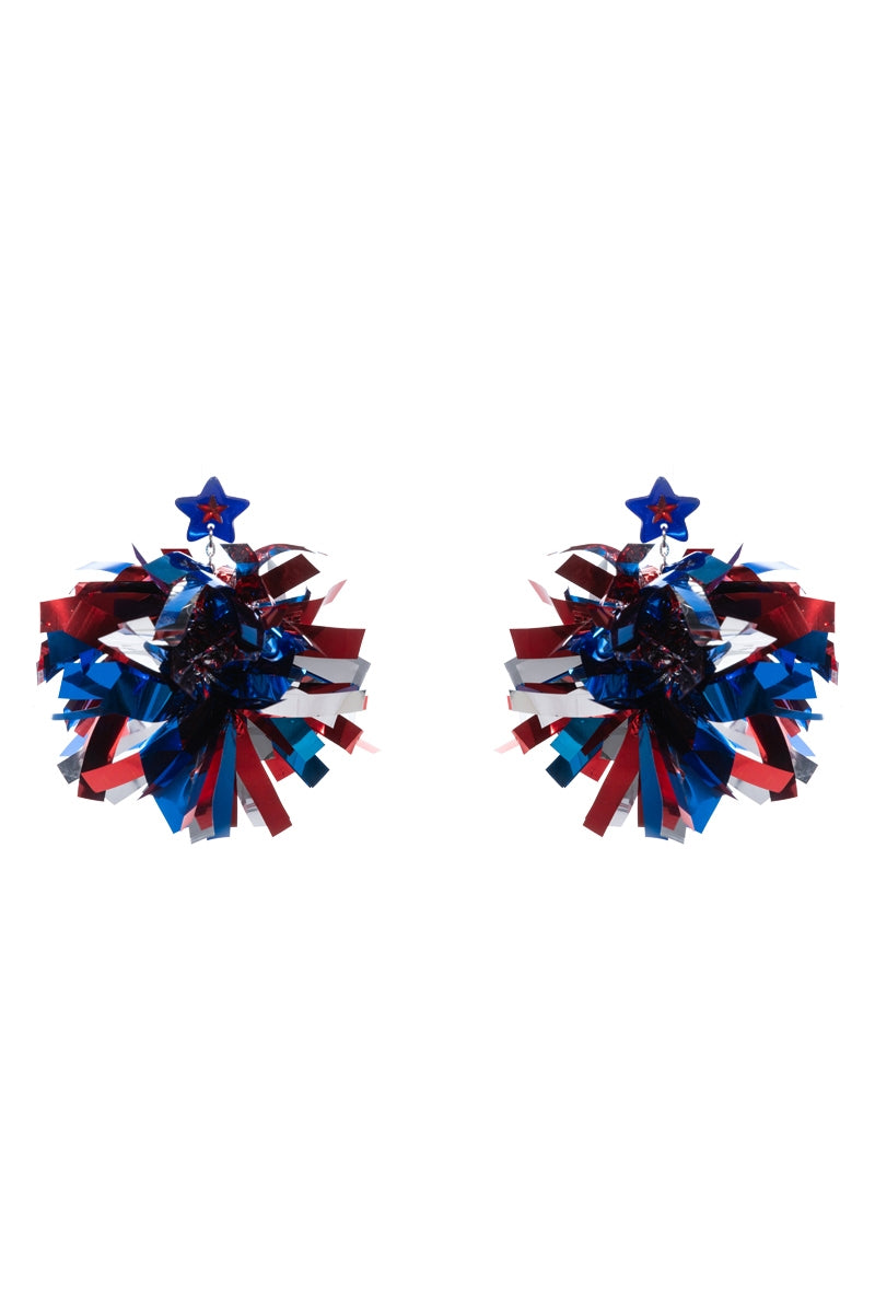 Introducing our 3-inch star-shaped acetate earrings with hypoallergenic titanium posts. These earrings feature an American flag color pompom, perfect for adding a touch of patriotic flair to any outfit. Crafted with care and expertise, these earrings are both stylish and gentle on sensitive ears.
