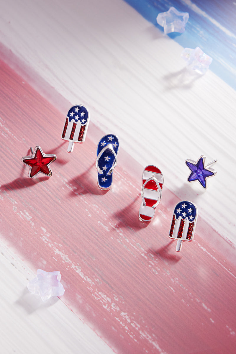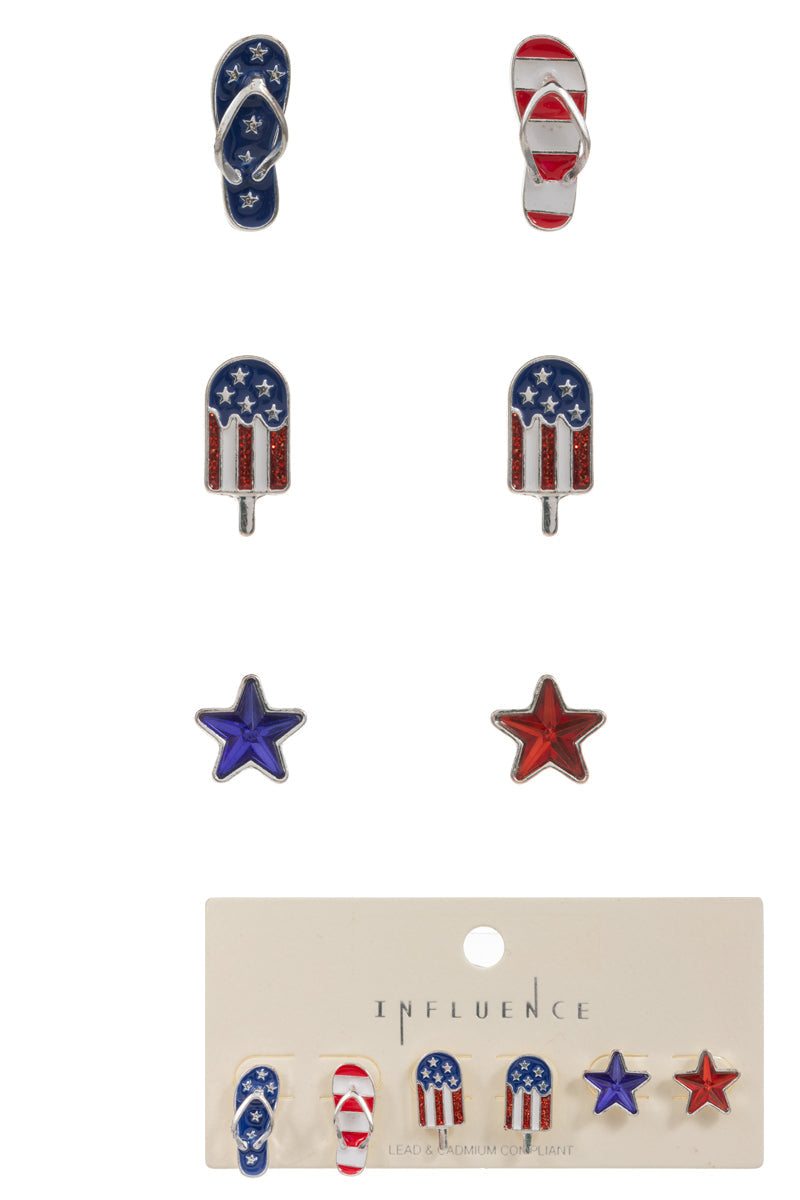 Star American Flag Enamel 3 Set Post Earrings