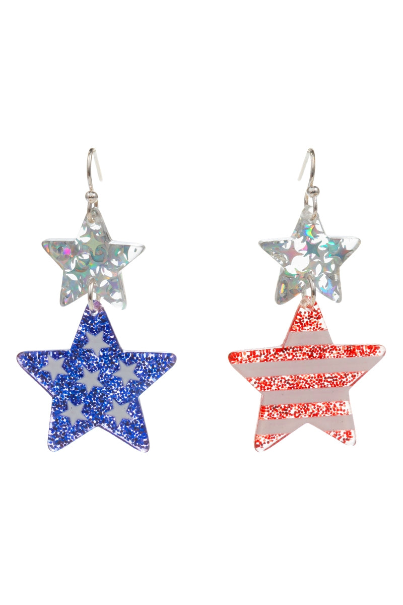 Star American Flag Print On Acetate Hook Earrings