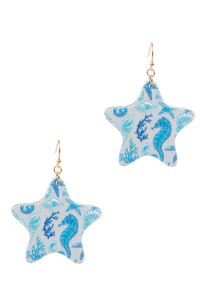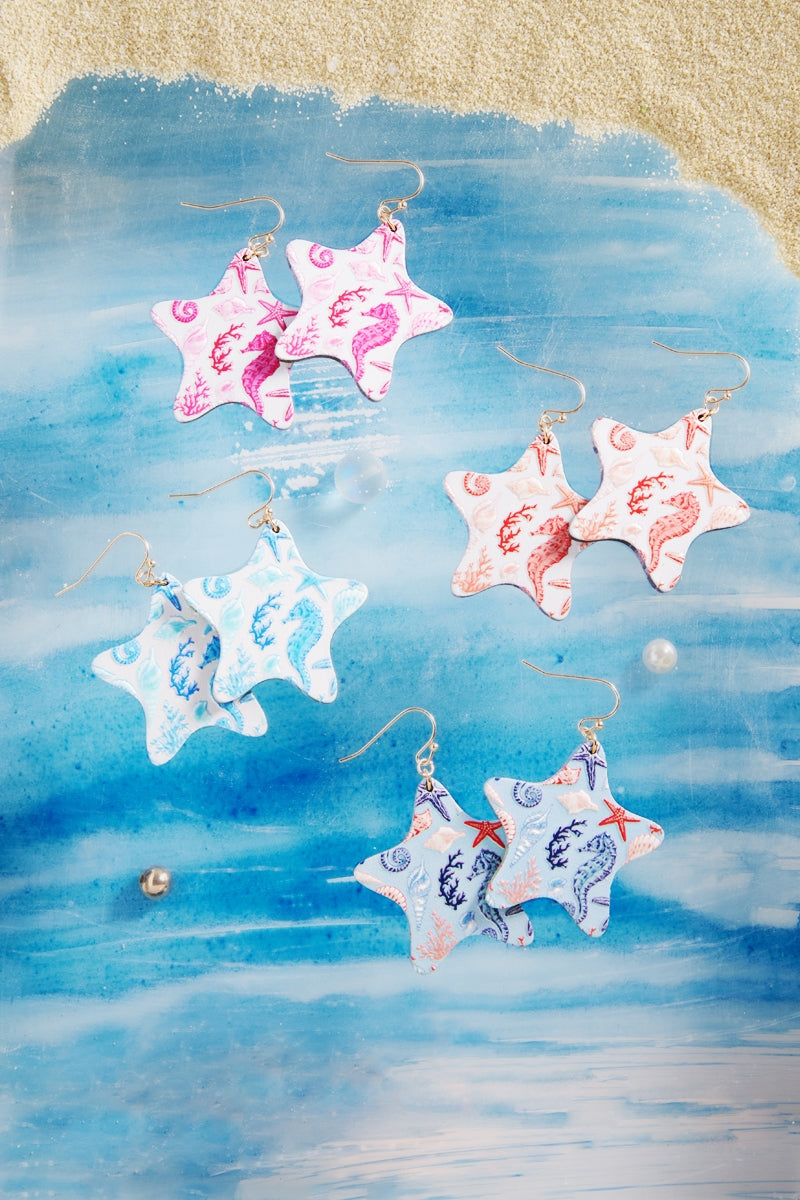 Discover the unique and stylish 1.5 inch starfish wood printed hook earrings. Made from high-quality materials, these earrings are lightweight and comfortable to wear.