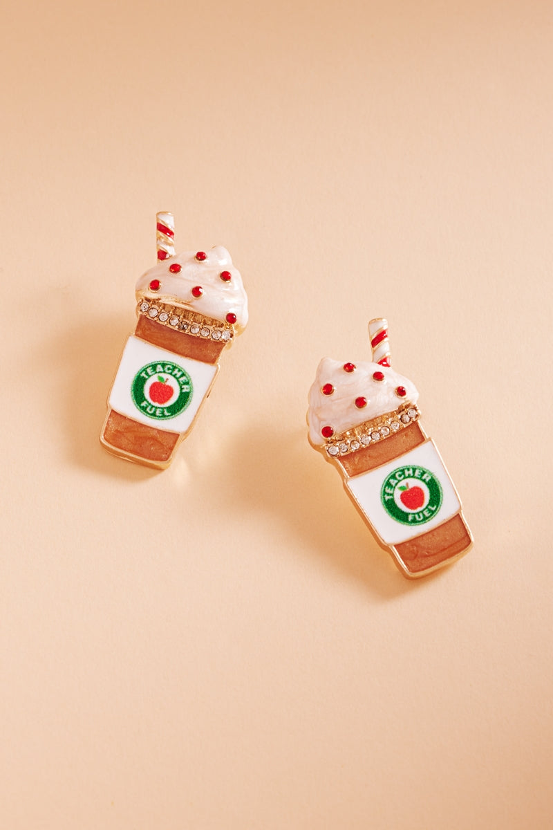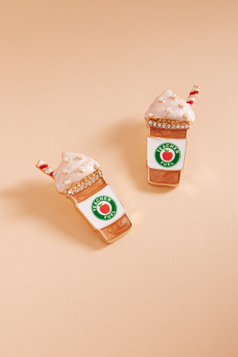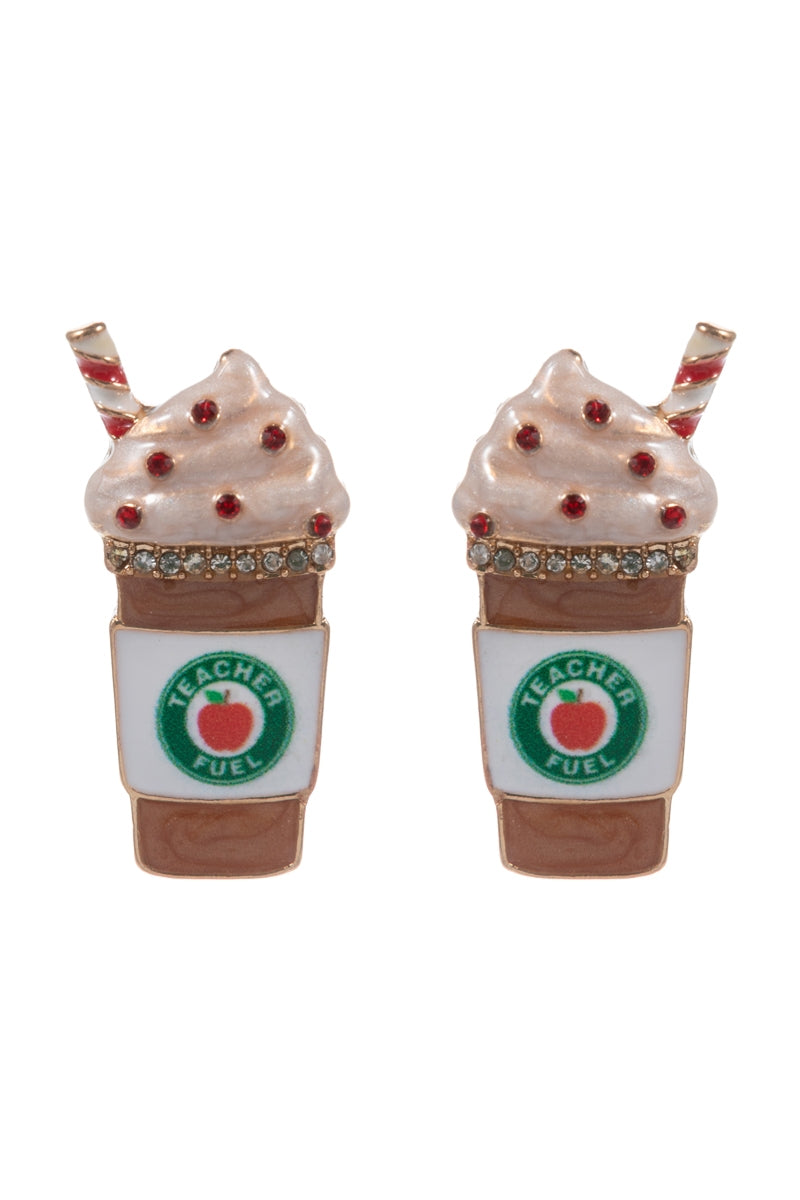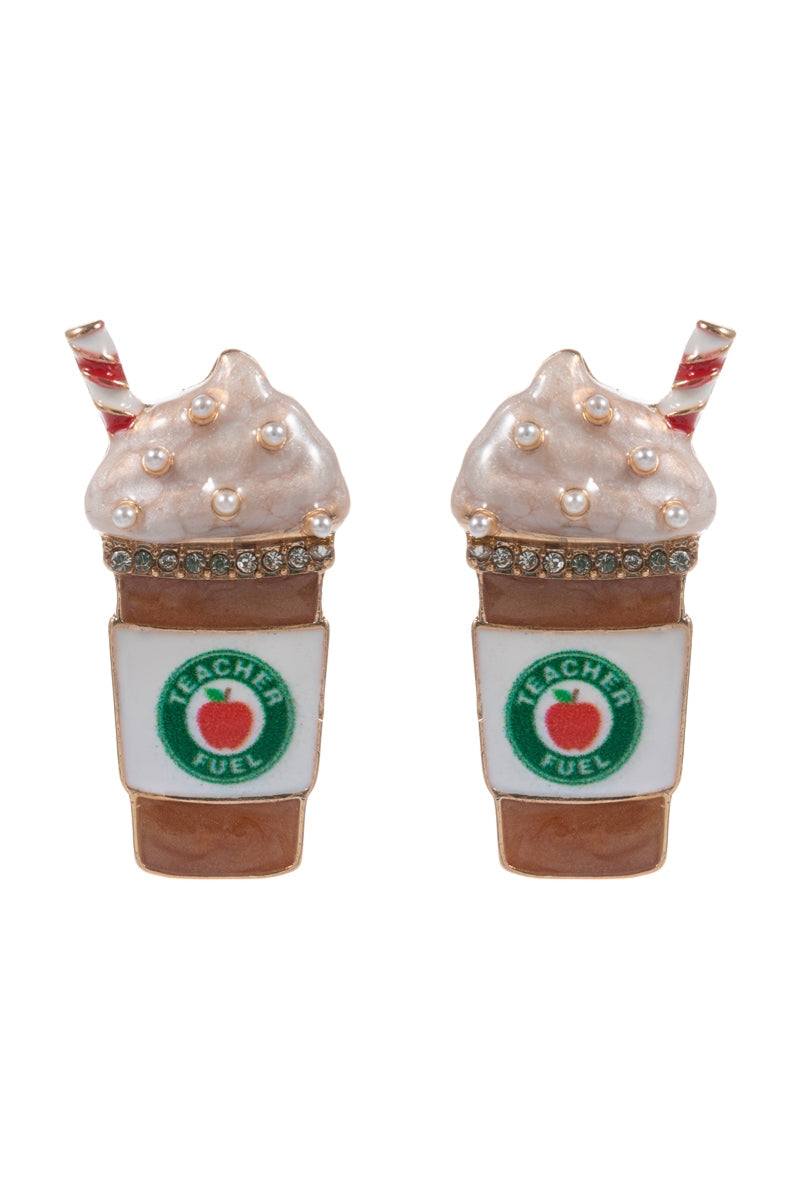Teachers Day Cafe Latte Teacher Fuel Post Earrings