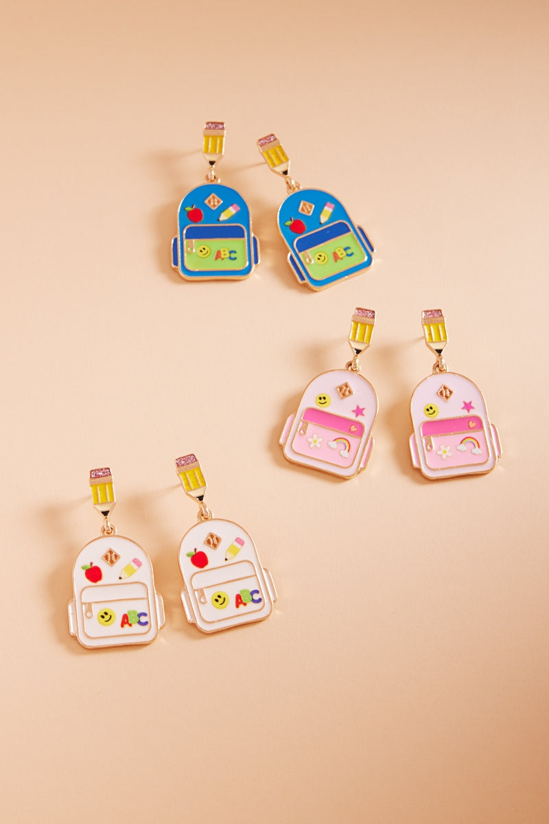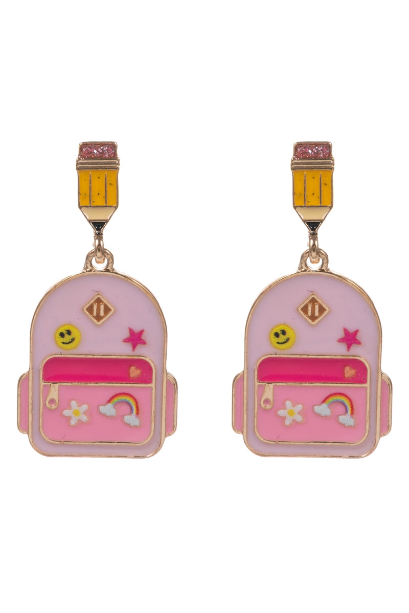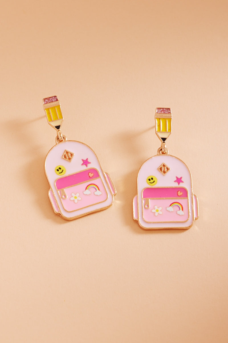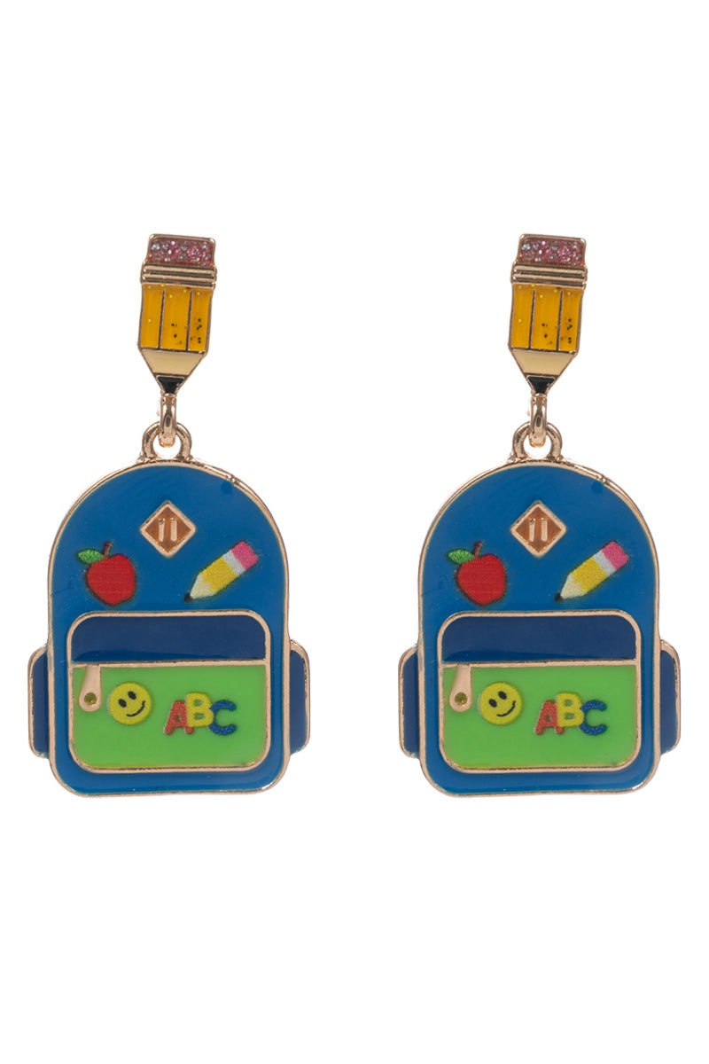 Teachers Day School Bag Enamel Pencil Post Earrings
