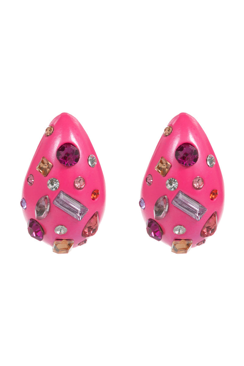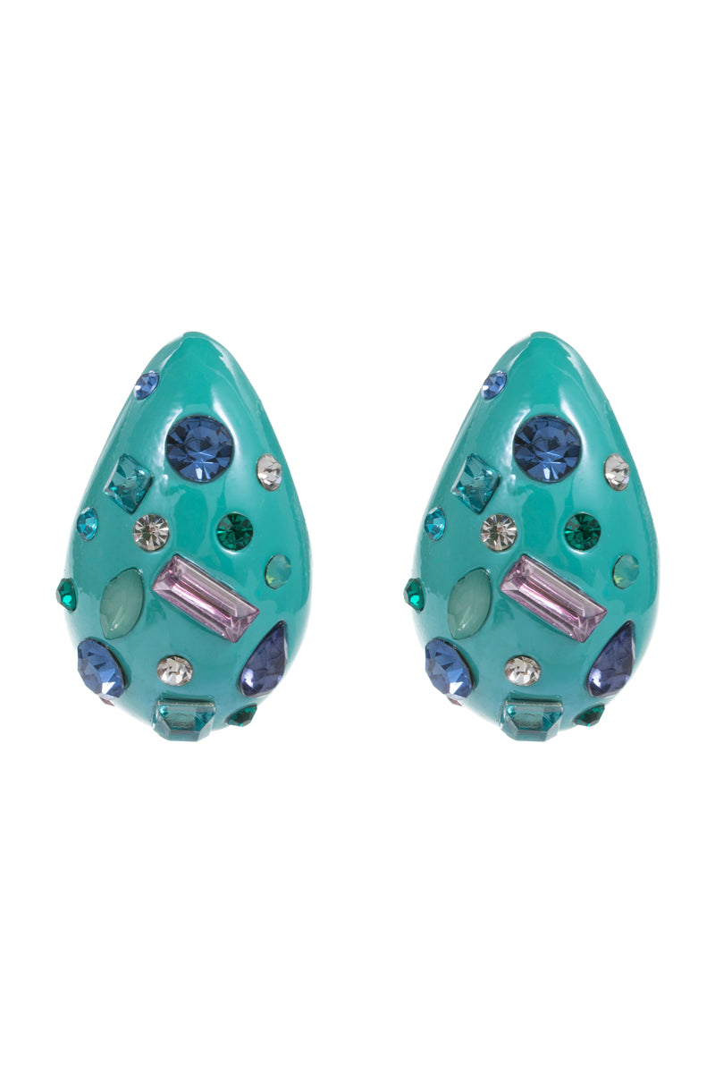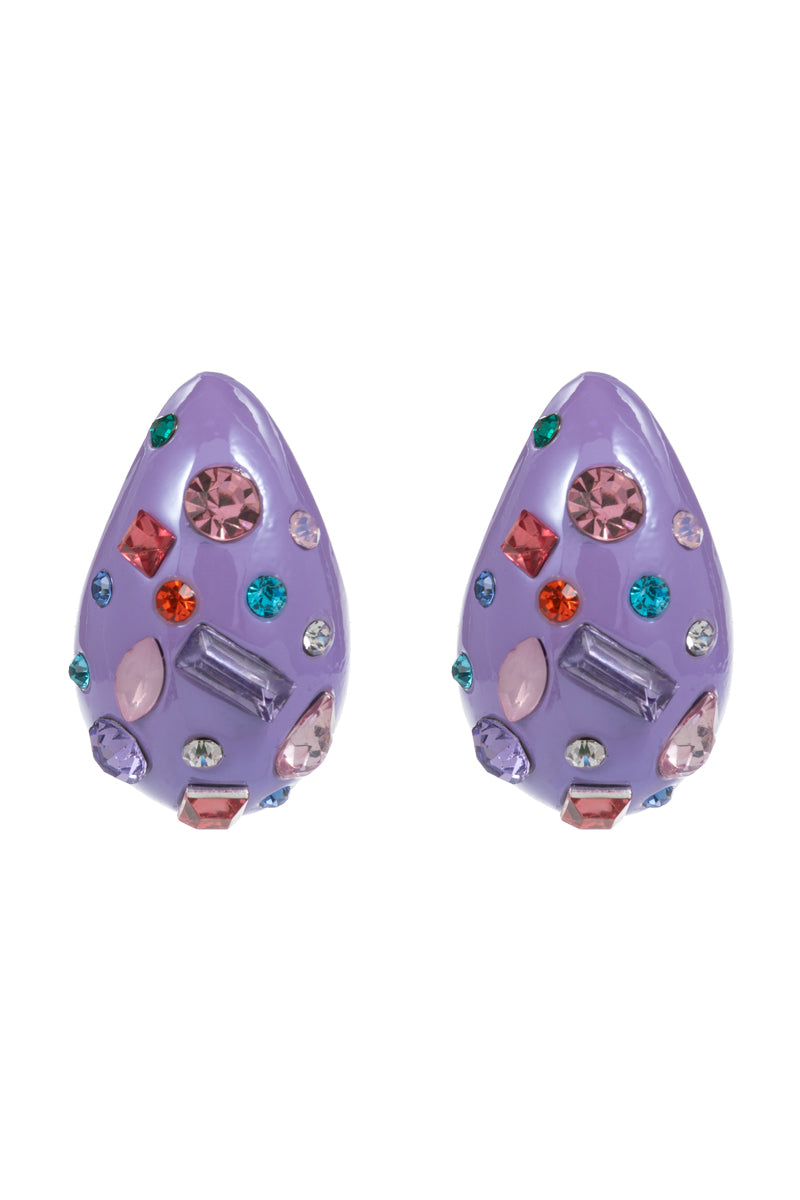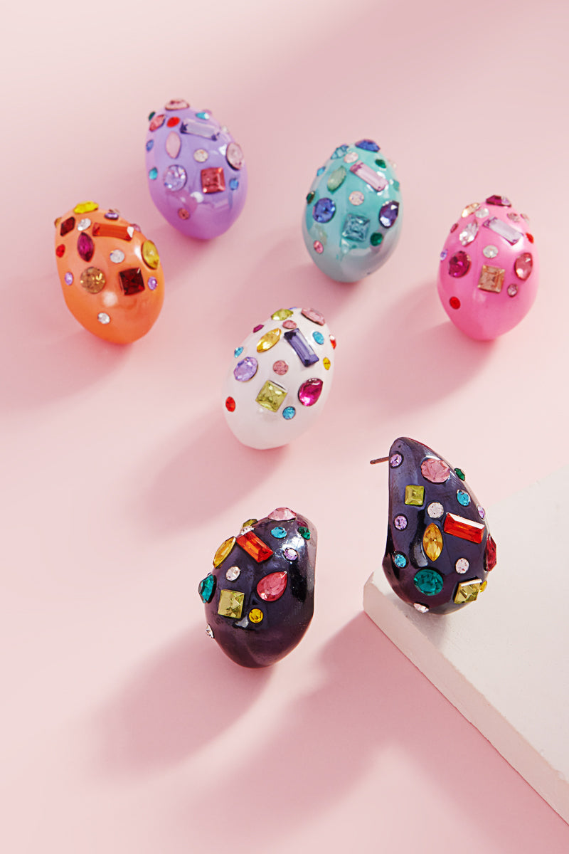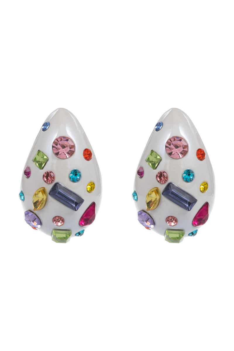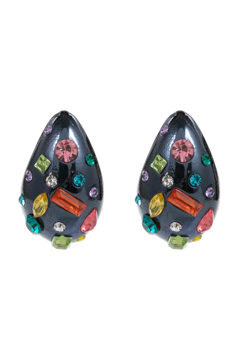 Enhance your style with our Teardrop Shaped Post Earrings. Crafted with a shiny color coating and sparkling stones, these earrings are sure to catch attention. Measuring 1.25 inches, they are lightweight and comfortable for all-day wear.
