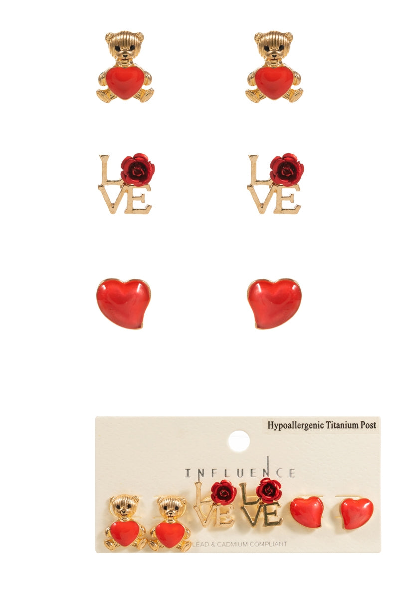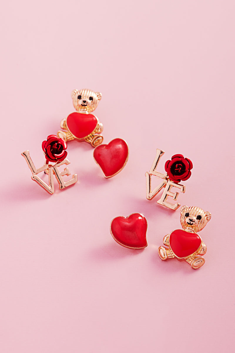 Teddy Bear Valentines Day Icons 3Set Post Earrings