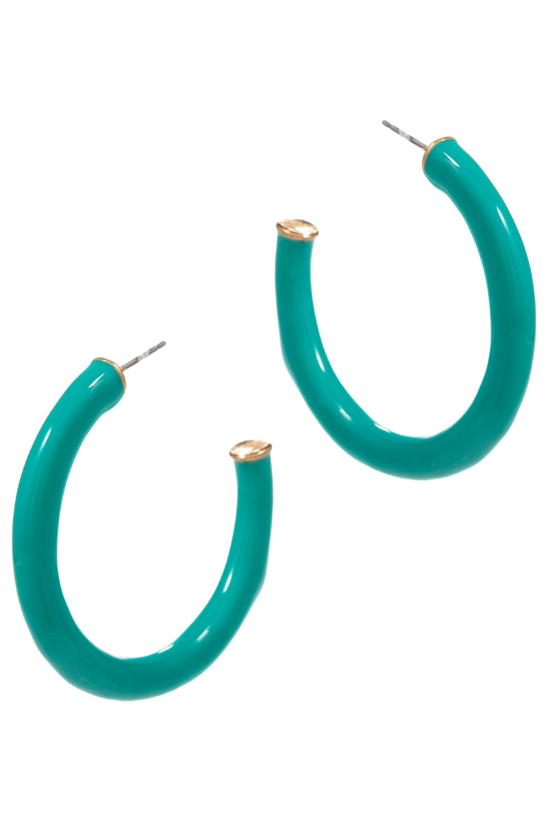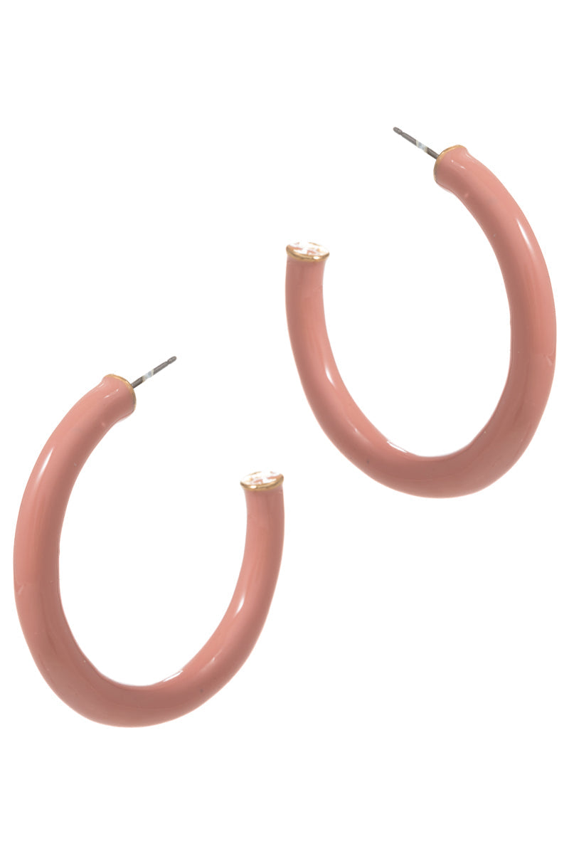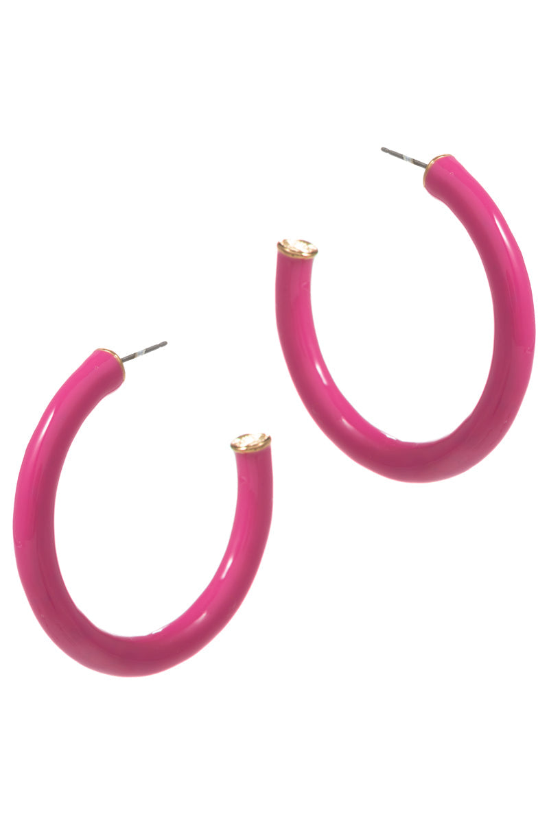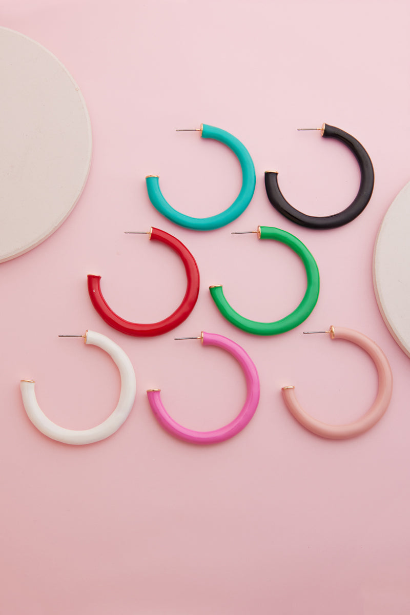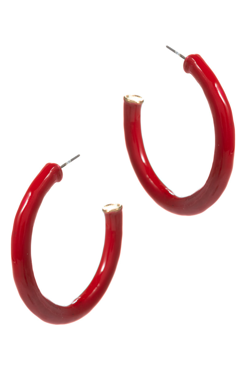Thin Ring Shaped Color Enamel Metal Hoop Earrings