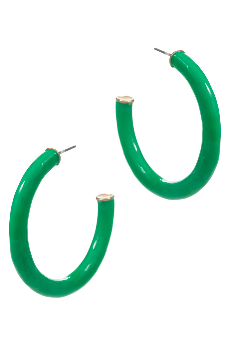 Expertly crafted with a 1.75-inch diameter, these color enamel metal hoop earrings are a bold and stylish addition to any outfit. With their vibrant colors and durable construction, they are the perfect statement piece for any fashion-forward individual.