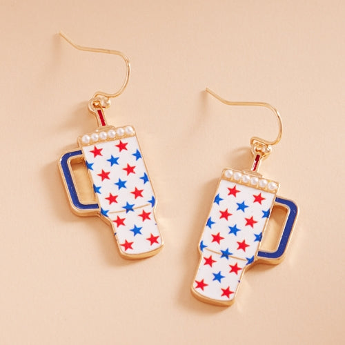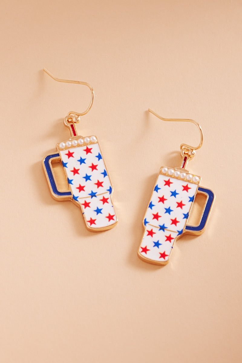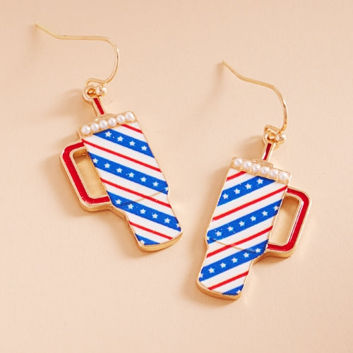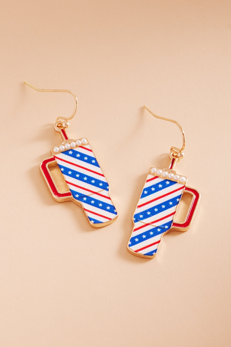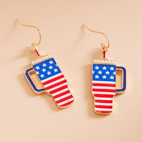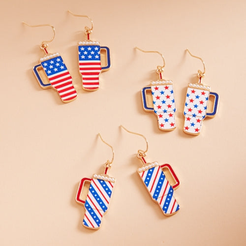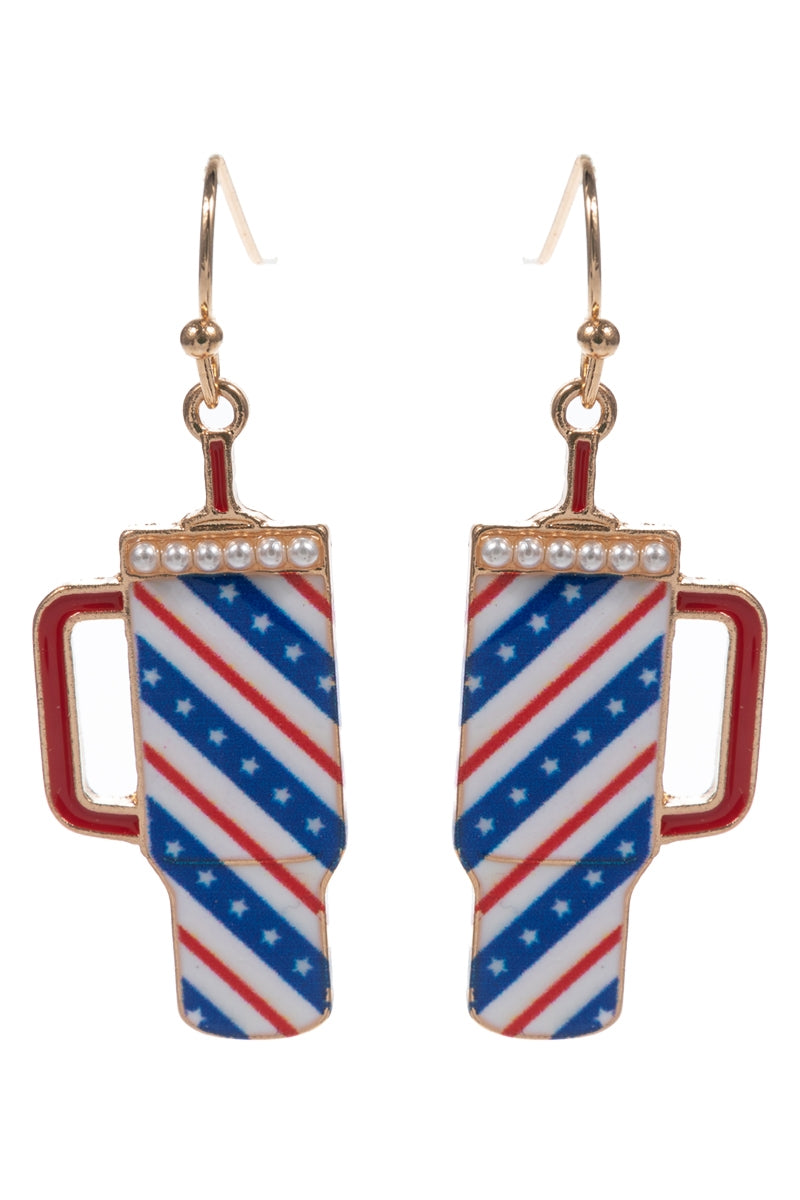 Tumbler Enamel American Flag Pattern Hook Earrings