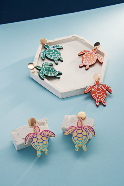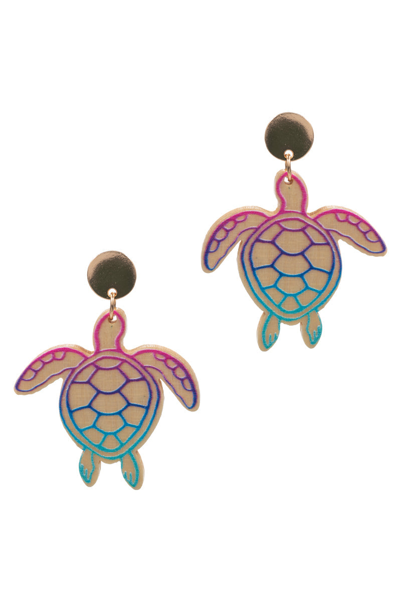 These 2-inch turtle earrings feature a unique wood print design, adding an earthy touch to any outfit. Crafted with high-quality materials, these earrings are lightweight and comfortable to wear.