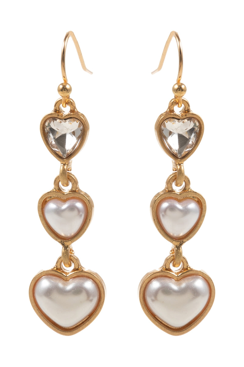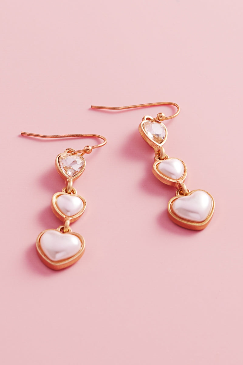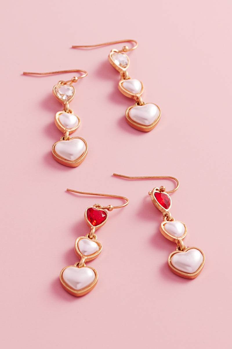 Valentine Heart Pearl Cabochon 3Drop Hook Earrings