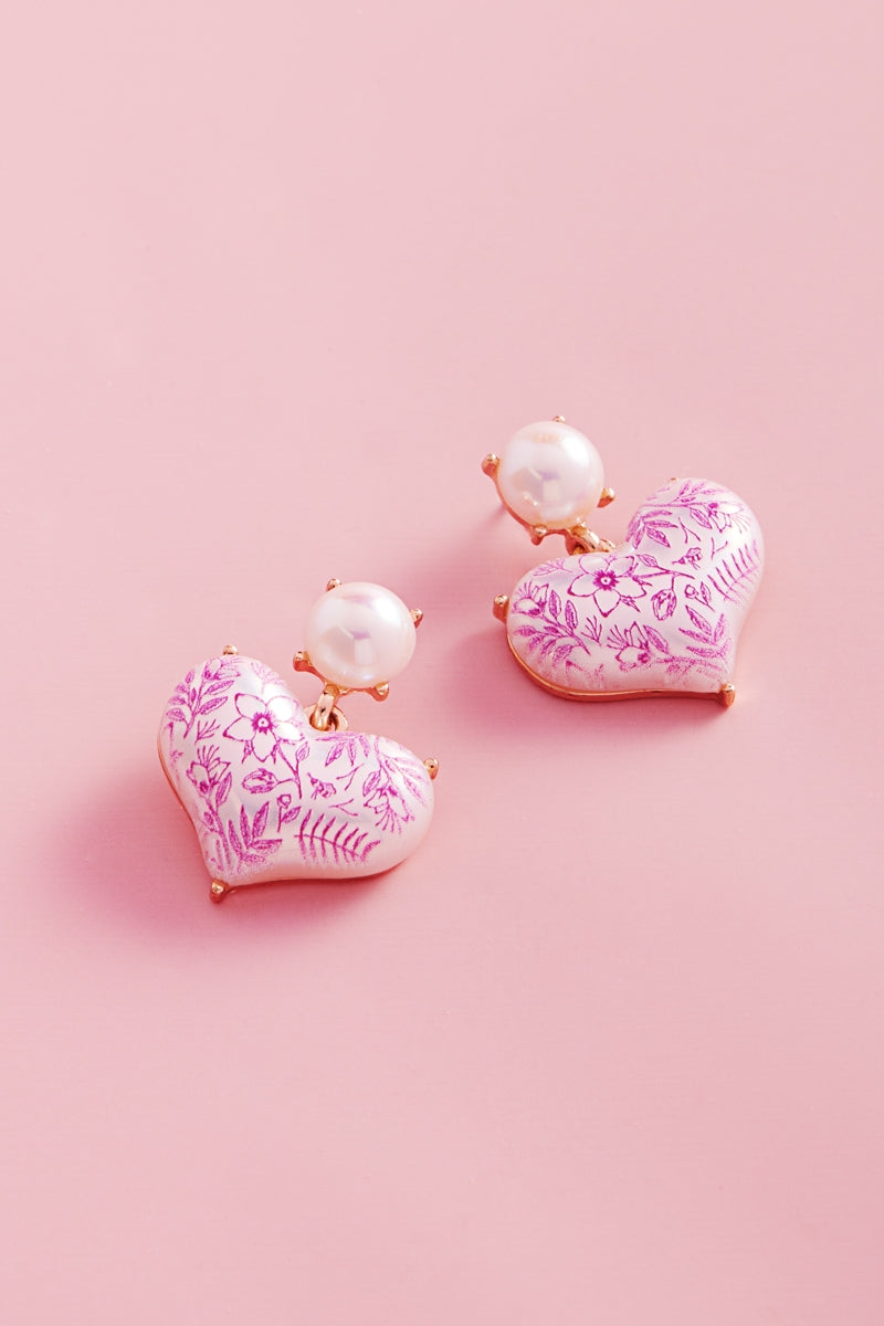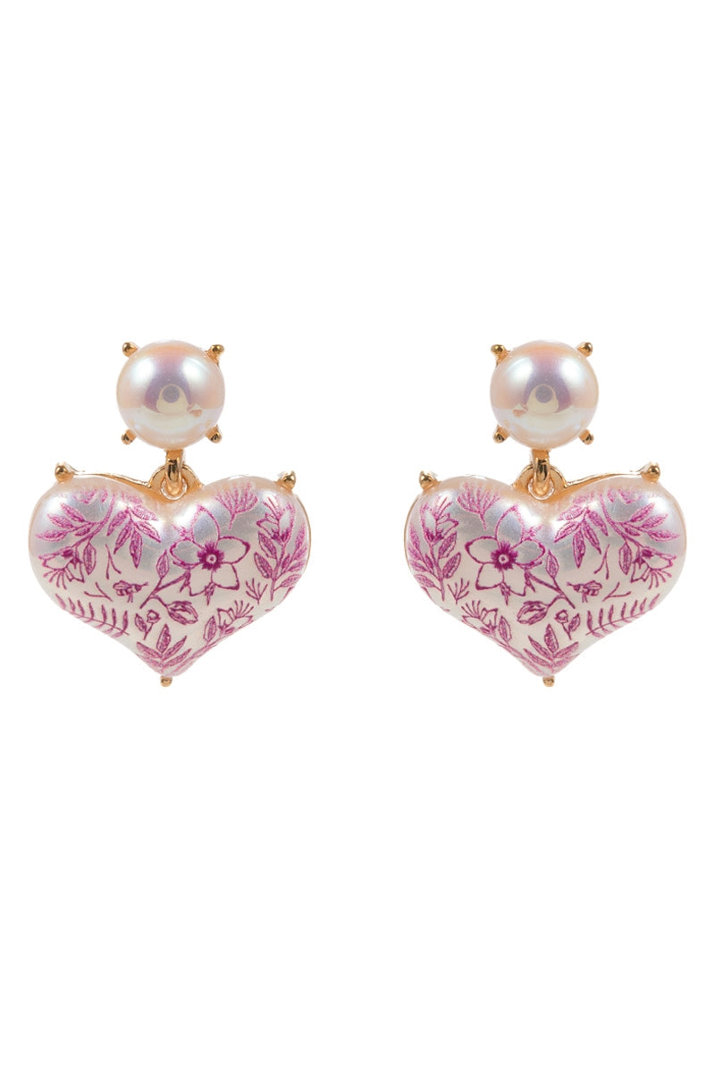 Valentine Heart Pearl Vintage Flower Post Earrings