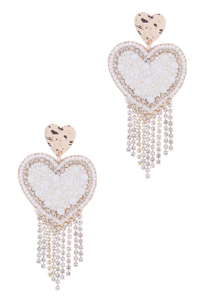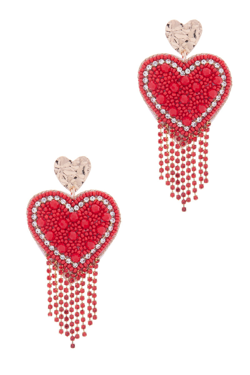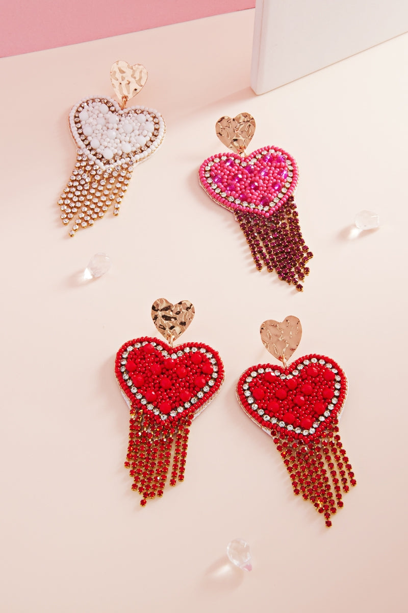 Valentine Heart Rhine Stone Tassel Post Earrings
