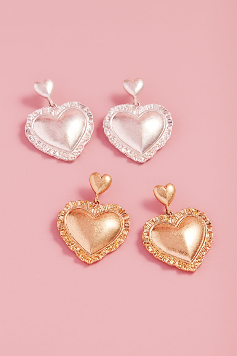 Valentine Heart Vinatge Framed Metal Post Earrings