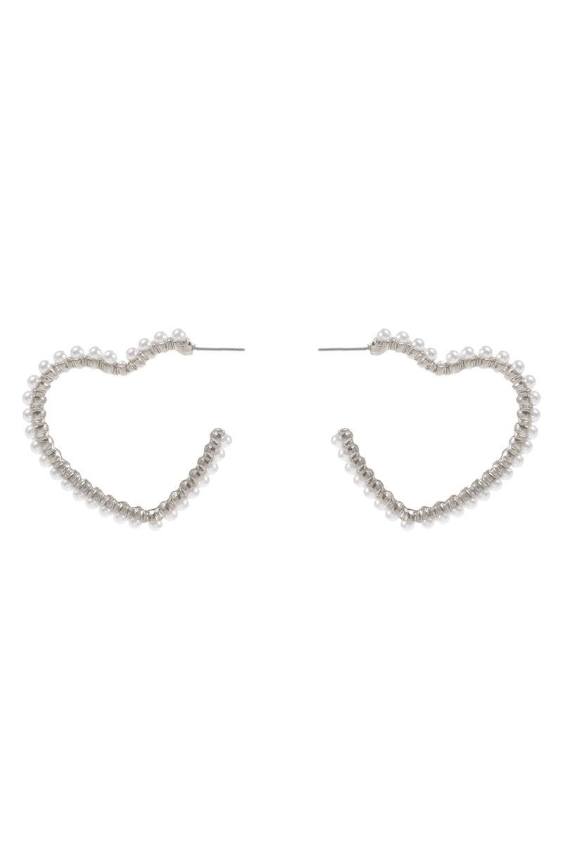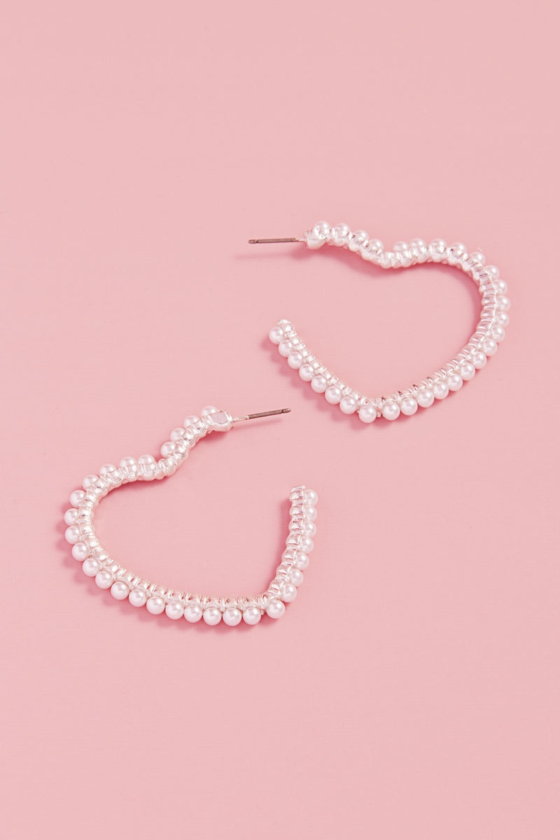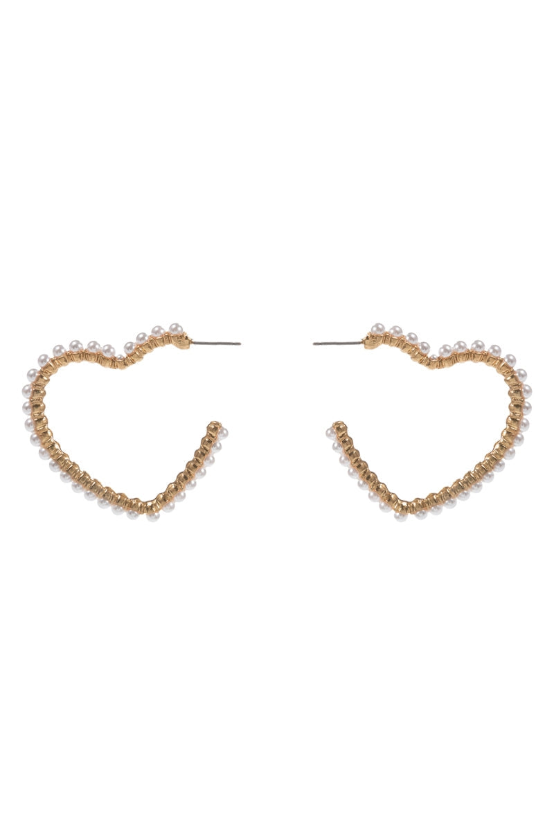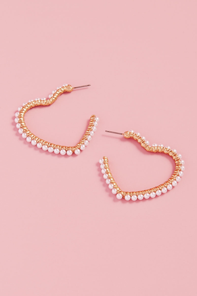 Valentine Heart Vinatge Metal Pearl Hoop Earrings