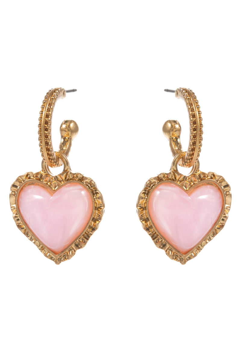 Expertly crafted with a vintage metal frame and faux stone accents, these heart-shaped earrings are both elegant and durable. The titanium post ensures a secure fit, making them perfect for everyday wear. Add a touch of sophistication to any outfit with these statement hoop earrings.